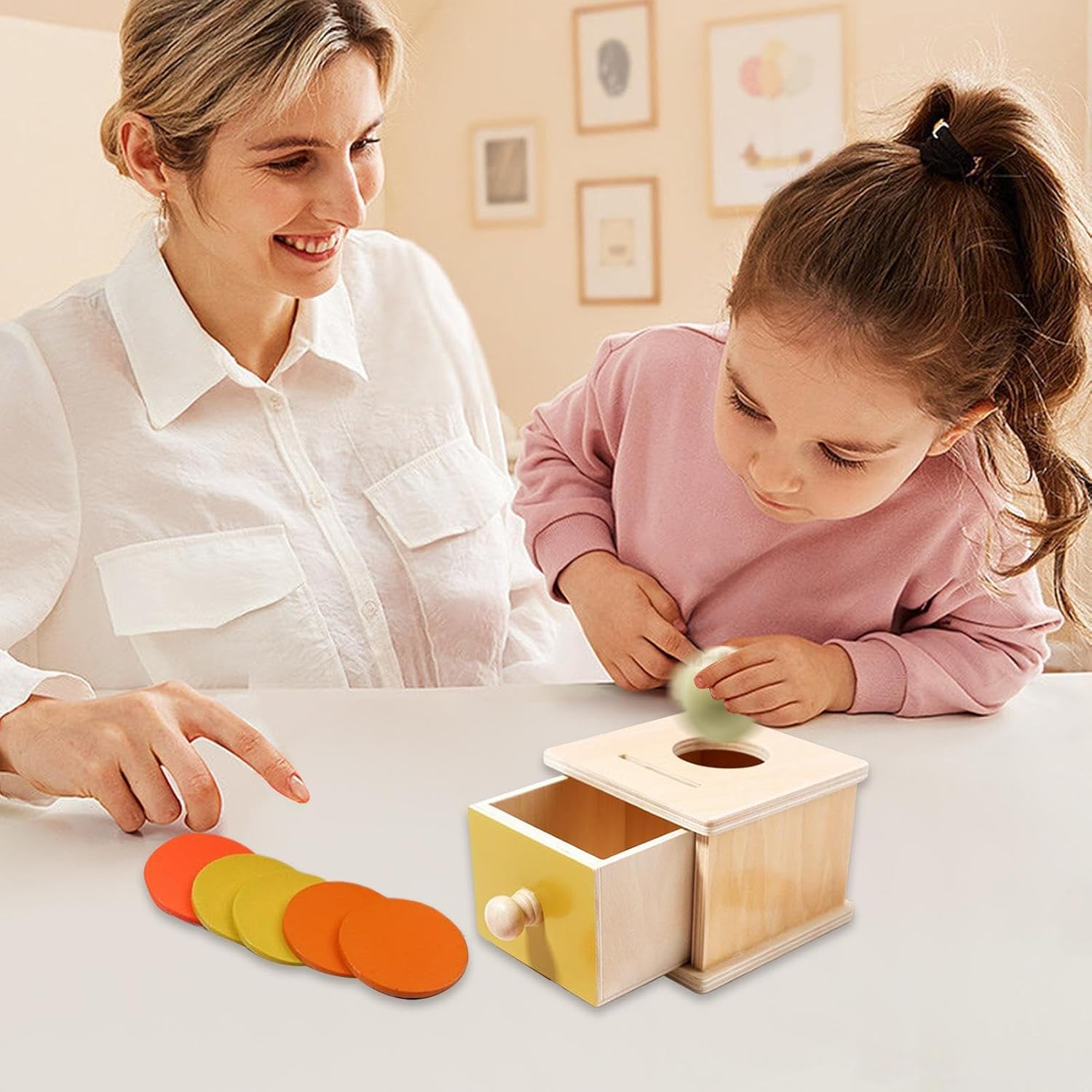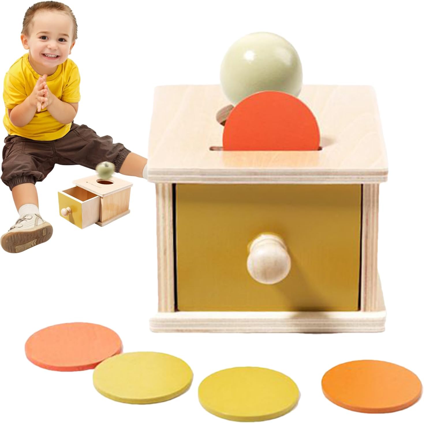 Supportare lo sviluppo del cervello: stimolare le capacità cognitive e promuovere la crescita sensoriale con attività interattive, aiuta i bambini con l'apprendimento e la crescita giocando e rafforzando le capacità motorie fine stesso Durabilità assicurata: questo giocattolo è costituito da legno eccellente con bordi fluidi e arrotondati e garantisce durata e sicurezza per ulteriori opzioni di gioco, per cui la creatività è attivata nei bambini Scopi di utilizzo multifunzionale: l'oggetto innovativo aumenta l'esperienza di giocattolo standard e passa perfettamente a un'elegante scatola di stoccaggio desktop per monete, gioielli e piccoli fronzoli e offre una varietà di opzioni di gioco per curiose piccole teste Il design semplice e intuitivo migliora le capacità cognitive dei bambini. Aprire e chiudere il cassetto è senza sforzo per i giovani teste Regalo : il giocattolo da ballo a oggetti per i bambini sono regali perfetti per i bambini che trasmettono e amore, ideali per compleanni, natalizi e celebrazioni di Pasqua