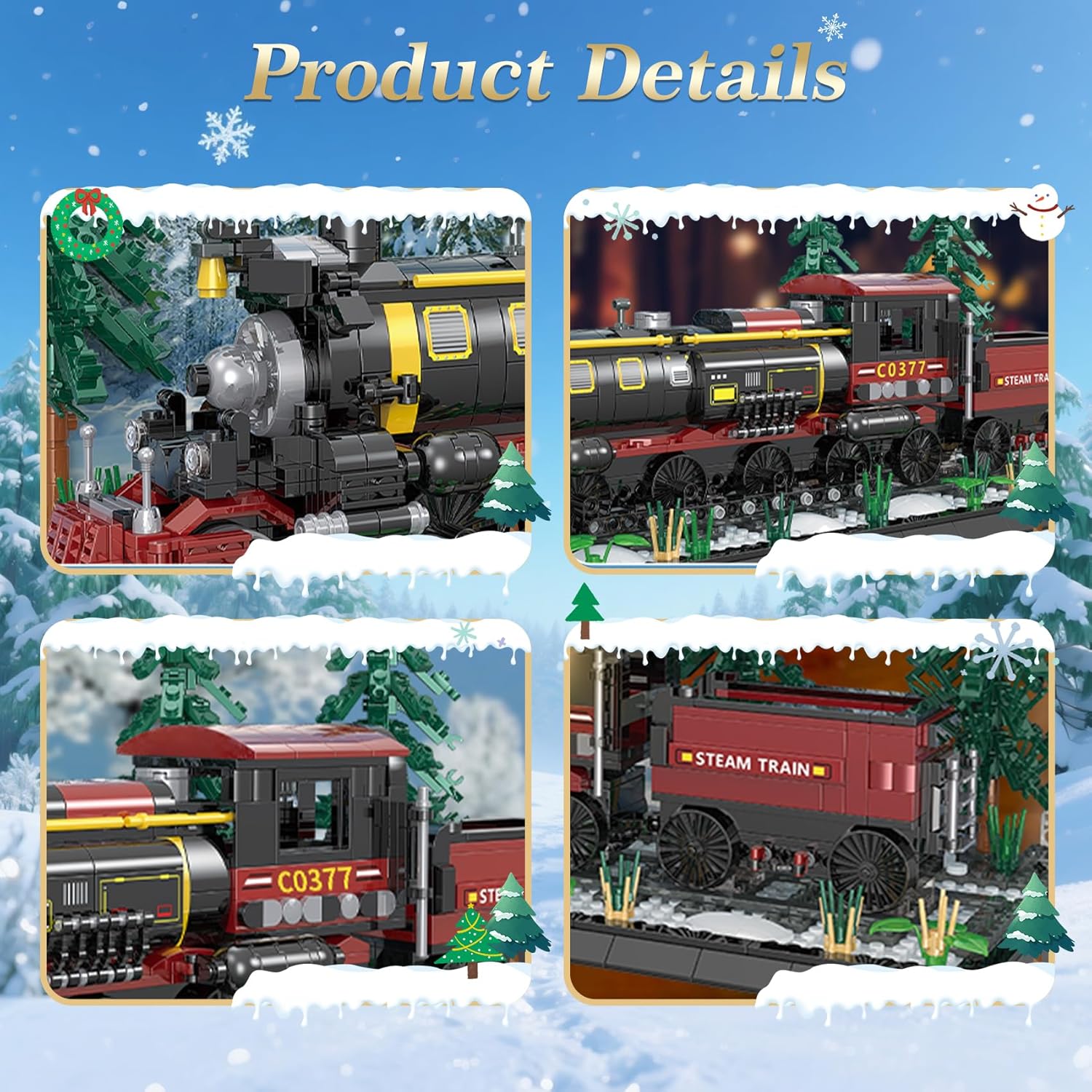 Steam World: questo elemento costitutivo riproduce l'aspetto di una locomotiva a vapore. Il corpo principale è nero e rosso con linee decorative gialle. Ingranaggi, tubi e altri dettagli creano una scena industriale in miniatura in stile steampunk. Vieni a costruire il tuo treno a vapore e inizia un viaggio nel tempo e nello spazio. Stile industriale: questo blocco da costruzione del treno a vapore è abbinato a un camino argentato e a una carrozza rossa, conferendogli un aspetto industriale completo. La pista è pavimentata con neve, erba e alberi verdi su entrambi i lati, ripristinando una scena industriale in stile steampunk. I blocchi di neve e l'erba possono essere smontati e riorganizzati in qualsiasi momento per cambiare la scena del treno. Tempo in famiglia: costruire è un'attività meravigliosa con la famiglia o gli amici. Può promuovere la coordinazione occhio-mano, il pensiero divergente, le capacità di risoluzione dei problemi e le capacità di comunicazione. Puoi anche comprendere in modo intuitivo la struttura del treno durante il processo di costruzione. OTTIMA OPZIONE REGALO: questo set di mattoncini è adatto a collezionisti e bambini. Può anche essere un pezzo decorativo per librerie, stanze, uffici e case. È perfetto per compleanni, feste di Capodanno e altre celebrazioni. Supporto per parti mancanti: se trovi parti mancanti nel tuo set di costruzione, contattaci per mostrare quali parti mancano e te le invieremo!