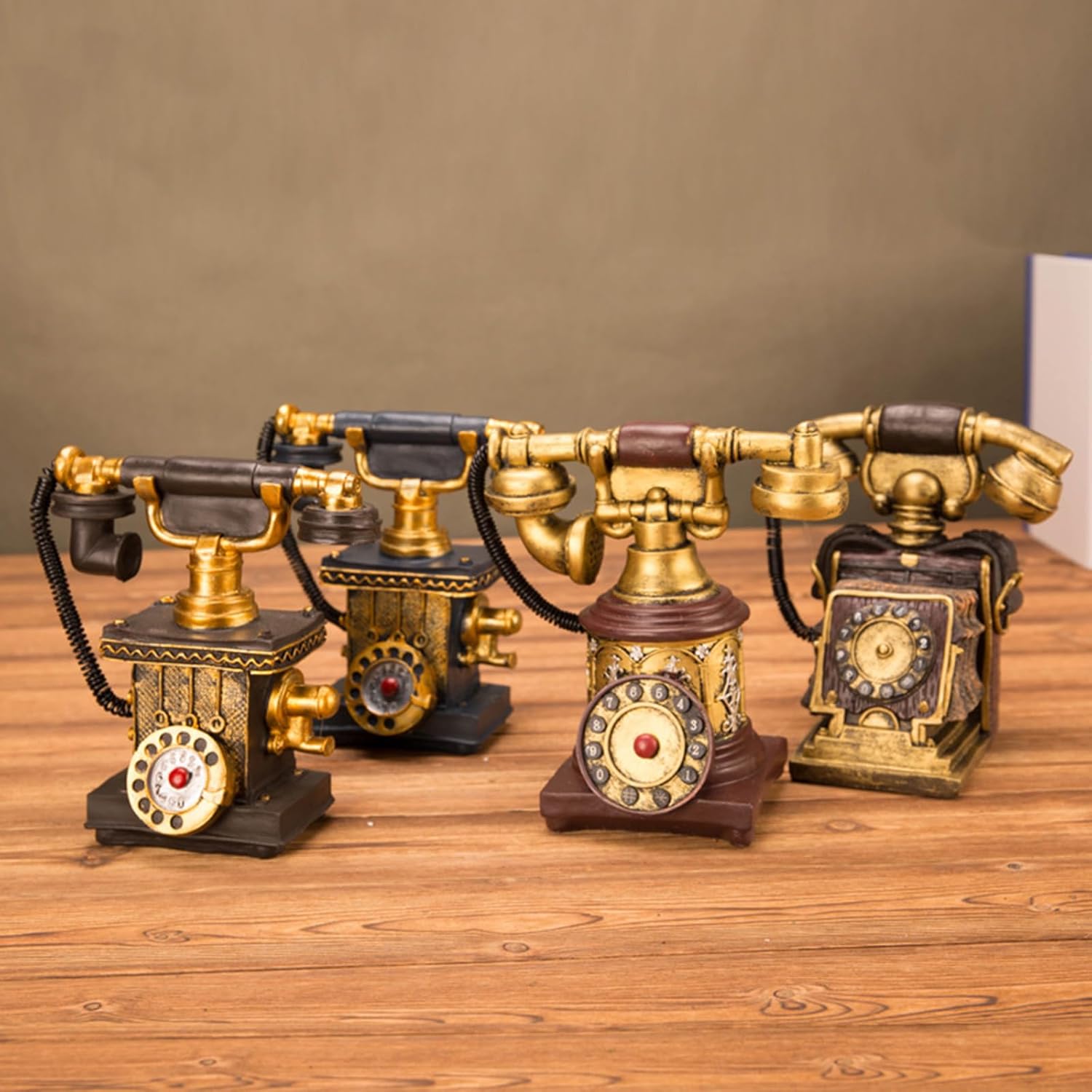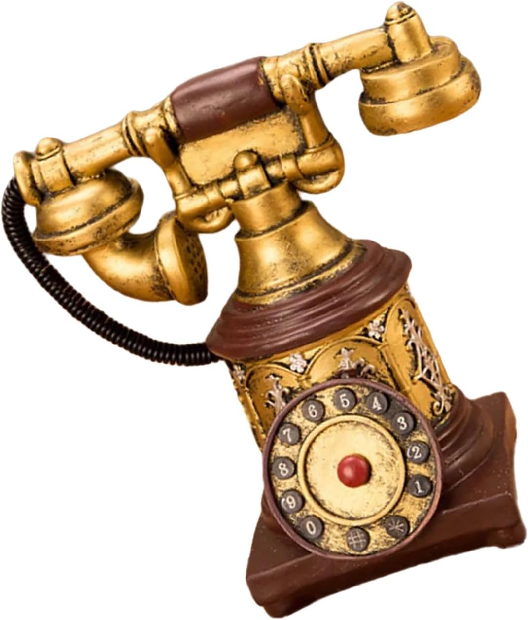 Per collezionisti vintage, proprietari e periodo di produzione cinematografica per drammi storici o sparatorie commerciali esattamente Inquietante con bronzo stagionato, quadrante inciso a mano e ricevitore rimovibile, questo desktop replica mirroring Authentics 1920 funzioni del telefono in miniatura Ambienti elevati in caffetterie, negozio di antiquariato o armadi soggiorno mentre servono come fondali fotografia per le campagne Decorazione per telefono vintage europea Rotary combinata con la struttura in metallo di resine per gli appassionati di interni ispirati Questo pezzo di conversazione multiuso che combina stili di decorazione per industria e vittoriani attraverso il suo corpo finito e il suo lavoro di scorrimento artistico