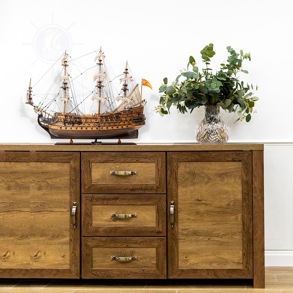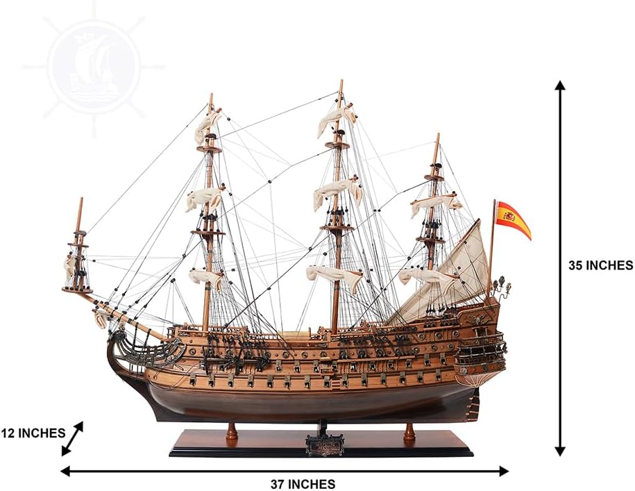 Dimensioni: il modello di nave misura orgogliosamente 37,0 L x 12,0 L x 35,0 A pollici MATERIALE: legno di alta qualità come: cedro rosso occidentale, palissandro e mogano + solo metallo (senza parti in plastica) COMPETENZA: applicati i migliori metodi tradizionali di costruzione navale, centinaia di ore necessarie per rifinire ogni modello dai nostri maestri artigiani UNICITÀ: ogni nave è una “Edizione Esclusiva” in cui il modello ha un numero di serie unico inciso sullo scafo La raccorderia e gli ornamenti in cromo e ottone costituiscono l'eccellenza dei nostri modelli.