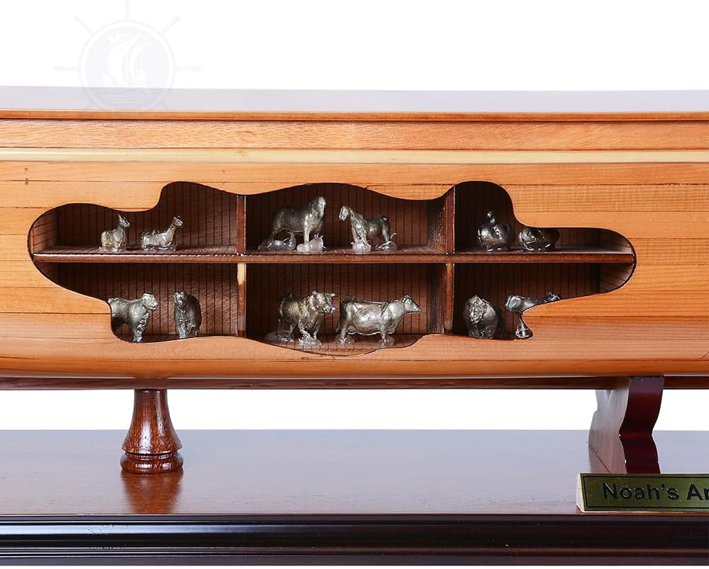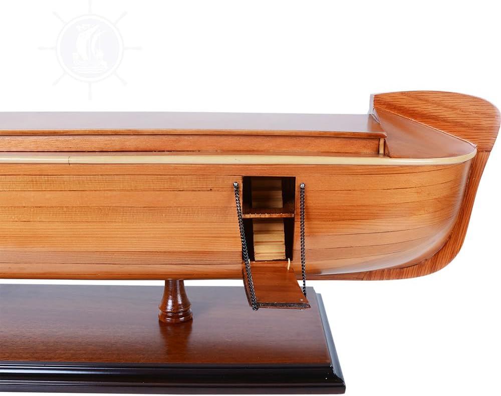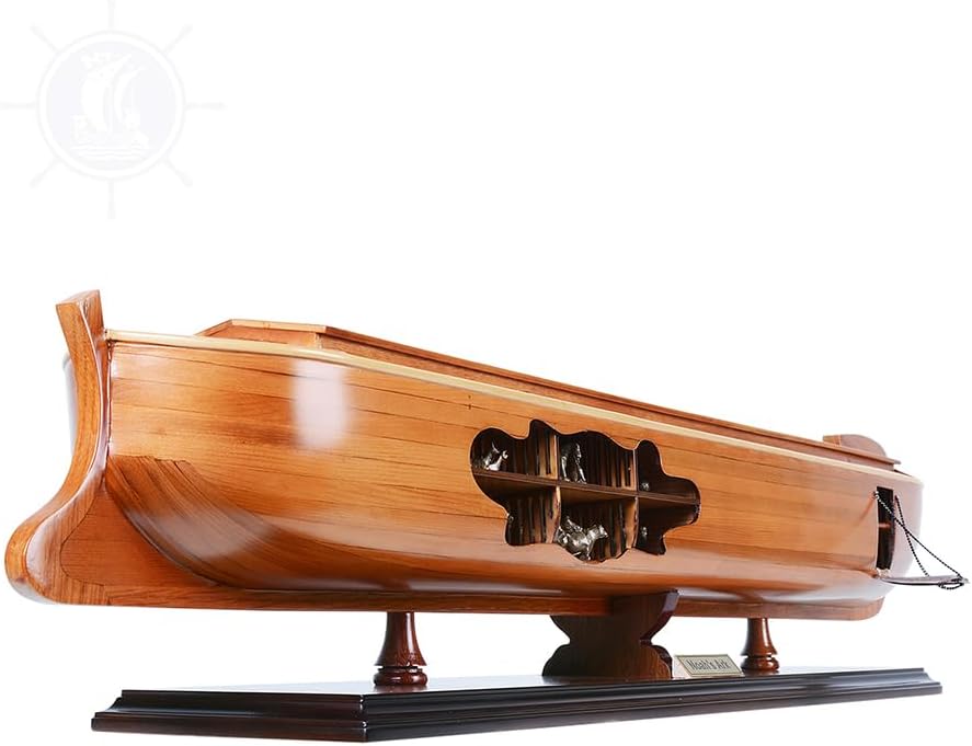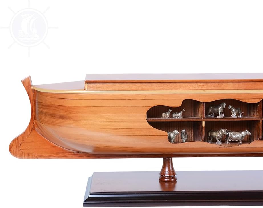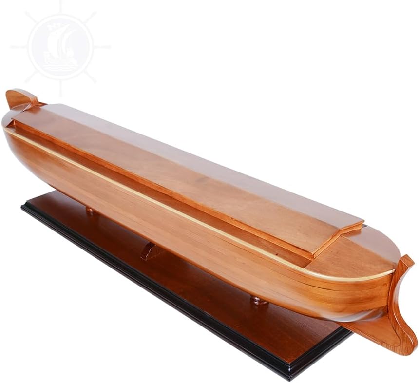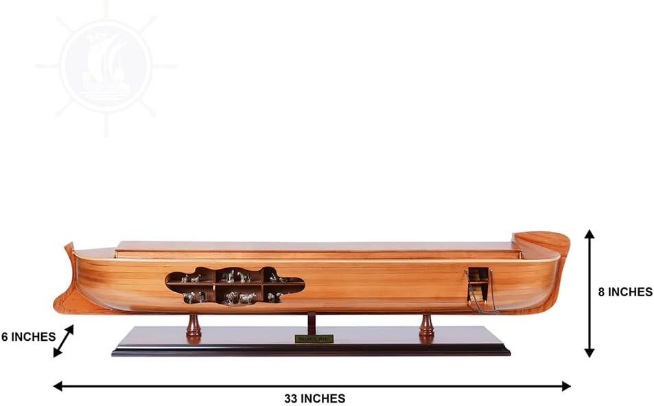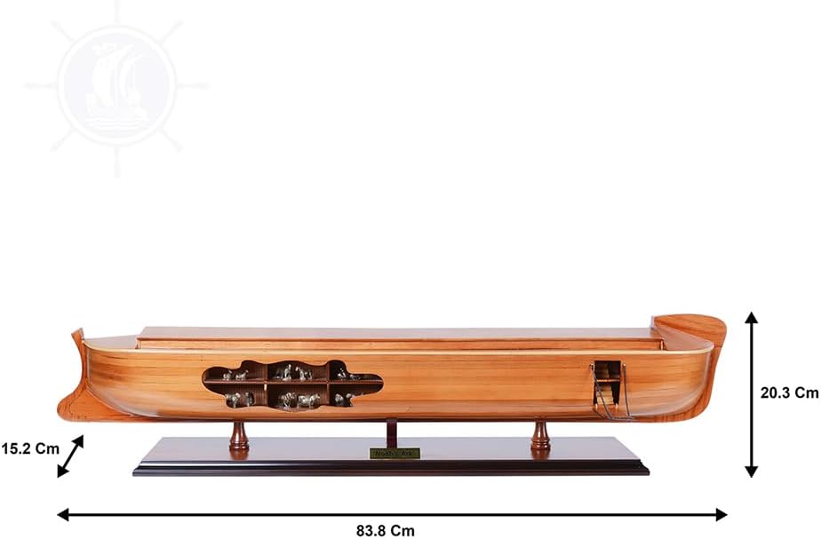 Modello in legno barca NOAH BOAT APERTO HULL completamente assemblato motoscafo replica modellato in scala per la decorazione DIMENSIONI GENERALI: Lmax: 33 - Wmax: 6 - Hmax: 20.3 cm Sono costruiti a mano al 100% individualmente utilizzando il metodo di costruzione plank-on-frame e sono simili alla costruzione di navi reali. Materiale: legno di alta qualità come: cedro rosso occidentale, palissandro e mogano + solo metallo (senza parti in plastica) COMPETENZA: i migliori metodi tradizionali di fabbricazione reale applicati, centinaia di ore necessarie per completare ogni modello dai nostri maestri artigiani UNICITÀ: ogni nave è una "Exclusive Edition" dove il modello ha un numero di serie unico inciso nello scafo Raccordi e ornamenti in cromo e ottone costituiscono l'eccellenza dei nostri modelli.