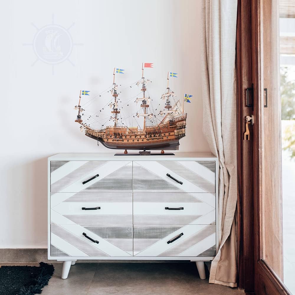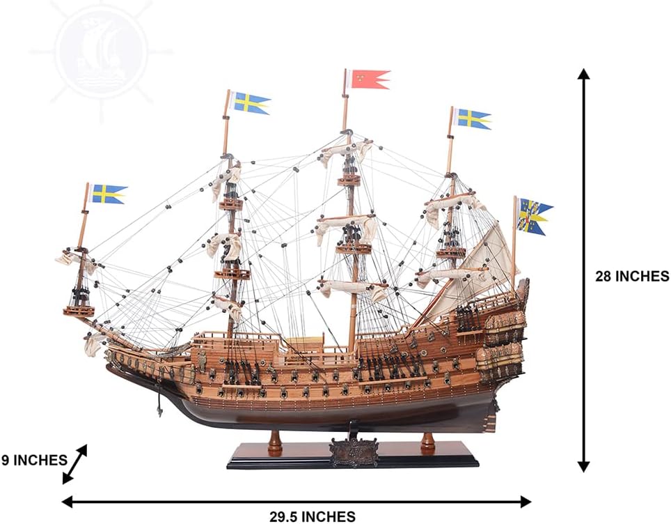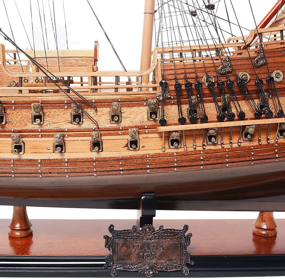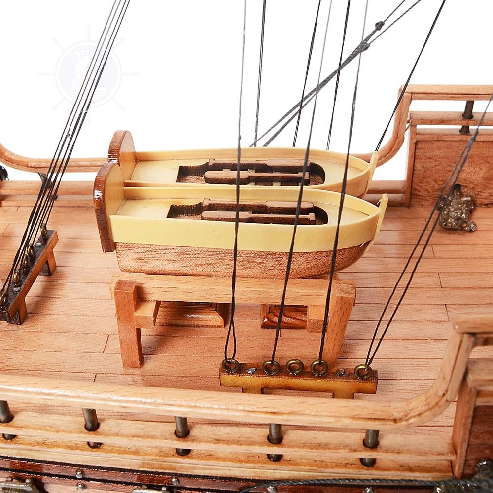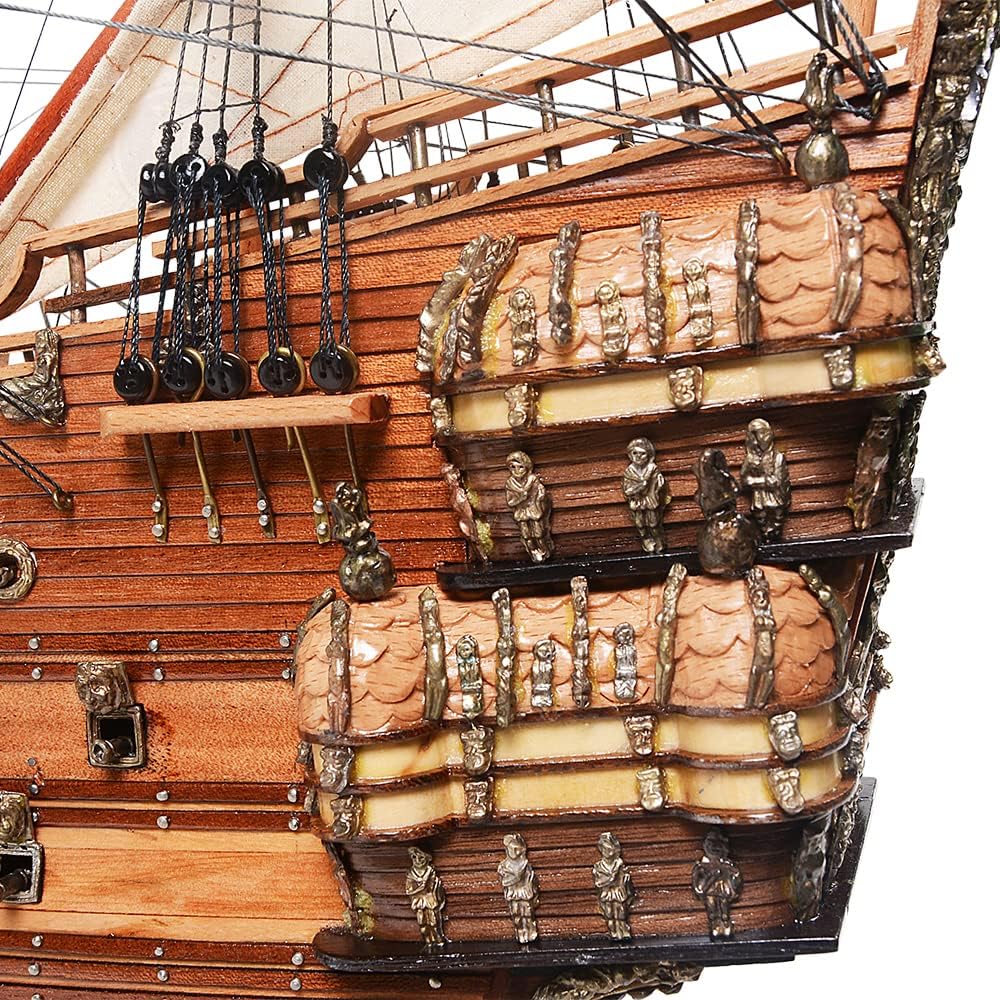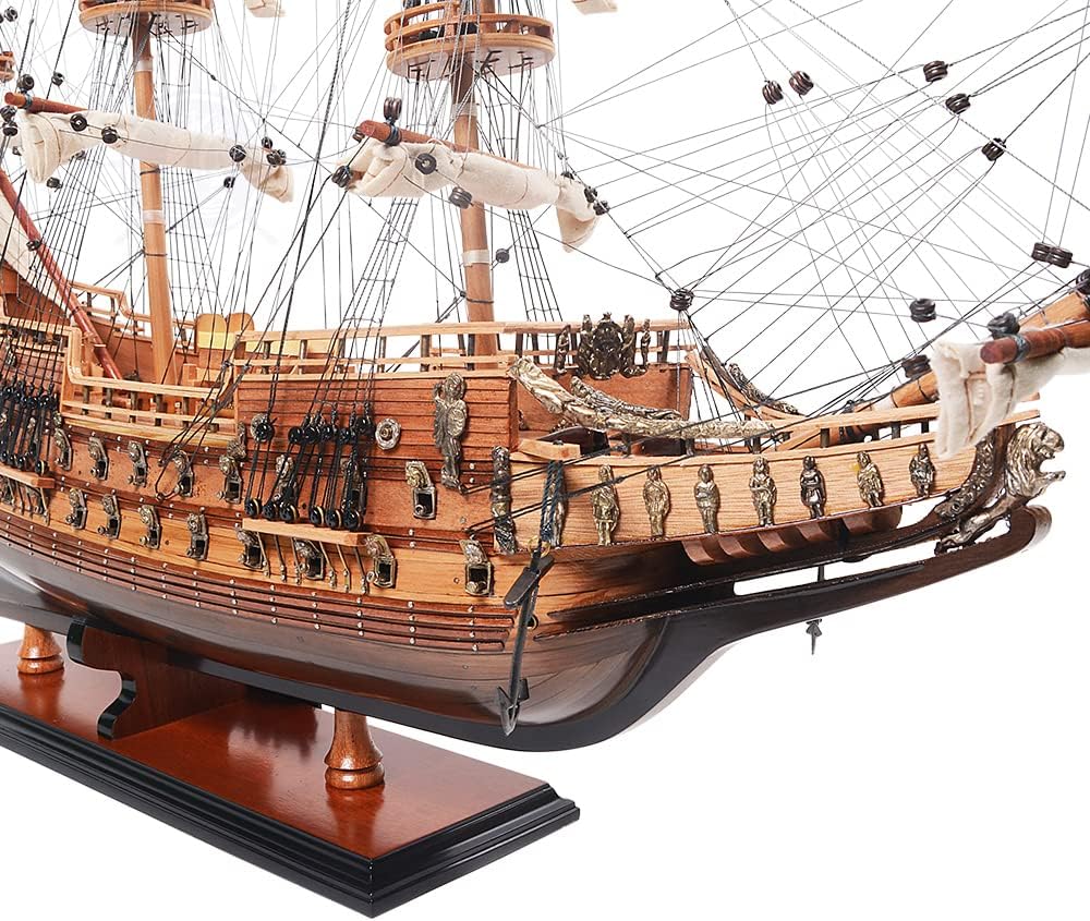 Sono costruiti individualmente a mano al 100% utilizzando il metodo di costruzione plancia su telaio e si ergono orgogliosamente a 29,5 L x 9,0 L x 28,0 A pollici Legno di prima qualità: realizzato con precisione utilizzando legno di prima qualità (cedro rosso occidentale, palissandro e mogano) ornato con statue e ornamenti in ottone per un tocco opulento COMPETENZA: applicati i migliori metodi tradizionali di costruzione navale, centinaia di ore necessarie per rifinire ogni modello dai nostri maestri artigiani UNICITÀ: ogni nave è una “Edizione Esclusiva” in cui il modello ha un numero di serie unico inciso sullo scafo I nostri maestri artigiani costruiscono repliche in scala di qualsiasi imbarcazione o modello di imbarcazione, inclusi ma non limitati a navi d'alta quota, yacht a vela, navi da crociera, motoscafi di qualsiasi dimensione utilizzando tecniche di integrazione di metodi tradizionali e moderni. Proprio il regalo perfetto per decoratori di casa o ufficio, appassionati di barche o collezionisti appassionati.