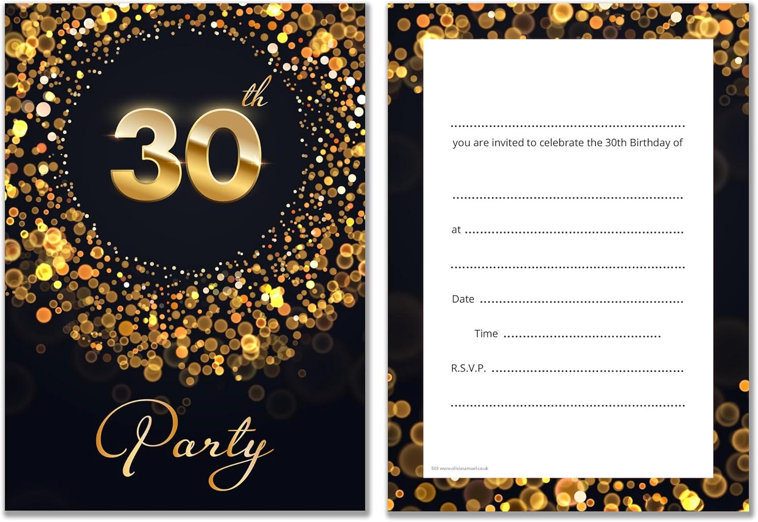 Inviti per il 30° compleanno, confezione da 20 inviti per feste di alta qualità, formato A6 (105 mm x 148 mm), stampati professionalmente su entrambi i lati, forniti con buste bianche Cartoncino extra spesso ⭐ cartoncino triplo rivestito da 300 g/m² con retro opaco per una facile scrittura Dimensioni: questi biglietti d'invito misurano 105 x 148 mm (formato A6) e sono dotati di buste C6 con chiusura ermetica Ecologico: la nostra fabbrica funziona con energia rinnovabile al 100%. Il nostro cartoncino proviene da fonti sostenibili. Sia il biglietto che la busta sono completamente riciclabili.