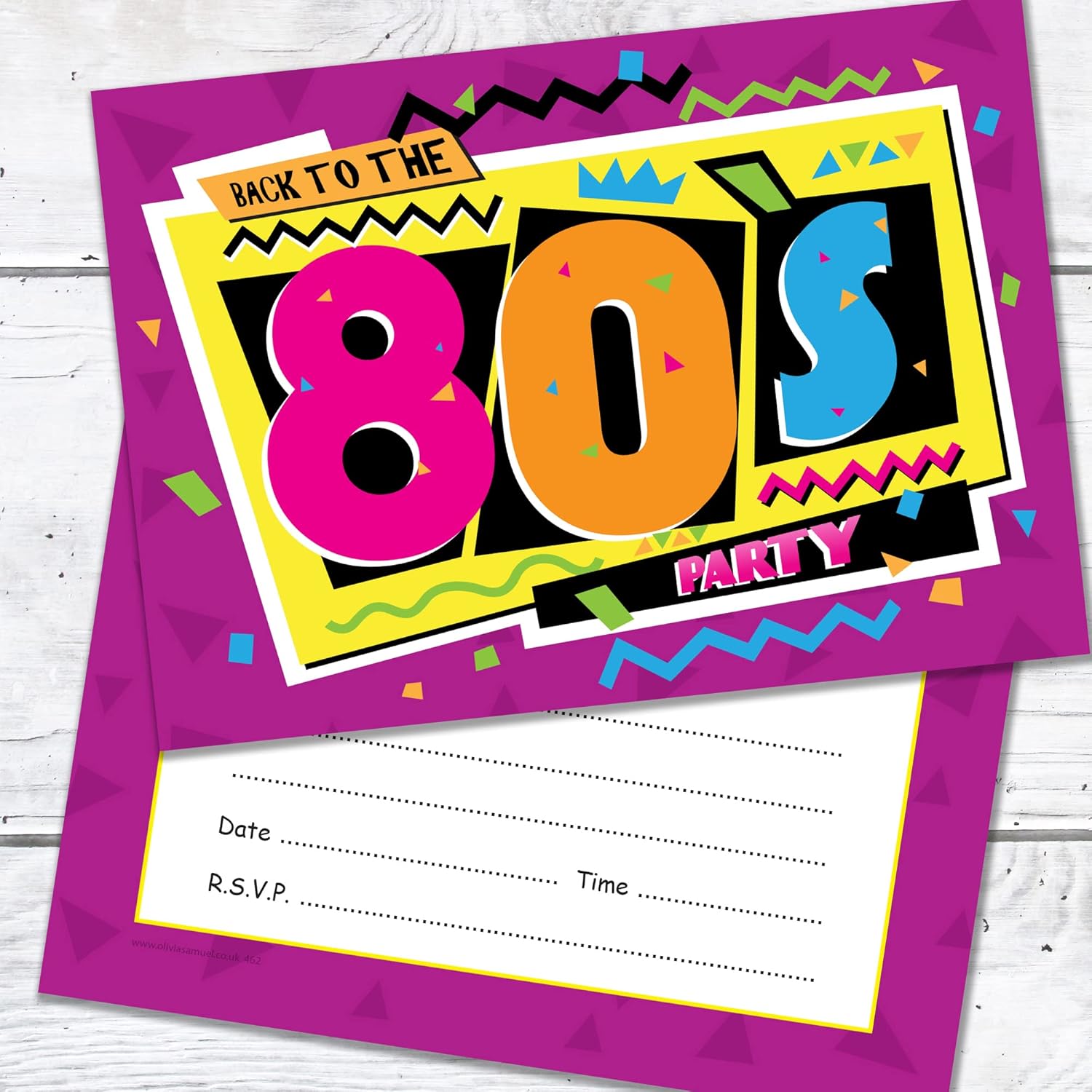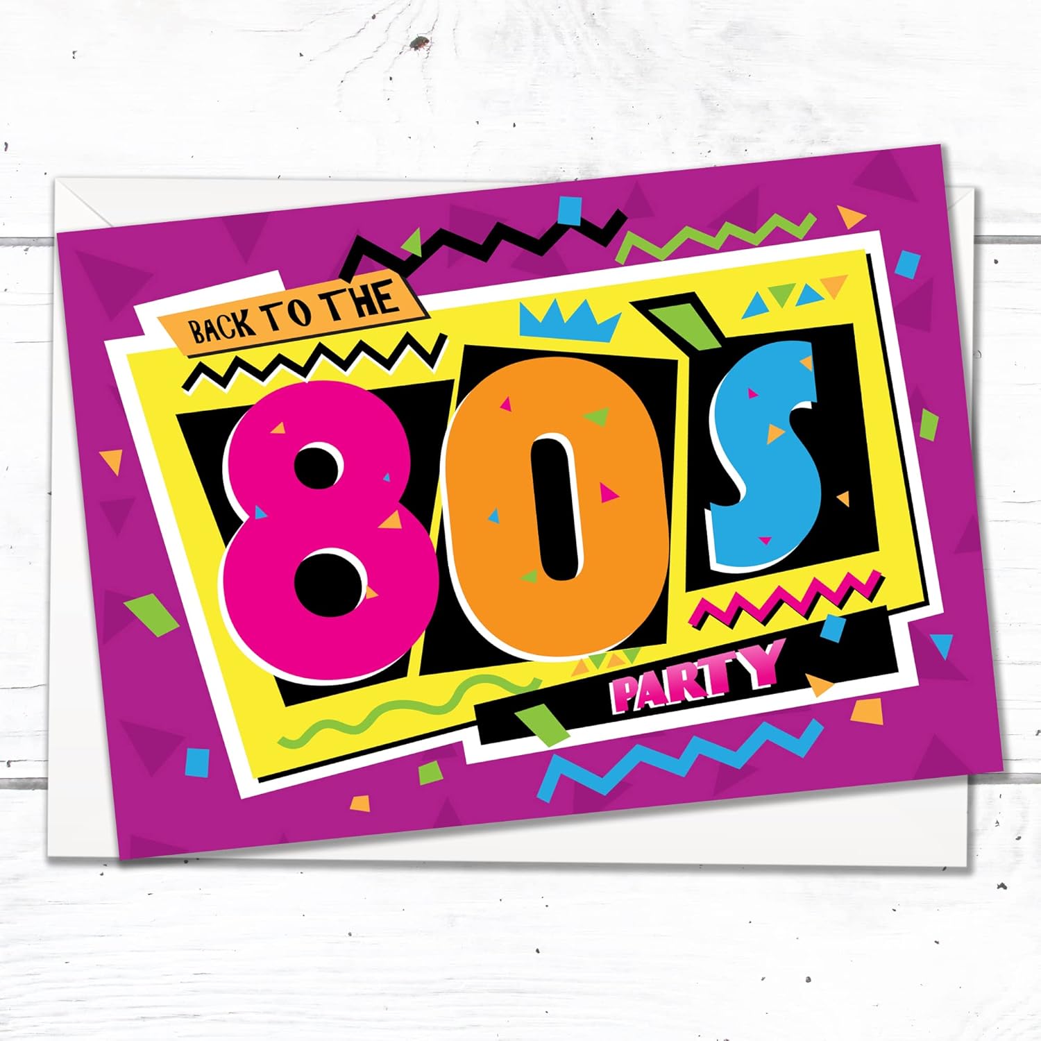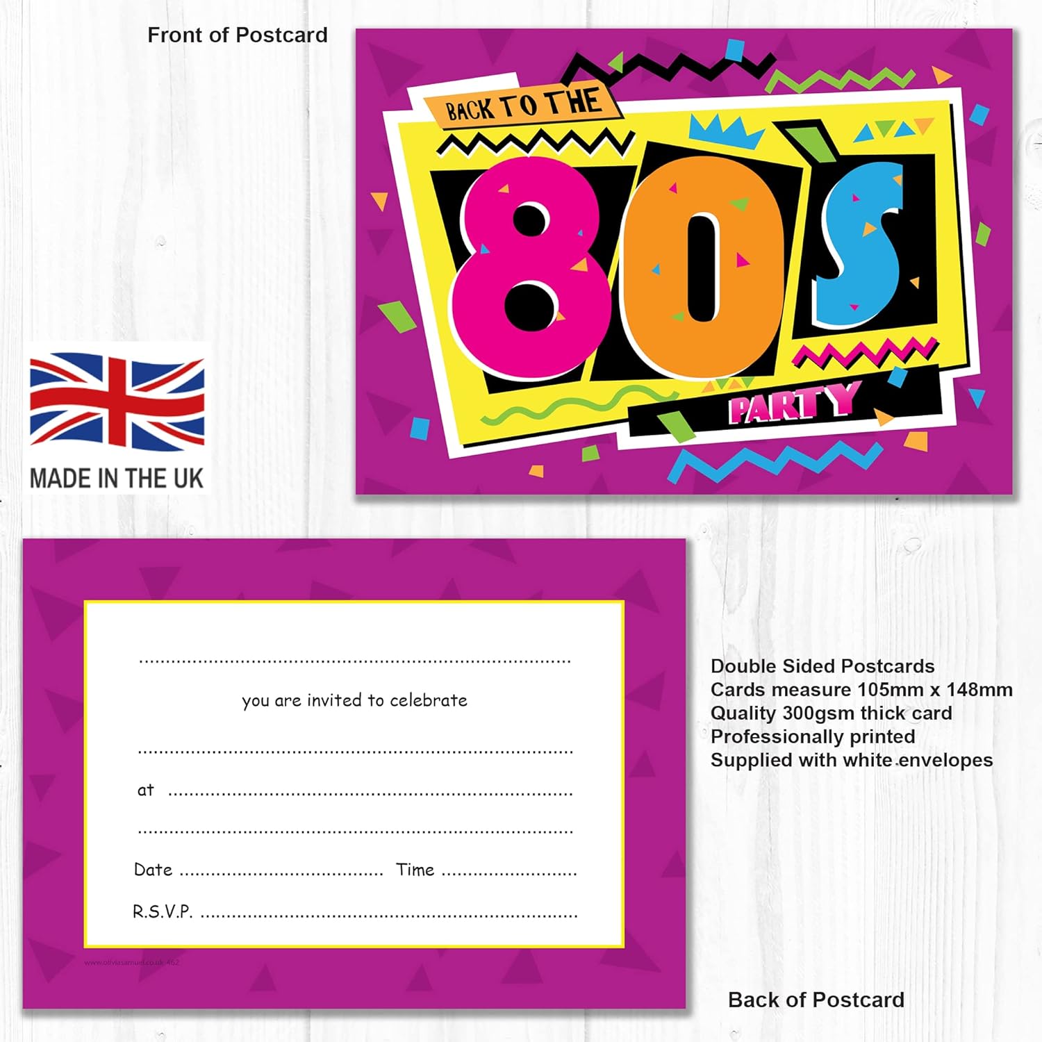 Inviti per feste del 1980, confezione da 20 inviti per feste di alta qualità, formato A6 (105 mm x 148 mm), stampati professionalmente su entrambi i lati, forniti con buste bianche Cartoncino extra spesso ⭐ cartoncino triplo rivestito da 300 g/m² con retro opaco per una facile scrittura Dimensioni: questi biglietti d'invito misurano 105 x 148 mm (formato A6) e sono dotati di buste C6 con chiusura ermetica Prodotto nel Regno Unito ⭐ Stampato nella nostra fabbrica Hampshire Ecologico: la nostra fabbrica funziona con energia rinnovabile al 100%. Il nostro cartoncino proviene da fonti sostenibili. Sia il biglietto che la busta sono completamente riciclabili.
