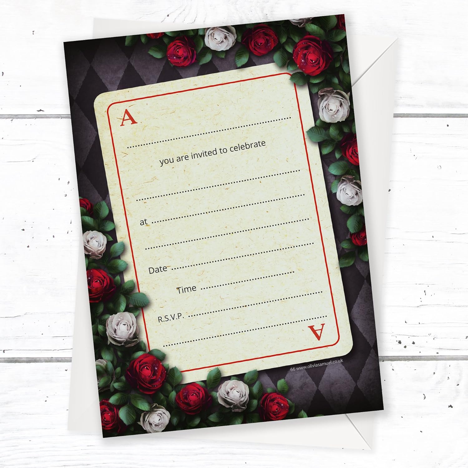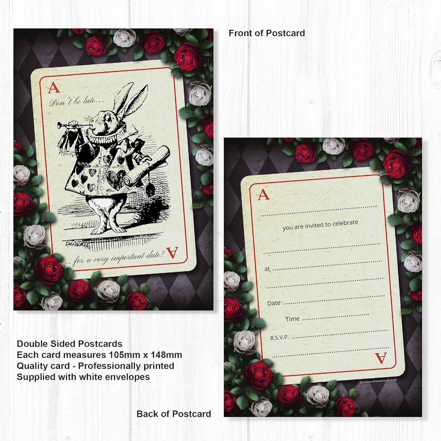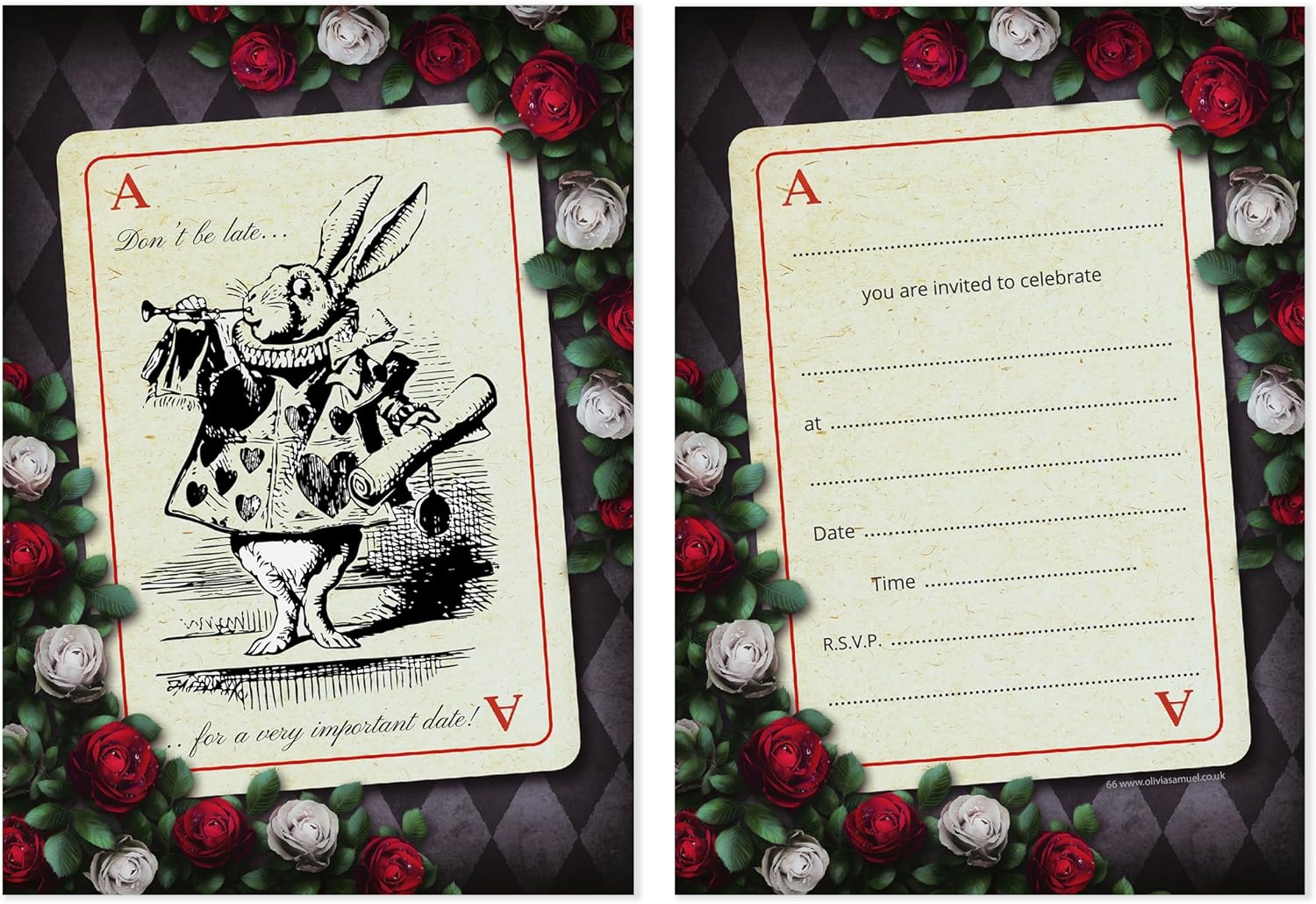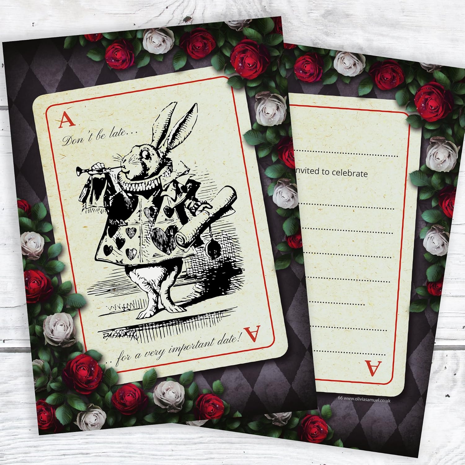 Confezione da 20 inviti per il tea party in stile Alice nel Paese delle Meraviglie, stampati professionalmente su entrambi i lati. Cartoncino extra spesso: stampato su cartoncino triplo rivestimento di alta qualità da 300 g/m². La parte anteriore della carta ha una lucentezza elegante. Il retro del biglietto ha una finitura opaca per facilitare la scrittura. Dimensioni: questi inviti misurano A6 (105 x 148 mm). Buste incluse: questi inviti vengono forniti con 20 buste bianche da 100 g/m² di alta qualità. Ecologiche e prodotte nel Regno Unito. La nostra fabbrica funziona con energia rinnovabile al 100%. Il nostro cartone viene coltivato in modo sostenibile e le carte sono completamente riciclabili.