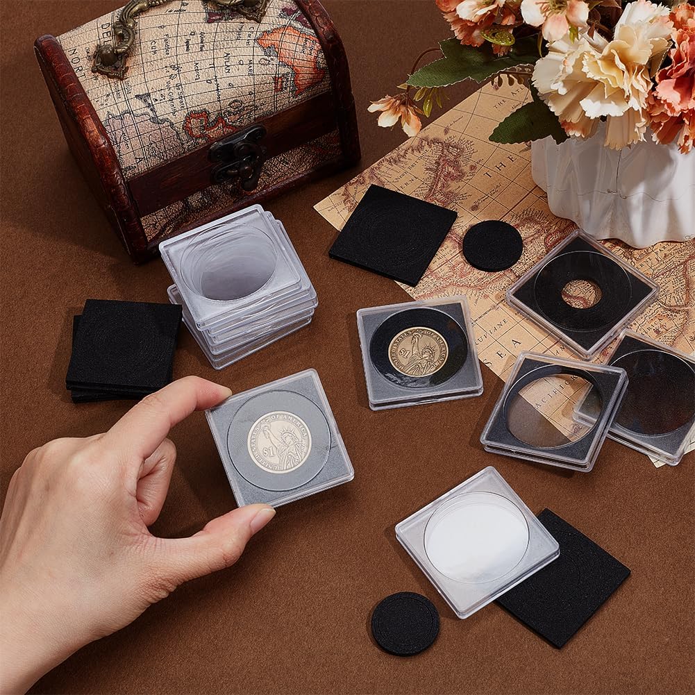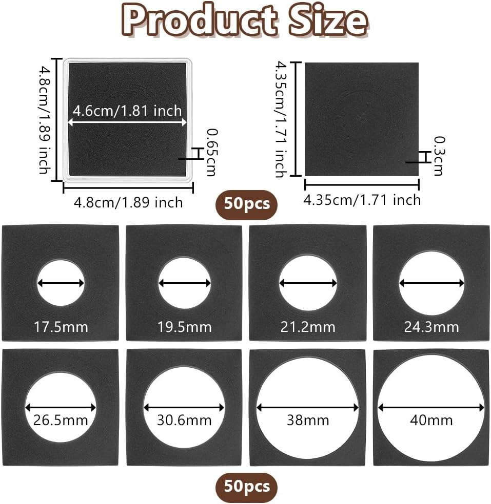 La confezione include: la confezione include 50 pezzi di scatola portamonete da 48x48x6,5 mm con diametro interno di 46x46 mm e 50 pezzi di tamponi in spugna abbinati da 43,5x43,5x3 mm, che forniscono set completi pronti all'uso per le vostre esigenze numismatiche quotidiane Informazioni sui materiali: le scatole di plastica sono leggere ma resistenti con elevata trasparenza per una presentazione ottimale delle monete, mentre i tamponi in spugna Gli elastici forniscono un'imbottitura sicura per proteggere le vostre monete Comodo da usare -- Ogni scatola presenta una forma a mezzaluna apertura per un facile accesso e un rapido recupero delle monete quando necessario. Anello in spugna regolabile-- L'anello in spugna è regolabile, per un totale di otto dimensioni, 17,5/19,5/21/24/26,5/30/38/40 mm, può essere regolato in base alle dimensioni delle monete della tua collezione. Ampio utilizzo: queste scatole portamonete sono ideali per conservare, esporre e scambiare monete commemorative e altri oggetti da collezione, rendendole ideali per numismatici e appassionati. Sono perfetti anche per cerimonie di premiazione e mostre, oltre a essere regali premurosi per Natale, compleanni, Ringraziamento e altre occasioni speciali
