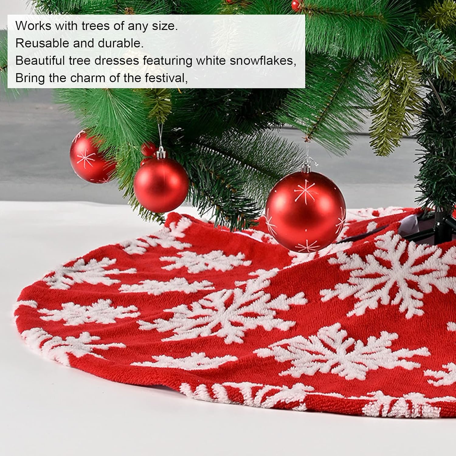 [Tema dal design versatile] Questo tappetino rotondo per albero di Natale presenta un classico motivo a fiocchi di neve bianchi che si adatta a qualsiasi stile, dal tradizionale allo stravagante. La combinazione di colori neutri e il design senza tempo lo rendono perfetto per il coordinamento. [Decorazioni natalizie premium] Trasforma il tuo albero di Natale in un centrotavola festivo con questa bellissima gonna bianca per albero di neve. L'elegante design a fiocco di neve aggiunge un affascinante autunno invernale alle tue decorazioni natalizie. [Utilizzo multiuso] Questa versatile gonna per albero è perfetta per la decorazione natalizia di interni ed esterni. È ideale per arredare soggiorni o terrazzi. La base antiscivolo lo mantiene saldamente in posizione mentre il design elegante eleva il tuo intero Natale. [Completa il tuo look natalizio] Completa l'esposizione dell'albero di Natale con questa gonna coordinata che mette in risalto i regali. L'intricato motivo a fiocchi di neve aggiunge consistenza e dimensione che crea un look festoso e raffinato. [Pratico] Realizzata in morbido tessuto di poliestere, questa gonna per albero offre comfort e resistenza. Le dimensioni generose possono ospitare la maggior parte degli alberi standard, mentre il materiale garantisce che durerà per molte stagioni festive