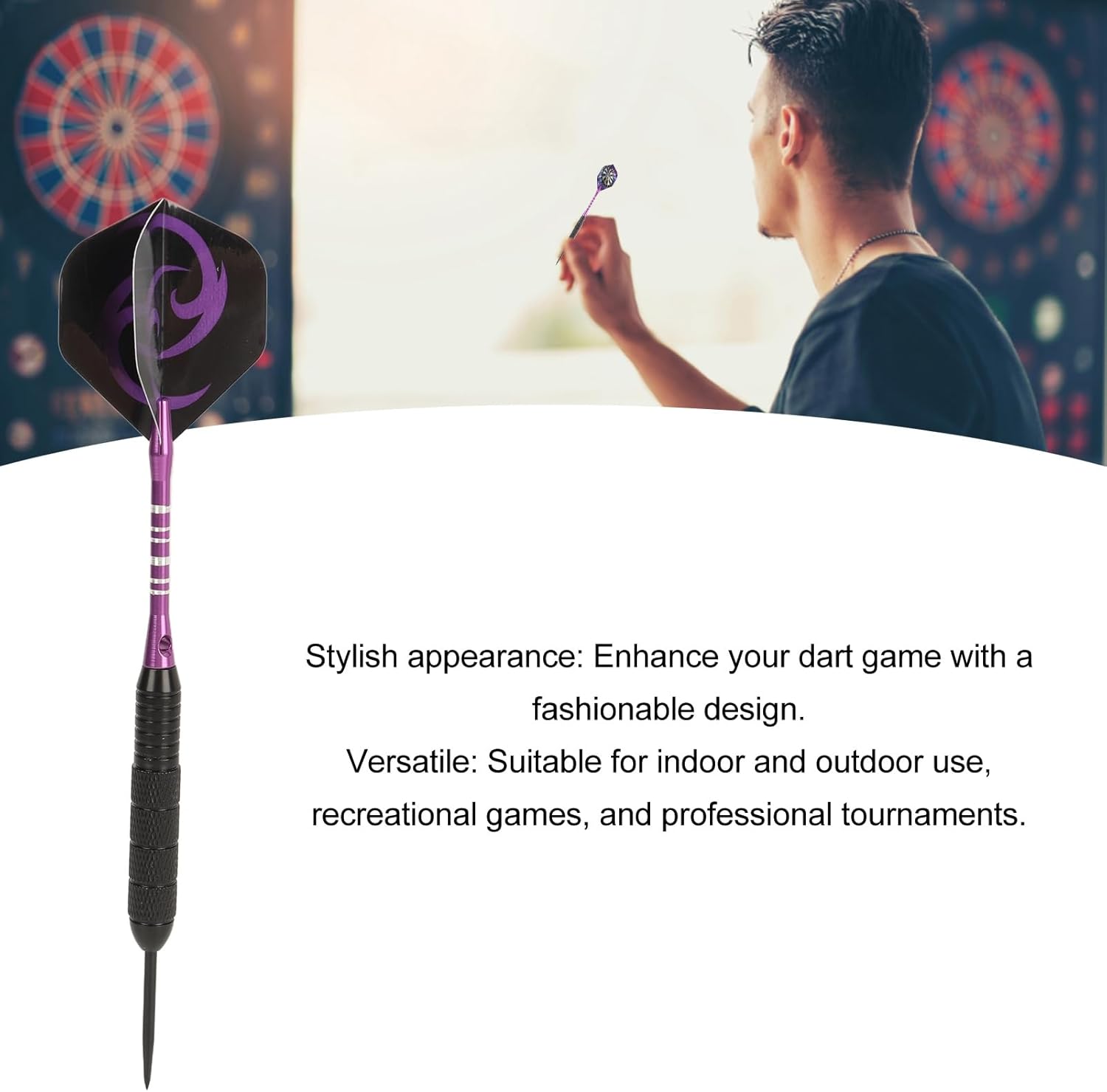 [Punte in acciaio durevoli] Dotati di punte in acciaio, questi dardi con punta in acciaio sono costruiti per durare. le robuste punte in metallo resistono alla rottura e mantengono l'affilatura garantendo un utilizzo a lungo termine senza compromettere le prestazioni. [Design con impugnatura antiscivolo] L'albero è dotato di un'impugnatura antiscivolo avanzata che fornisce una presa salda e confortevole. questo design ergonomico delle freccette con punta in acciaio riduce l'affaticamento della mano e migliora il controllo consentendo lanci più accurati. [Freccette di livello professionale] Progettato sia per giocatori esperti che per principianti, questo set di freccette con punta in acciaio offre prestazioni e durata eccezionali. la costruzione garantisce tiri costanti rendendolo ideale sia per il gioco competitivo che per i giochi casual. [Facile da montare] Le freccette e l'albero sono progettati per un montaggio rapido. l'asta in alluminio fissa saldamente il dispositivo in posizione mentre il design leggero garantisce un equilibrio ottimale. questa configurazione intuitiva ti consente di giocare senza preoccuparti di componenti allentati o instabili. [Per ogni occasione] Che tu stia organizzando una festa a casa godendoti una partita al bar o facendo pratica nel tuo garage, questo set di freccette è l'aggiunta. il suo design versatile si adatta a vari ambienti rendendolo un must per gli appassionati di intrattenimento e sport.