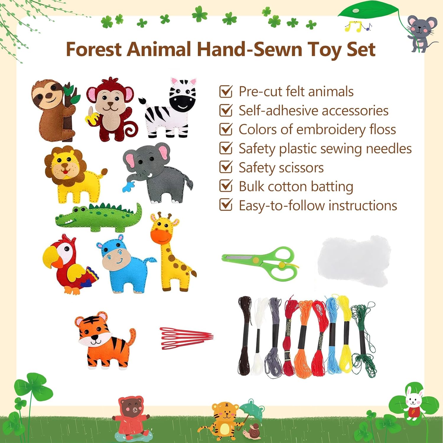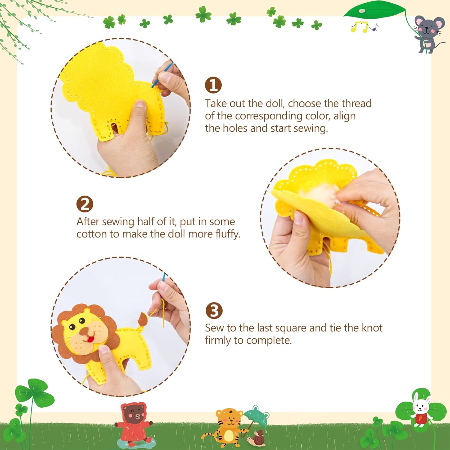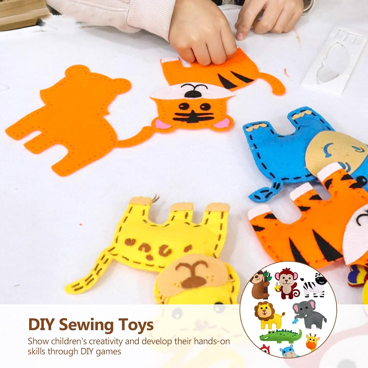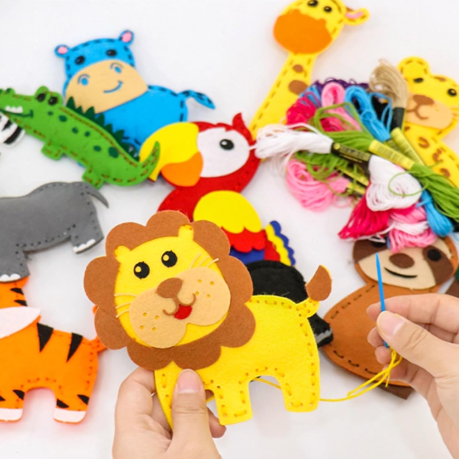 Materiali di Alta Qualità: Nostra Confezione da Cucito in Feltro per Bambini è realizzata in feltro di alta qualità, sicuro e atossico, morbido e confortevole per i bambini. Inoltre, il tessuto del nostro Kit cucito Bambini non ha odori strani, non contiene additivi, è ecologico, resistente e durevole, e il colore generale è brillante e non sbiadisce facilmente Giocattoli Educativi Efficaci: Nostro Kit Cucito è un giocattolo educativo perfetto che permette ai bambini di allontanarsi dagli schermi elettronici ed entrare nel mondo della creatività. Questo Set da Cucito Fai Da Te per Bambini può aiutare i bambini a sviluppare il loro cervello, allenare la coordinazione occhio-mano, la capacità di pensiero e la concentrazione, e offrire loro il divertimento dell'auto-creazione Antistress: Nostro Set da Cucito per Bambini può regalare al tuo bambino un relax completo. Il materiale morbido di questo Set da Cucito gli permette di essere modellato a piacimento senza danneggiarne la struttura. Il tuo bambino potrà divertirsi a cucire e modellare il suo cucito in tutta tranquillità, il che lo aiuterà ad alleviare stress e ansia Momenti Divertenti Ed Educativi per Genitori e Figli: Nostro set Snimali Fai Da Te per Bambini è un ottimo aiuto per genitori e figli per giocare e imparare insieme. È uno strumento eccellente per genitori e figli per imparare e crescere insieme. In questo processo, quando i bambini incontrano difficoltà, cercheranno attivamente aiuto e i genitori li guideranno. Questo set Cucito Bambini può promuovere la comunicazione genitore-figlio e creare momenti di qualità in famiglia Regalo Perfetto: Nostro Feltro da Cucire è un regalo ideale per i bambini per compleanni, Natale o qualsiasi altra occasione. Questo kit è colorato e carino e può essere appeso ovunque, dando ai bambini più motivazione a creare cose a mano. Inoltre, questo kit da cucito li accompagnerà durante la crescita, il che è una benedizione sia per i bambini che per la loro crescita