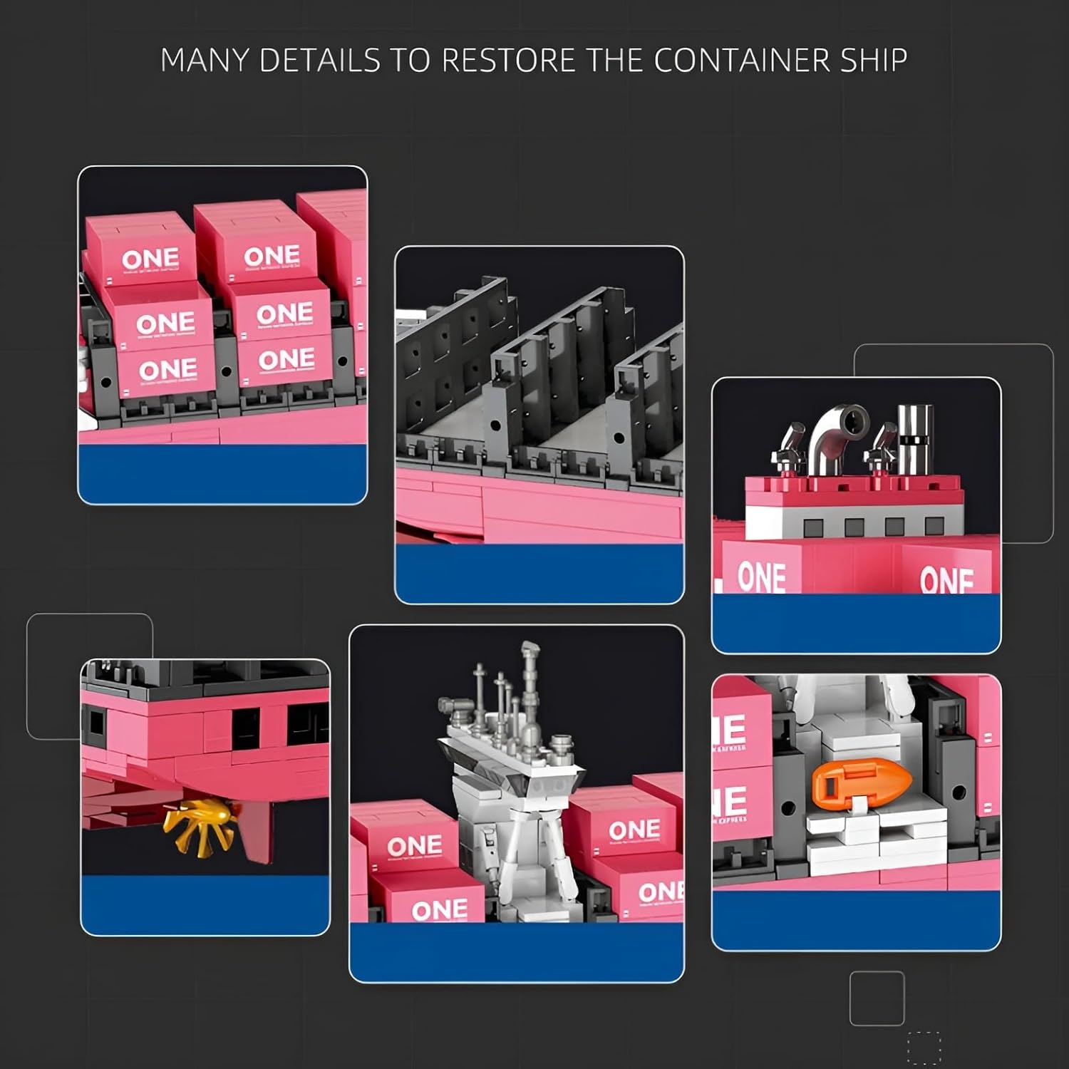 【Blocchi portacontainer】 Questa nave portacontainer rosa è composta da 1.446 pezzi di blocchi ed è lunga 63,3 cm, larga 10,7 cm e alta 20 cm. Ogni dettaglio è realizzato con cura e i contenitori sono separati da binari e rimovibili, replicando perfettamente la struttura della nave. 【Dettagli squisiti】 Questo modello di nave 3D di grandi dimensioni e dal design accattivante è ricreato sotto forma di mattoncini. Presenta numerosi dettagli: un unico container, binari, camino, elica, scialuppa di salvataggio, alloggi, struttura dello scafo e cabine superiori e inferiori, replicando perfettamente la struttura di una nave portacontainer. 【Materiali di alta qualità】 Questo set di blocchi per navi portacontainer è realizzato con materiali durevoli e di alta qualità con una superficie liscia e priva di sbavature. Sono incluse istruzioni per la costruzione facili da seguire con chiare istruzioni passo passo in modo che chiunque possa facilmente comprendere e assemblare la nave. 【Decorazione e collezione】 Questo modello di blocco di nave portacontainer rosa assemblato può essere posizionato ovunque nella tua stanza o in ufficio come elemento decorativo. Viene fornito con un supporto per un pratico esposizione e conservazione e una piccola targhetta per il nome e valorizza l'atmosfera di ogni stanza con il suo fascino unico. 【Regalo creativo】 Questo giocattolo da costruzione per nave portacontainer rosa è un regalo unico per amici o bambini, perfetto per compleanni, Halloween, Natale, Capodanno, regali di inaugurazione della casa e altro ancora. È perfetto per i bambini e gli appassionati di costruzioni e regala loro momenti gioiosi e creativi.