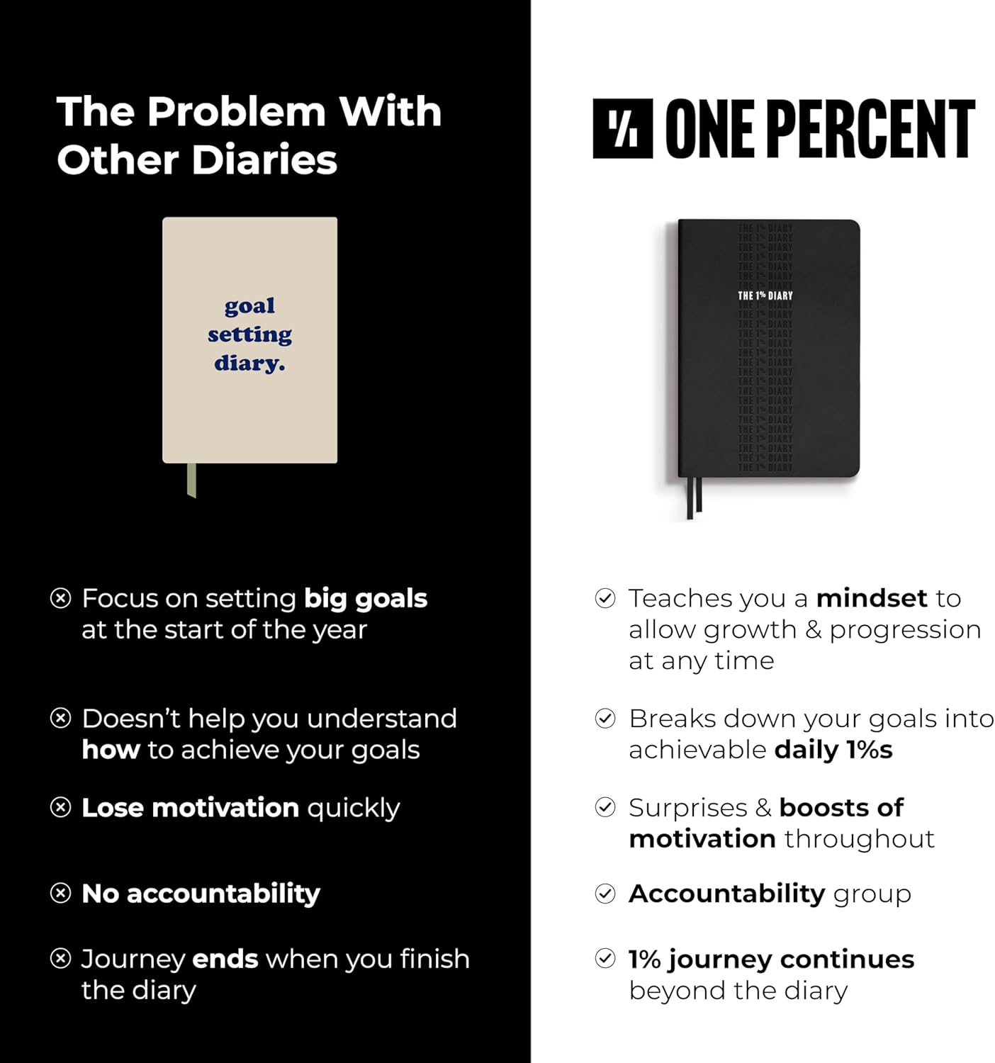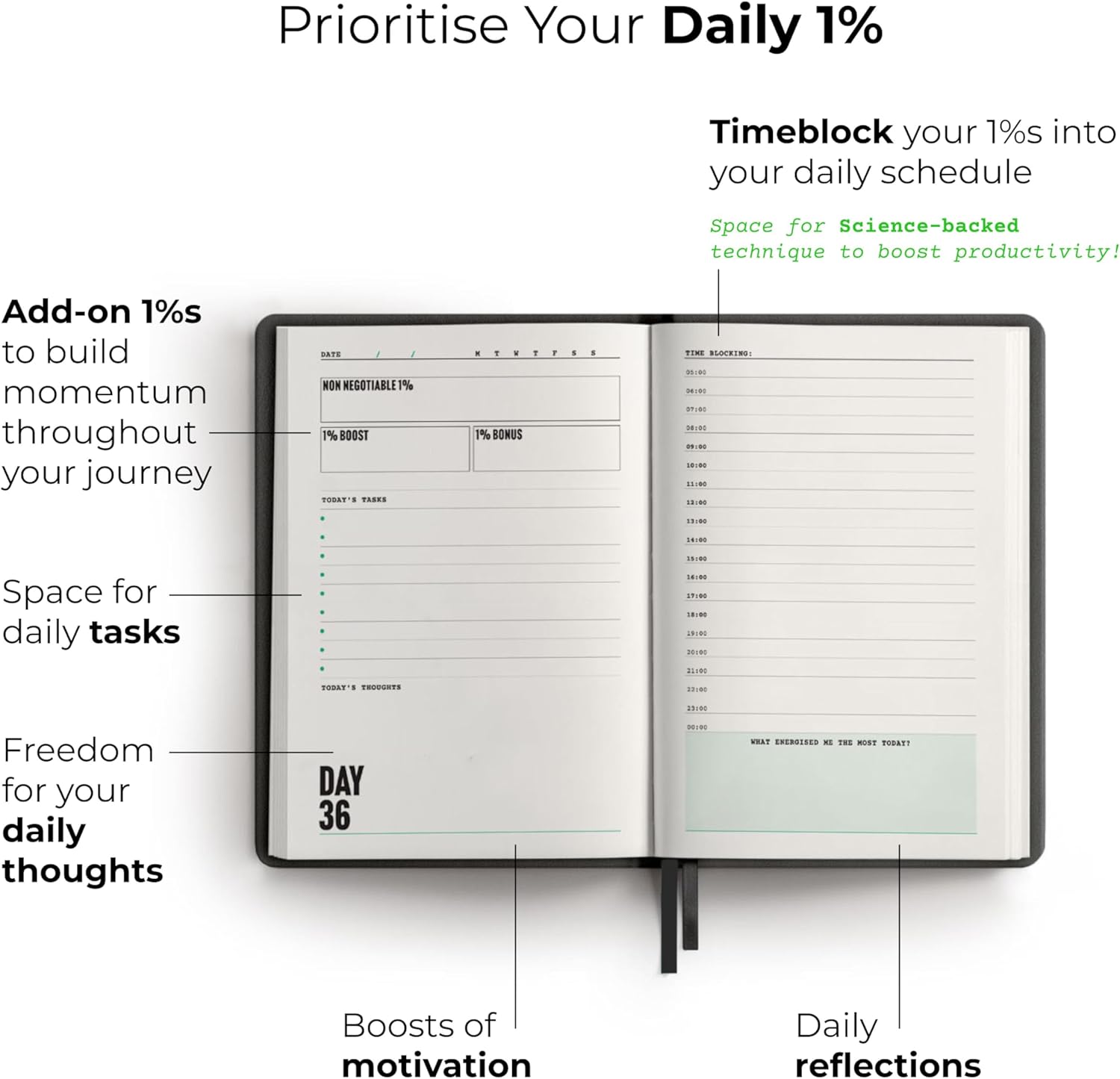 Non è solo un diario, è un cambiamento di mentalità. Come presentato nel podcast The Diary of a CEO di Steven Bartlett, The 1% Diary è il tuo compagno di 90 giorni per l'auto-miglioramento, la disciplina e il progresso. Costruito attorno alla stessa mentalità che ha alimentato la crescita esplosiva di Diary of a CEO Steven Bartlett, questo diario di sviluppo personale ti aiuta a intraprendere azioni quotidiane coerenti che portano a risultati significativi. Dimentica enormi successi dall'oggi al domani. Questo diario da uomo si concentra su ciò che è È facile da fare e altrettanto facile da non fare. Riguarda la disciplina, la chiarezza e le abitudini che rimangono. Sia che lo usi come diario delle manifestazioni, diario personale o diario della gratitudine per gli uomini, ti dà la struttura di cui hai bisogno per presentarti ogni giorno e fare il tuo 1%. Con una combinazione di suggerimenti motivazionali, spazio per la riflessione e monitoraggio dei progressi, è più di un semplice diario positivo per aiutarti ad avere successo, a modo tuo incentrato sulla mentalità e sul successo, il Diario dell'1% è per chiunque sia pronto a impegnarsi per raggiungere i propri obiettivi e vivere intenzionalmente. Questo programma potrebbe non cambiare la tua vita da un giorno all'altro, ma la mentalità dell'1% lo farà.