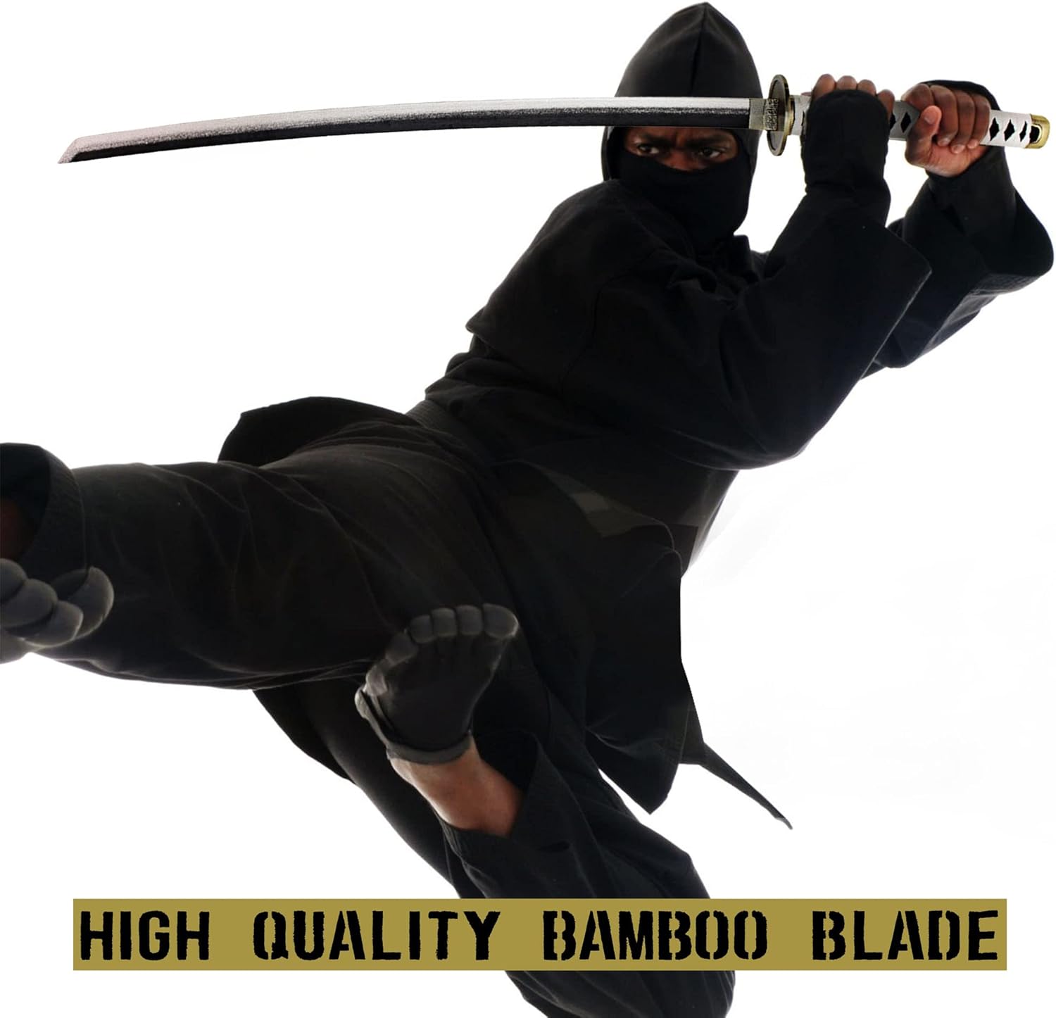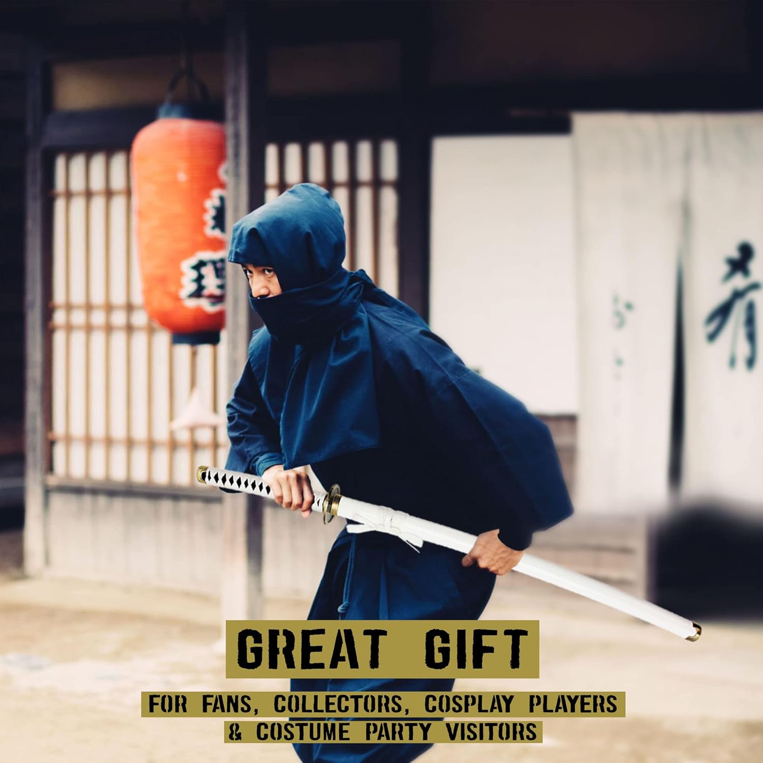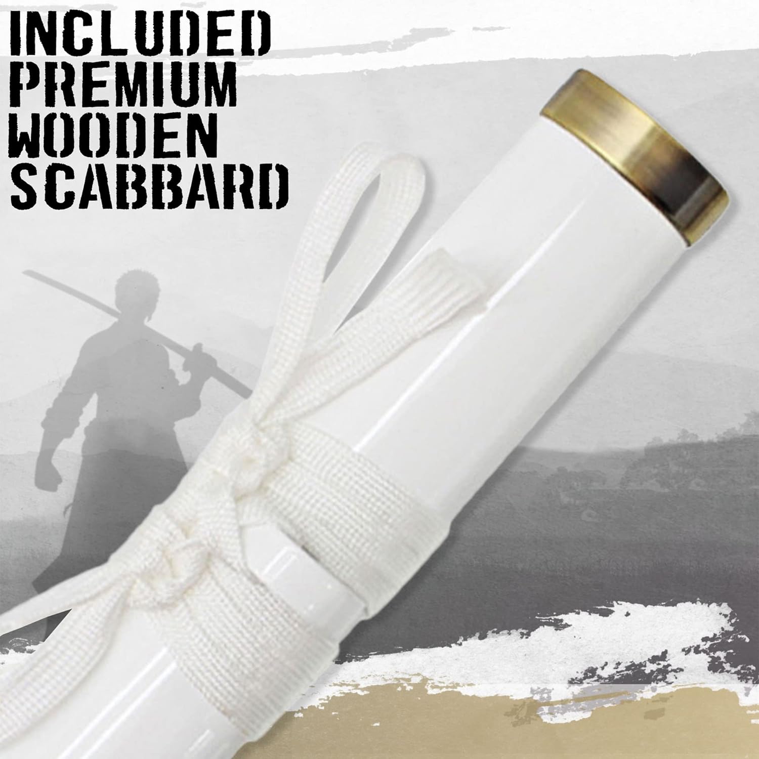 BIANCO PURO: Wado-Ichi-Monji Katana è una delle spade principali di Zoro. La lama di questo Wado Ichimonji ha una forma curva tradizionale che si trova su molte spade giapponesi. La spada presenta una tsuba circolare e un manico avvolto. Il fodero incluso è verniciato bianco lucido. Il suo attraente colore bianco dà alla spada il nome "BIANCO PURO". Una spada da samurai ideale per tutti i fan di One Piece. REPLICA PERFETTA: questa katana di bambù è una replica perfetta della katana dell'anime. L'aspetto, la lama e il manico sono tutti modellati sulla spada originale. È più leggero ed economico di una spada di metallo o di una katana. MATERIALE: La lama è in bambù, che è più leggera di una spada d'acciaio e ha una resistenza maggiore di una lama di legno. Il fodero e il paramano sono realizzati in plastica dura. La corda avvolta attorno al manico è in cotone, che assorbe efficacemente il sudore ed è antiscivolo. ACCESSORI PER COSTUMI DI ALTA QUALITÀ: il nostro prodotto è realizzato in bambù di alta qualità, durevole e robusto. Il look autentico completerà perfettamente il tuo cosplay di Zoro di One Piece. La lama non è affilata ed è molto leggera, sicura da usare. REGALO PERFETTO: questa spada One Piece è realizzata con attenzione ai dettagli. È un ottimo regalo per gli appassionati di anime e manga, collezionisti, cosplayer e partecipanti a feste in costume. Puoi usarlo per varie occasioni come Comic-Con, feste in costume, eventi cosplay, Halloween, ecc.