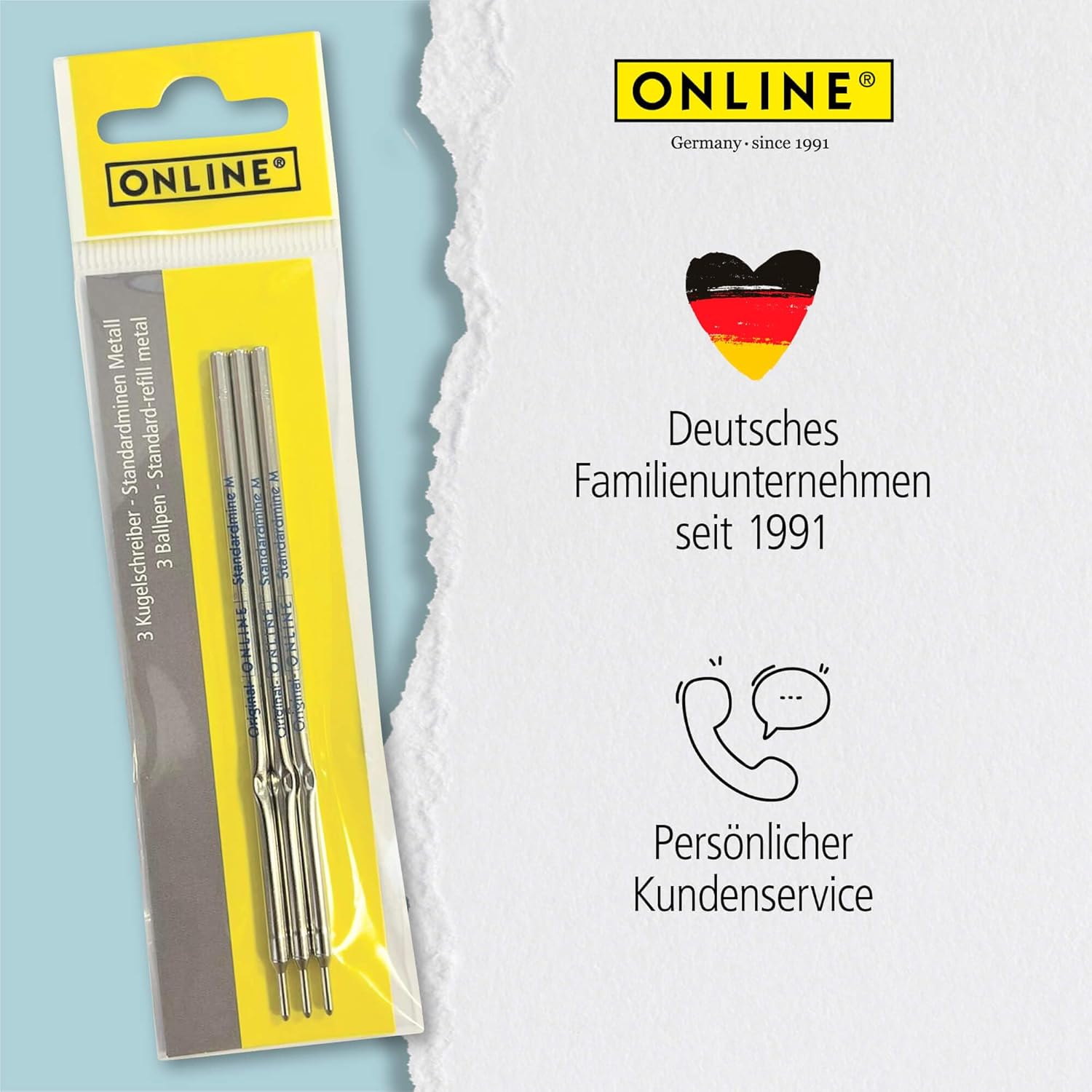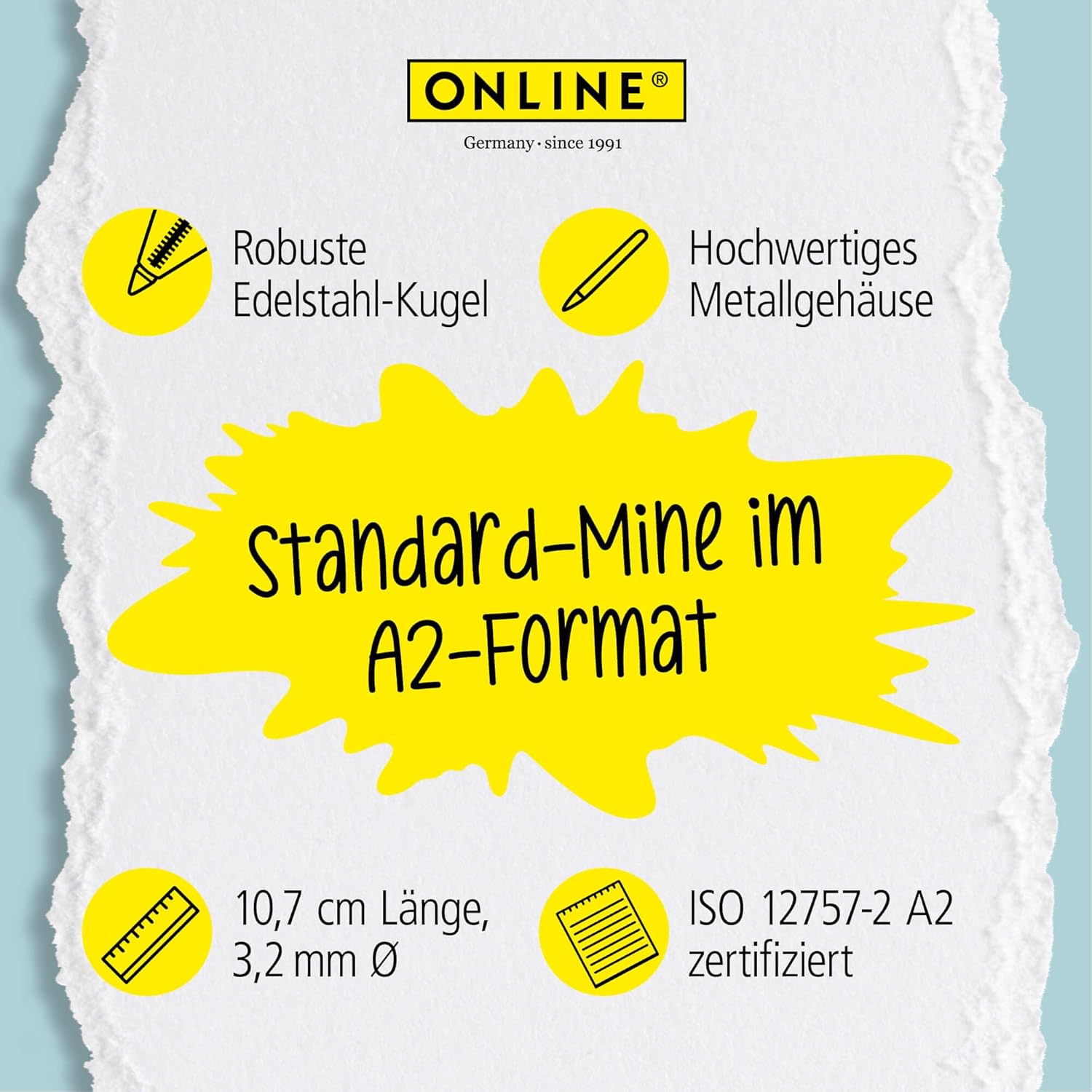 Per il tuo cuolo preferito: basta continuare a utilizzare la penna a sfera preferita con le pratiche culimine online. La mina standard A2 si adatta a molti modelli di penna a sfera comuni Scrittura rilassata: la punta in acciaio inox con sfera in carburo di tungsteno consente una scrittura uniforme e pulita con facilità Formato standard: la mina ha un corpo in metallo di alta qualità e scrive indelebile, resistente ai tropici e impermeabile con tratto M (medio) con sfera in acciaio inox Qualità certificata: la mina Kuli offre un flusso d'inchiostro uniforme e una tonalità costante. Certificato ISO 12757-2 A2 ONLINE Marchio di qualità: Online è un'azienda tedesca dal 1991 e specialista in strumenti di scrittura, set di calligrafia, astucci e molto altro ancora