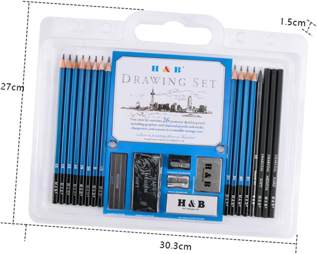 Matita per schizzi e pittura: manterrà tutti i materiali organizzati quando non vengono utilizzati, è possibile utilizzarli a casa, a scuola o in viaggio, materiali artistici Forniture artistiche: forniture per matite da disegno per creativi nell'arte, matite da disegno per pittura Una scelta per l'apprendimento del disegno professionale e principiante, artisti, adulti, , studenti, è lo strumento ideale per mettere in mostra il proprio talento nel disegno, ottimo per il disegno di figure, disegno a carboncino per materiali artistici Il set di 26 matite da disegno è un meraviglioso di natale, compleanno, capodanno e molto altro ancora Progettato per scrivere, disegnare e fare schizzi su carta e pellicola opaca