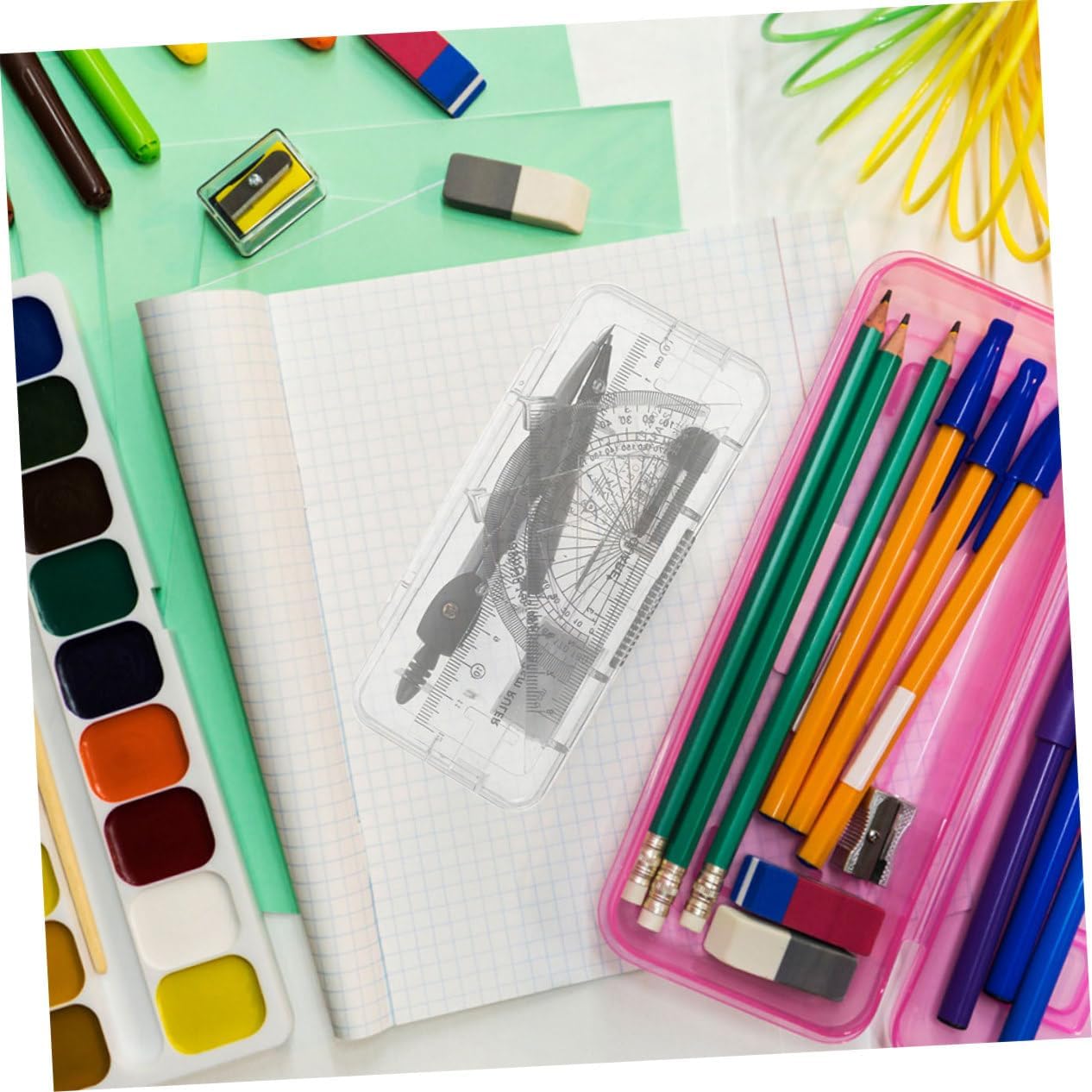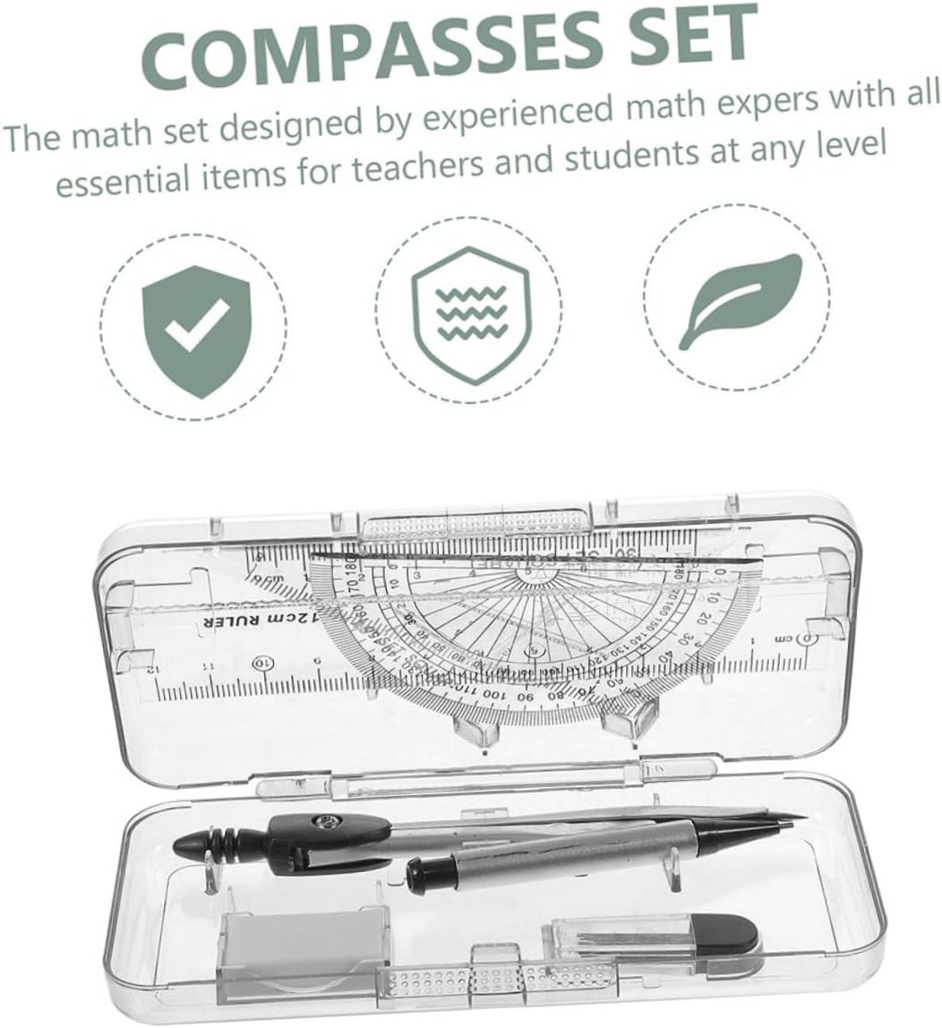 Set completo per disegno e misurazione: questo set include un compasso, un goniometro e vari righelli, fornendo tutti gli strumenti essenziali per disegni e misurazioni accurati Utilizzo conveniente: garantisce un'esperienza di disegno ed efficiente, eliminando la necessità di affilatura costante Gomma incorporata: con una gomma incorporata, questo set semplifica la correzione di eventuali errori, garantendo che i tuoi disegni siano sempre puliti e precisi Durevole e affidabile: questo set è progettato per durare nel tempo, rendendolo una scelta affidabile per l'uso quotidiano in vari ambienti Utilizzo versatile: adatto a insegnanti, studenti, architetti e ingegneri, questo set è adatto per un'ampia di applicazioni, progetti scolastici alle attività di redazione professionale