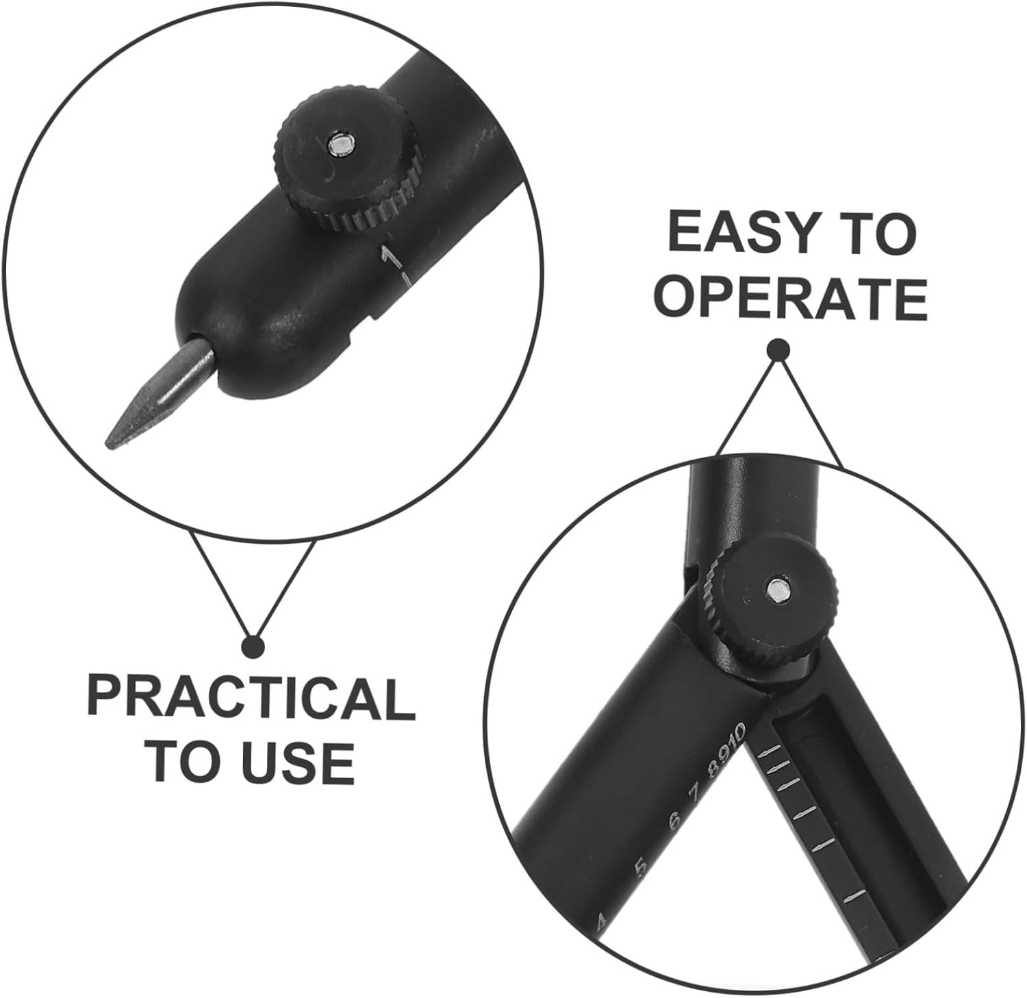 Segni visibili: i segni di scala chiari e di facile lettura migliorano la precisione del disegno e riducono gli errori, strumento per disegnare cerchi, strumento di disegno per cerchi Impugnatura comoda: progettato per il comfort, questo strumento adatta alla mano, rendendolo facile da usare per lunghi periodi senza fatica, creatore di cerchi geometrici, bussola per studenti con scala Scala ad alta visibilità: i segni chiari della scala sono facili da leggere, garantendo misurazioni e disegni accurati, bussola per disegno in metallo, bussola per disegno per la lavorazione del legno Realizzata in lega di zinco, questa bussola è progettata per durare, anche con un uso frequente, strumento di disegno geometrico, creatore di cerchi in metallo Comfort ergonomico: progettato pensando al comfort dell'utente, questo strumento offre una presa comoda per un uso prolungato, compasso per studenti per la geometria, compasso per il disegno