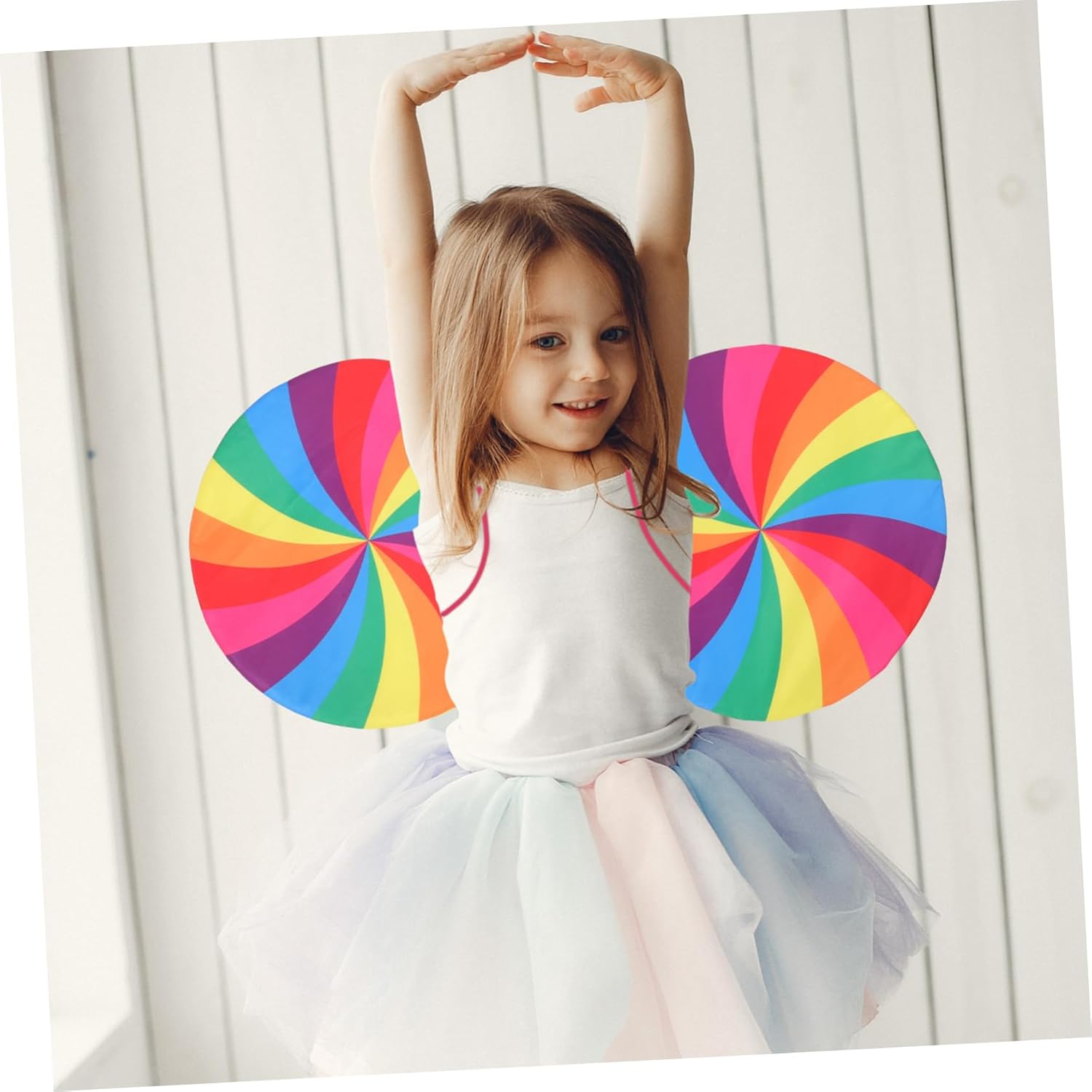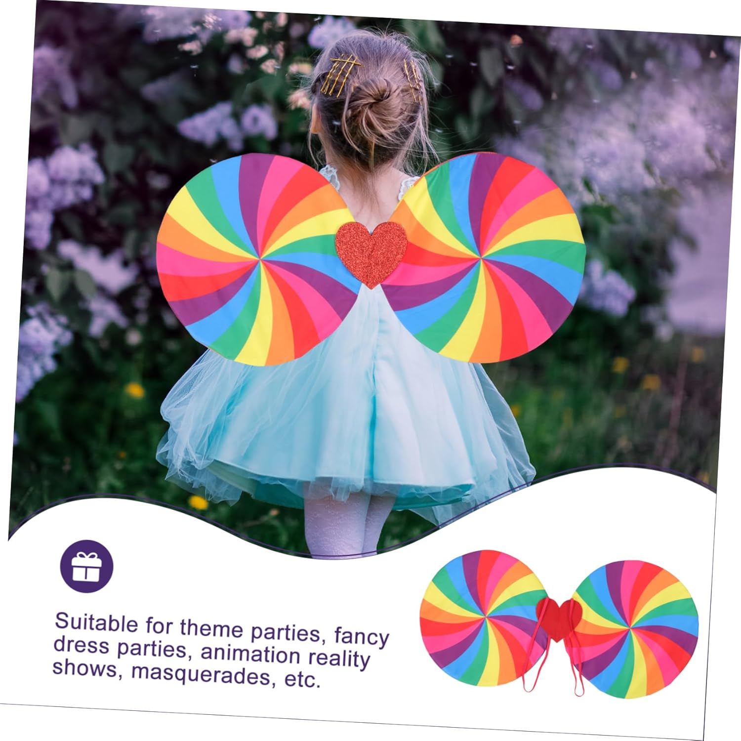 Ornamento per di fata: ottimo per cosplay, festival, spettacoli teatrali e qualsiasi scena in cui travestiti da fata. Ala per cosplay: leggera, facile da indossare e da togliere, può mostrare la tua dolcezza e il tuo fascino in larga misura. arcobaleno per ragazze: un supporto fotografico unico e impressionante, che può rendere le tue foto più affascinanti e attraenti. Forniture per feste fatate: adottando materiale plastico, questa ala arcobaleno è pratica e durevole, con una durata di servizio duratura. arcobaleno per bambini: questa decorazione con di fata è leggera e ha cinghie per indossarla facilmente e l'aspetto è squisito.