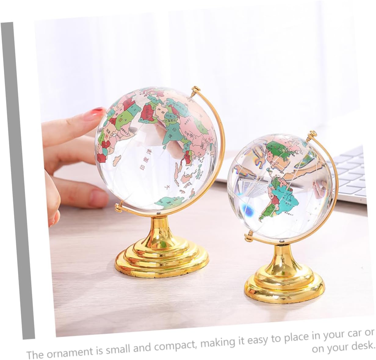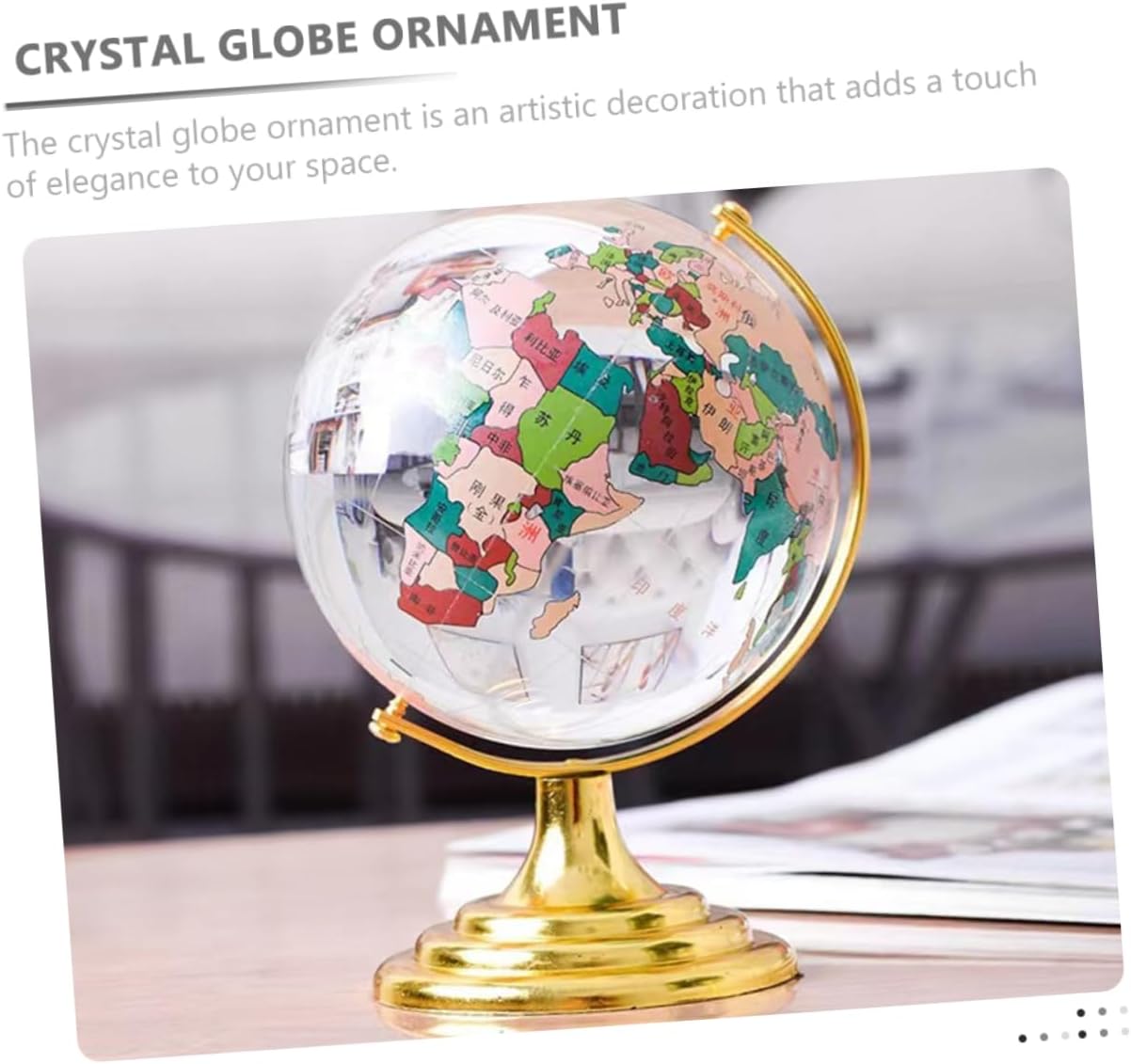 Mappamondo in cristallo da scrivania: l'ornamento in cristallo da scrivania è elegante e raffinato e aggiunge un tocco di raffinatezza al tuo spazio, decorazione a mappamondo per la scrivania Mappamondo rotante da tavolo: la decorazione del globo di cristallo è un'ottima idea per il tuo mappamondo da tavolo Decorazione da scrivania: l'ornamento del globo di cristallo ha una trama elegante e una forte durata, decorazione del globo da scrivania per l'ufficio Mappamondo da tavolo con base: l'ornamento è piccolo e compatto, facile da posizionare in macchina o sulla scrivania, mappamondo di cristallo con base Decorazione del layout della scena: può essere posizionata nell'auto, aggiungendo decorazioni all'auto e migliorando l'esperienza di guida, globo rotante in cristallo