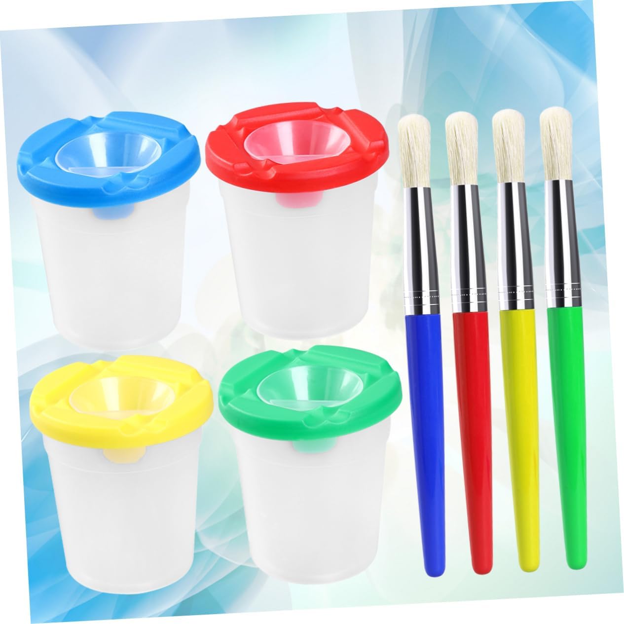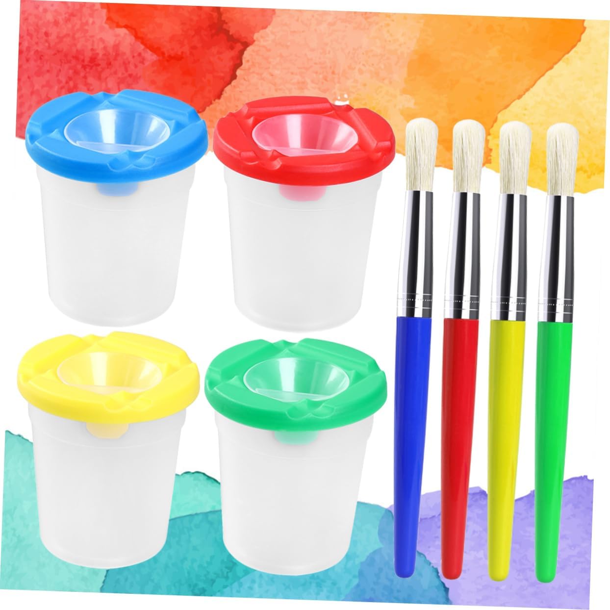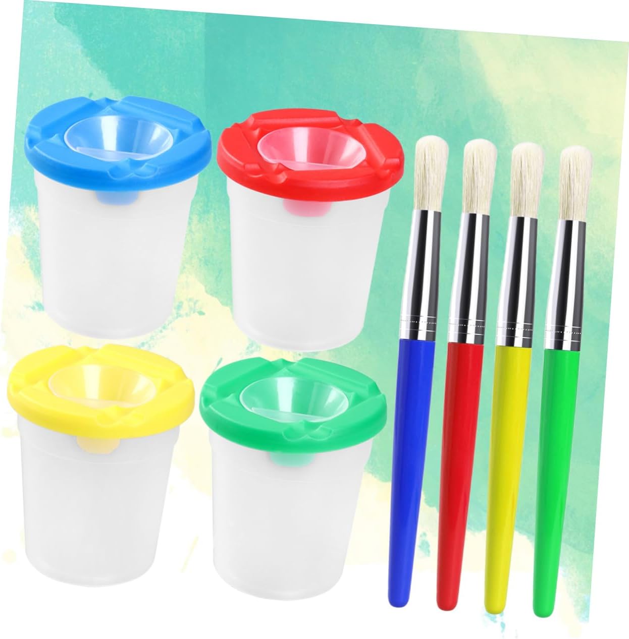 Dimensioni: circa 8 x 9 cm / 31 x 31 x 35 pollici (larghezza x ), pennelli per bambini, tazza per pennello Tazza per dipingere con acqua: manico in plastica e tubo in metallo per una presa e un controllo facili, pennelli per pittura prescolare Pennelli per pittura artigianale: utilizzati principalmente per disegnare, sono adatti a bambini di età pari o superiore a 3 anni, ottimi anche per i principianti che vogliono imparare a disegnare, dipingere con la tazza d'acqua. Tazza per lavaggio con colori a dita - testina con setole di prima qualità per creare bellissimi acquerelli e soddisfare le diverse esigenze di pittura, accessori per pittura Forniture per pittura: 4 pezzi di e 4 pezzi di tazze di pittura in un set offrono ai tuoi bambini un controllo più accurato e versatile della tua pittura e li fanno divertire molto con la pittura, tazza per acquerelli