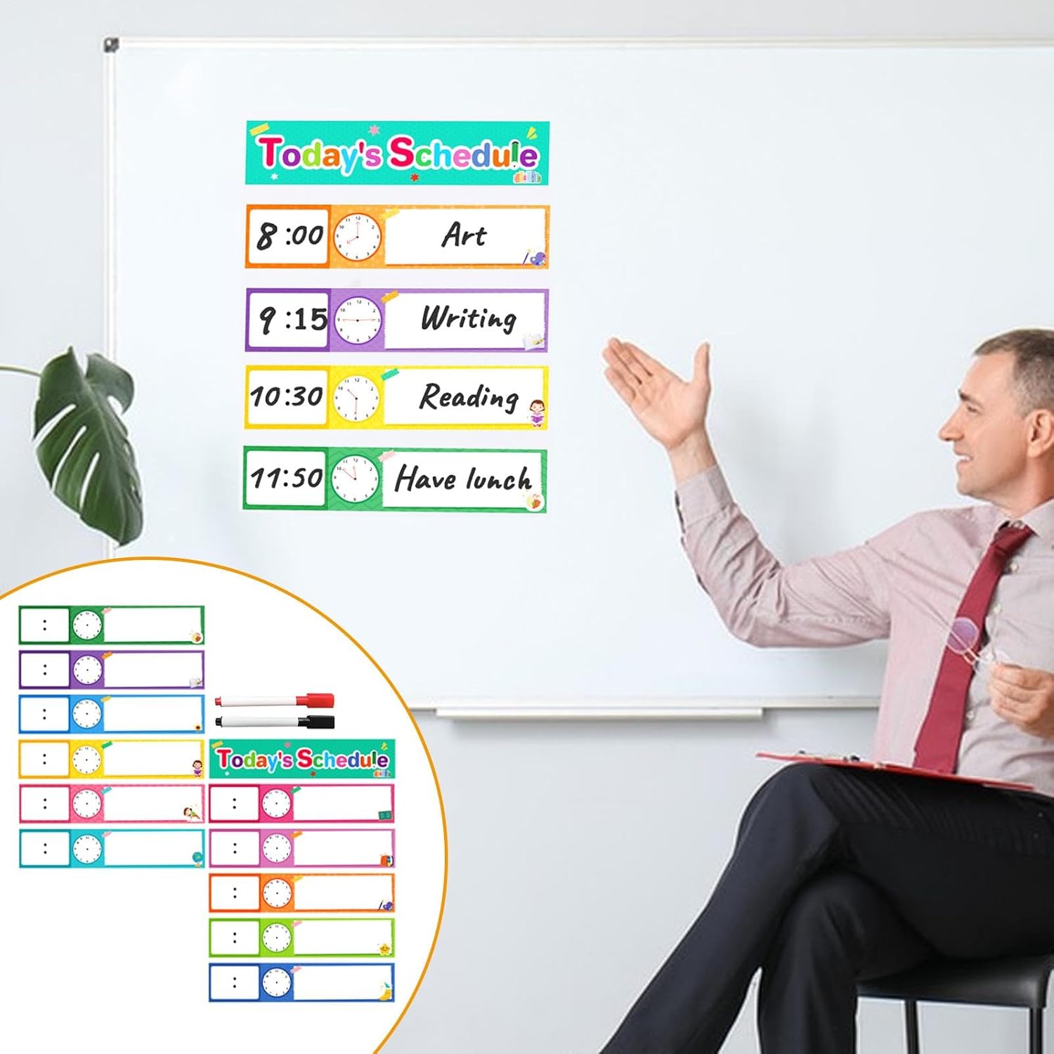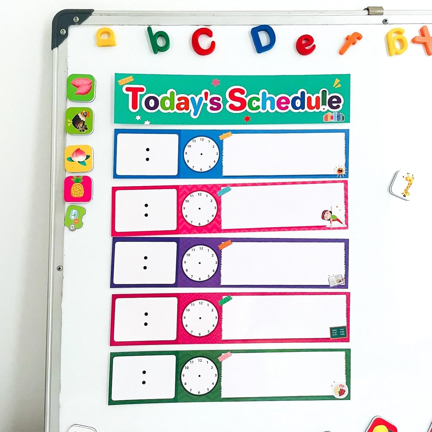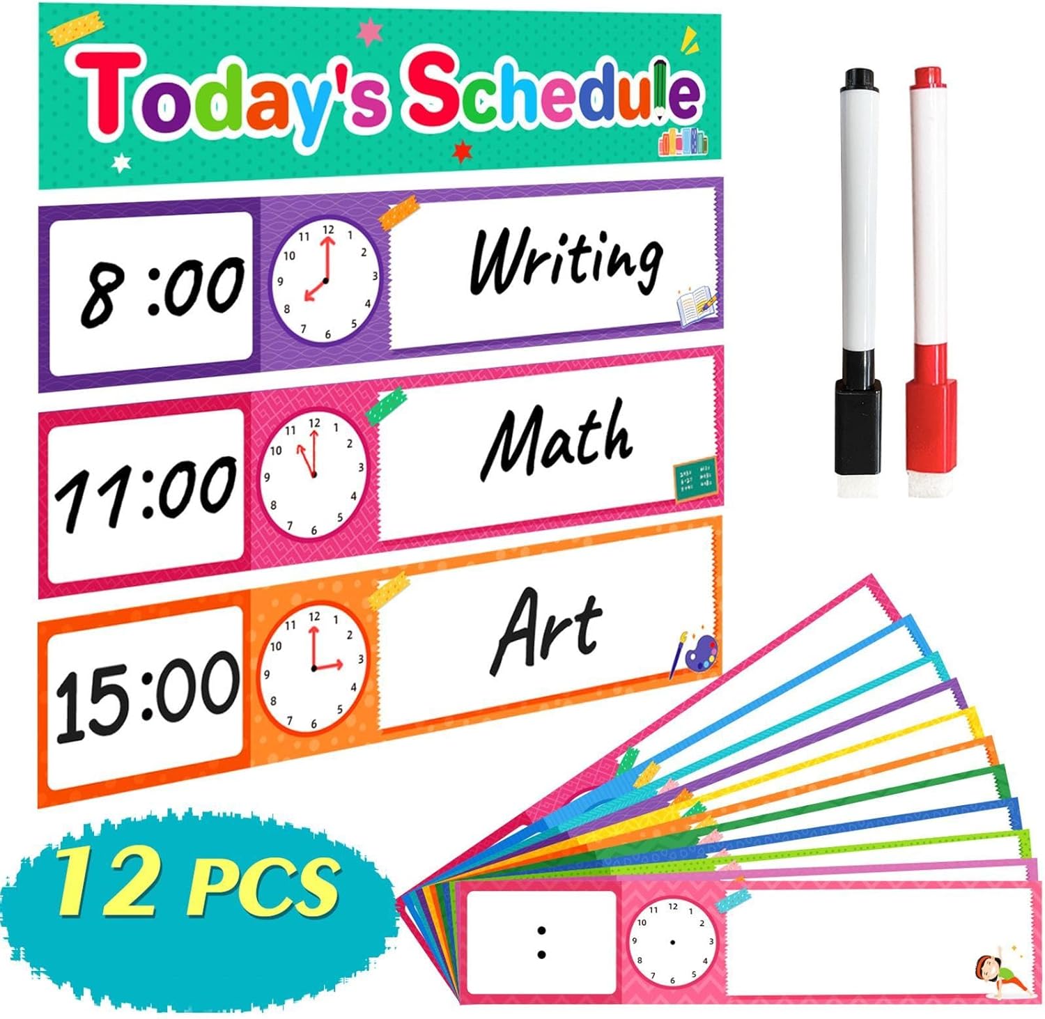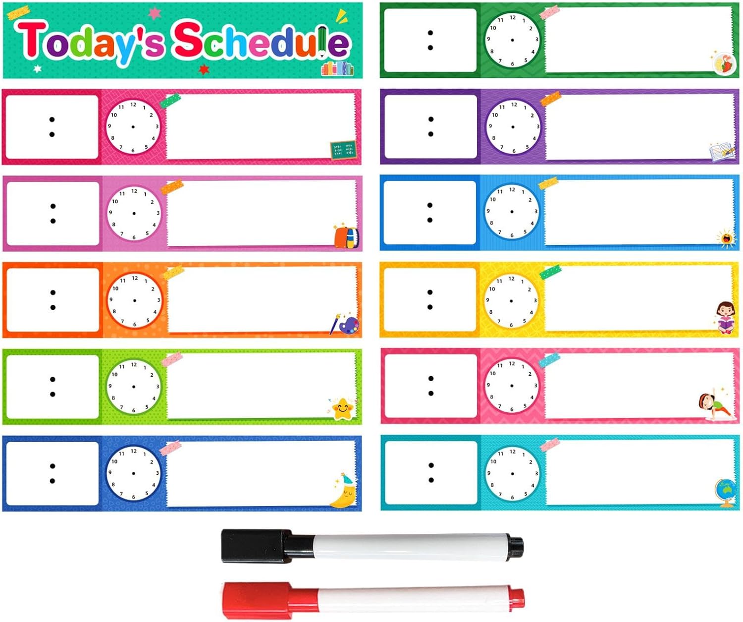 Set completo: ottimizza la tua produttività con la nostra cronologia visiva, che include un set completo di 11 "Schede per programmare" cancellabili a secco, cartellino del titolo "Orario oggi" e 2 penne cancellabili (1 rosso e 1 nero). Ecologico: realizzato con cartoncino di alta qualità e rivestito con una pellicola resistente, il nostro calendario visivo è una scelta rispettosa dell'ambiente. Con una penna cancellabile per un uso ripetuto, puoi strutturare comodamente le tue giornate Organizzazione semplice: dispone di un orologio digitale e analogico a sinistra del programma, strisce di frasi a destra per attività legate alla scrittura e spazio designato per il programma di apprendimento quotidiano. Impulso alla gestione del tempo: incoraggia l'indipendenza e l'ordine, incoraggiandoli a seguire gli orari, pianificare in anticipo e lavorare in modo indipendente per una migliore efficienza in classe. Ottimo regalo: ideale per inviare cure e benedizioni, questo programma visivo è un regalo pratico e premuroso, che garantisce sorprese e gioia quotidiane quando viene consegnato a parenti e amici come regalo di Natale.