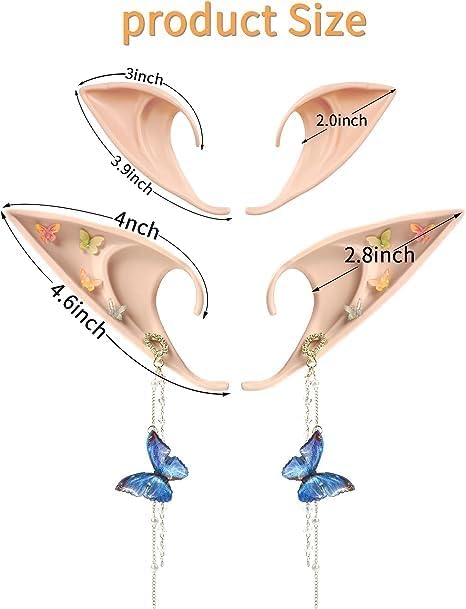 ★ Cosplay Orecchie da Elfo: incluso 1 paio di orecchie da elfo grandi, 1 paio di orecchie da elfo piccole, 1 paio di orecchini con nappe a farfalla e 1 piatto di orecchini a farfalla. Si adatta alla maggior parte delle persone. ★ Alta Qualità: le Orecchie da Elfo sono realizzate in materiale di alta qualità, morbido e non facile da deformare, puoi aggiungere i tuoi orecchini alle orecchie da elfo per mostrare la tua unicità. ★ Facile da Indossare: può essere appeso direttamente all'orecchio, se sembra un po' allentato, puoi applicare la colla per ciglia o la doppia colla sulla radice dell'orecchio per renderlo più solido, puoi scegliere diversi colori di orecchie in base ai diversi stili di abbigliamento (la colla non è inclusa nella confezione) . ★ Riutilizzabile e Fai-da-te: puoi utilizzare cosmetici per cambiare il colore delle orecchie da elfo o aggiungere i tuoi motivi preferiti, come fondotinta o altri cosmetici, lavare con acqua o detergente per il viso dopo l'uso. riutilizzabile. ★ Ampia Gamma di Usi: molto adatto per cosplay, feste di Halloween, feste al bar, le orecchie da elfo più realistiche, aumenta il tuo fascino, ti rende più attraente tra la folla, può anche essere abbinato a fasce per capelli con ghirlande, fasce per capelli a foglie, fasce per capelli da diavolo , fasce per angeli, denti da vampiro e altro ancora.