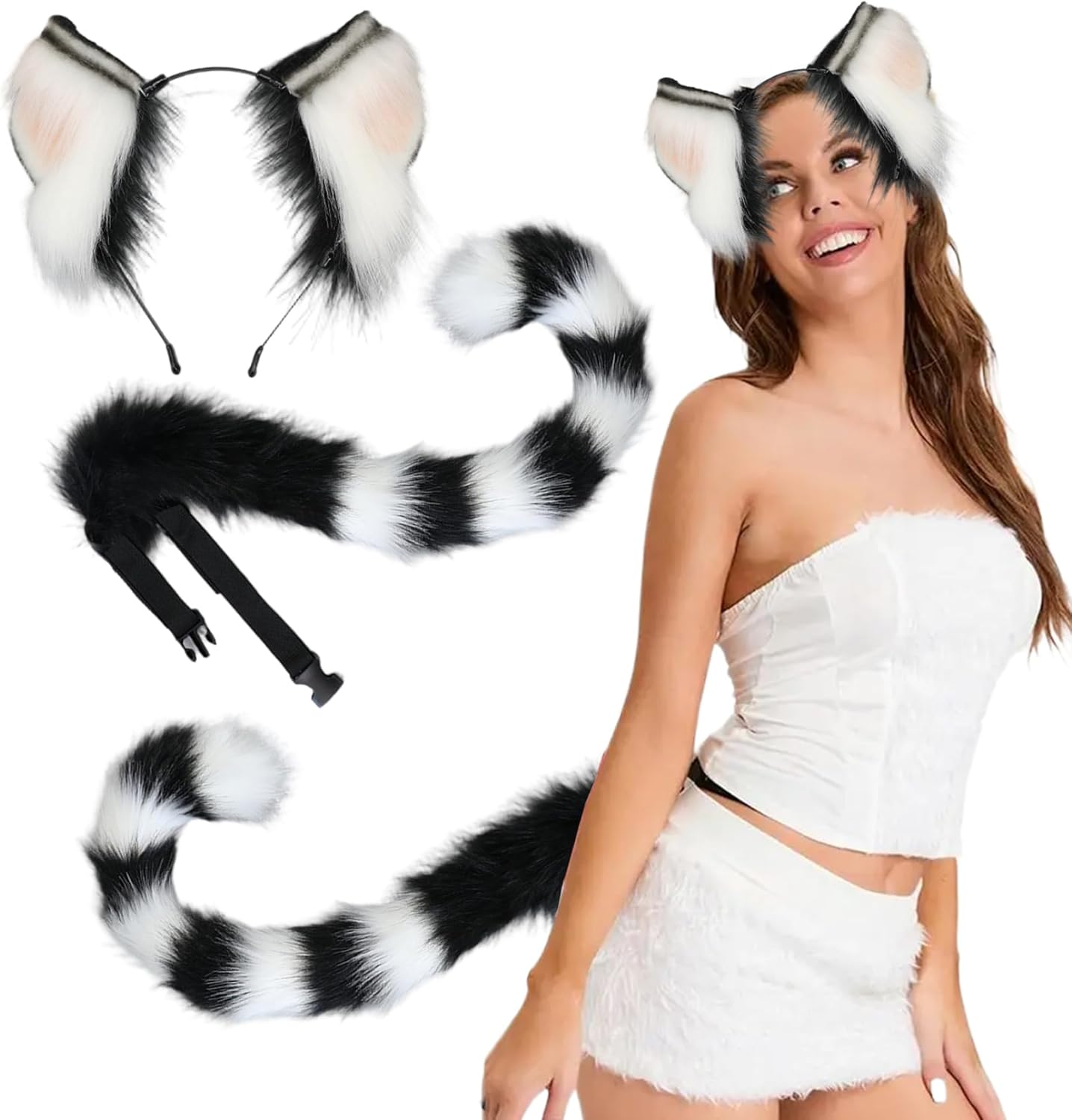 Perfetto per molteplici occasioni: ideale per feste di Halloween, eventi cosplay, servizi fotografici a tema o divertenti occasioni di travestimento, questo set aggiunge fascino e carattere istantanei a qualsiasi outfit o costume. Vestibilità comoda e regolabile: dotato di una fascia elastica e di una cintura regolabile per la coda, questo set garantisce una vestibilità sicura e confortevole per tutte le dimensioni della testa e della vita, permettendoti di indossarlo tutto il giorno senza disagio. Autentico look felino: la nostra fascia elastica pelosa con orecchie di gatto e la coda bianca e nera abbinata creano un aspetto da gatto realistico e adorabile che dà vita al tuo cosplay o costume senza sforzo. Materiali di alta qualità: realizzati in morbida pelliccia sintetica morbida, delicata al tatto, affidabile e di facile manutenzione, che garantisce che le orecchie e la coda del tuo gatto rimangano soffici e vibranti anche dopo l'usura ripetuta. Set completo di costumi: questo set di orecchie e coda abbinati è una soluzione conveniente per gli amanti dei costumi, eliminando la necessità di acquistare accessori separati e aiutandoti a ottenere un look coerente senza sforzo.