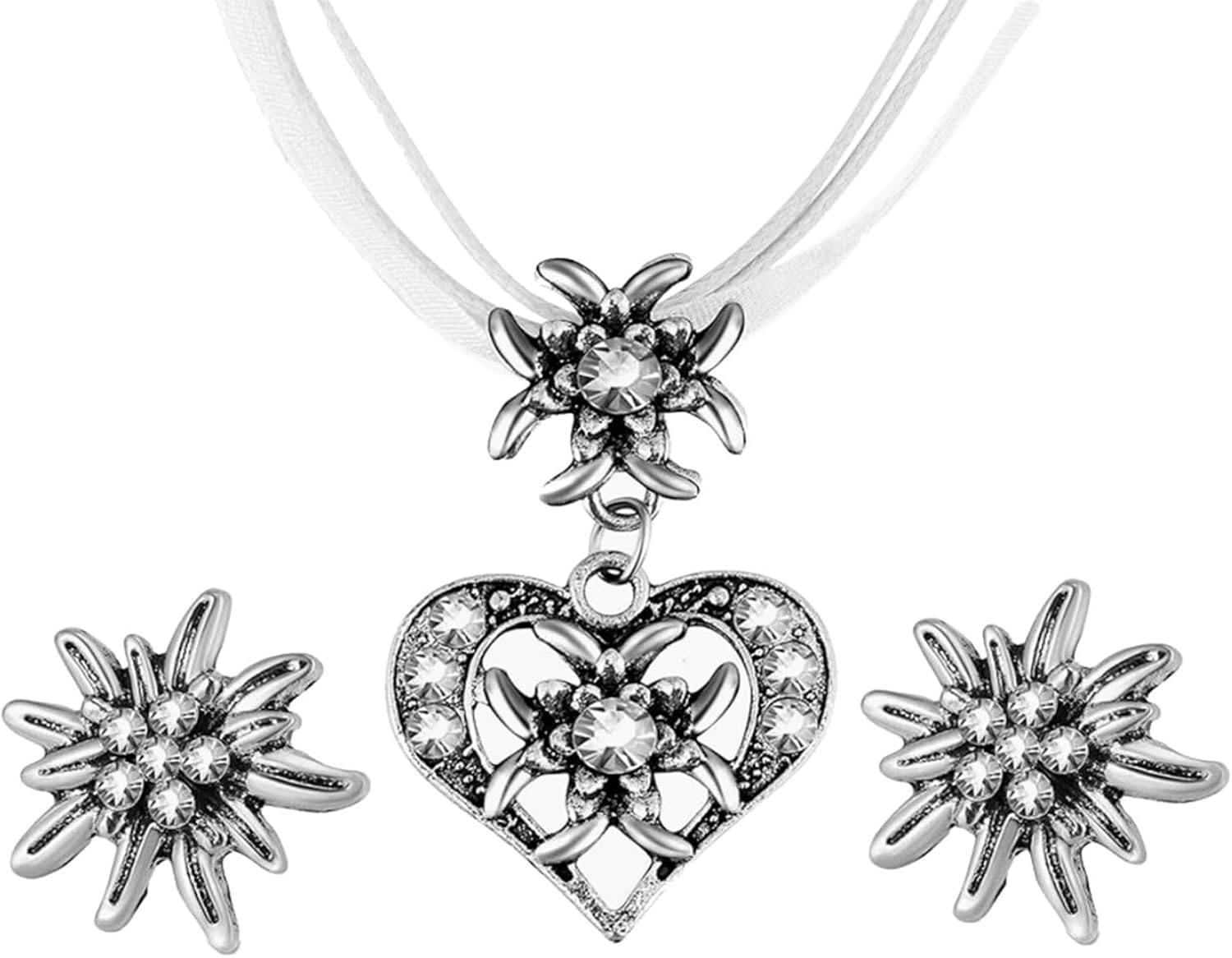 Orecchini a ciondolo a cuore a cuore alla Orecchini Edelweiss impostati per girocollo del corda nastro per donne Oktoberfest Party Banchets Gioielli Caratteristiche: Nuova zecca e qualità Aggiungi un tocco fascino ai tuoi abiti con questo set gioielli con un ciondolo cuore e collana Edelweiss. Realizzato in materiale in lega qualità raffinata, questo set gioielli in costume è progettato per un uso duraturo e un abbigliamento comodo. Perfetto per le donne che apprezzano i design unici e vogliono rimanere alla in qualsiasi ambiente per usura quotidiana o occasioni speciali, questo set gioielli aggiunge un tocco eleganza tuo look tuo costume con questa collana e orecchini accattivanti, perfetti per migliorare tuo look del festival della birra. Specifiche: Materiale: lega Lunghezza: 40+8 cm/15,75+3.15in Colore: come scegliere. Quantità: 1 set pacchetto include: Collana 1pc x Orecchini 1PAIR X. Nota: prega consentire l'errore 0-1 cm a causa della misurazione manuale. Assicurati non preoccuparti prima un'offerta. A causa della differenza tra diversi monitor, l'immagine potrebbe non riflettere colore effettivo articolo
