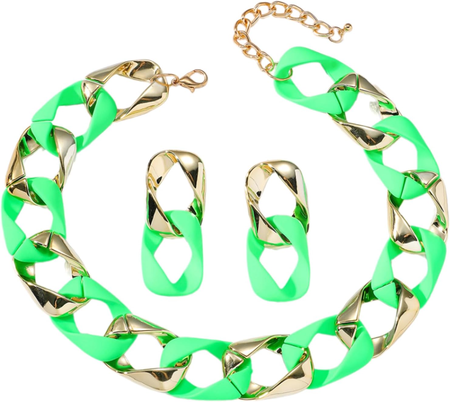 Orecchini alla collegamento Collana a catena set gioielli geometrici collana giunzione presente per donne amanti della Caratteristiche Elevando i tuoi stili con i nostri orecchini colorati e la collana, progettati per aggiungere dichiarazione a qualsiasi outfit. Realizzato in resina e lega, questo set presenta design geometrici unici che sono comodi per l'abbigliamento a lungo termine. Perfetto per le donne giovani che abbraccia l'individualità e hanno propensione alle tendenze della Adatto a varie occasioni come spostamenti quotidiani, feste, date e celebrazioni festive, migliorando senza sforzo tuo aspetto generale. Questo set gioielli punk hip hop fonde perfettamente colori vibranti con estetica, rendendolo un accessorio importante per coloro che cercano distinguersi. Specifiche: Texture: resina, lega Dimensione della collana: 16,93+3.15 pollici (43+8cm) Dimensione orecchio 0.94x2,28 pollici (2,4x5,8 cm pacchetto include: 1x collana Orecchini da 1 paio Nota: prega consentire errori 1-2 cm dovuti alla misurazione manuale. A causa delle differenze tra i diversi monitor, l'immagine potrebbe non riflettere colore effettivo dall'articolo.