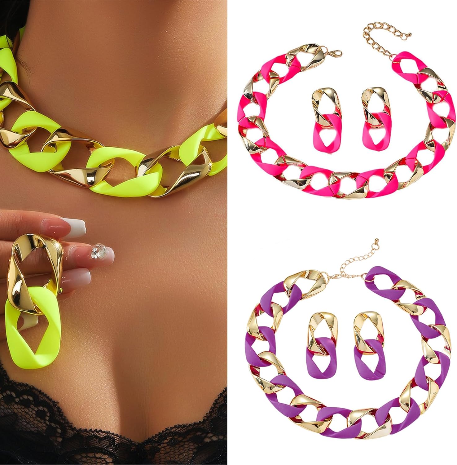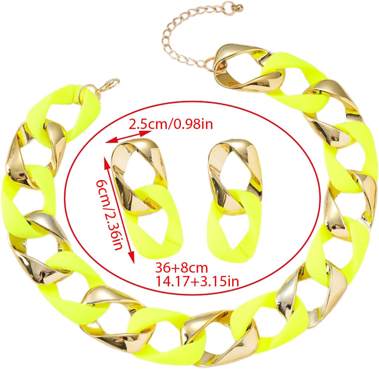 Orecchini alla collegamento Collana a catena set gioielli geometrici collana giunzione presente per donne amanti della Caratteristiche Elevando i tuoi stili con i nostri orecchini colorati e la collana, progettati per aggiungere dichiarazione a qualsiasi outfit. Realizzato in resina e lega, questo set presenta design geometrici unici che sono comodi per l'abbigliamento a lungo termine. Perfetto per le donne giovani che abbraccia l'individualità e hanno propensione alle tendenze della Adatto a varie occasioni come spostamenti quotidiani, feste, date e celebrazioni festive, migliorando senza sforzo tuo aspetto generale. Questo set gioielli punk hip hop fonde perfettamente colori vibranti con estetica, rendendolo un accessorio importante per coloro che cercano distinguersi. Specifiche: Texture: resina, lega Dimensione della collana: 16,93+3.15 pollici (43+8cm) Dimensione orecchio 0.94x2,28 pollici (2,4x5,8 cm pacchetto include: 1x collana Orecchini da 1 paio Nota: prega consentire errori 1-2 cm dovuti alla misurazione manuale. A causa delle differenze tra i diversi monitor, l'immagine potrebbe non riflettere colore effettivo dall'articolo.