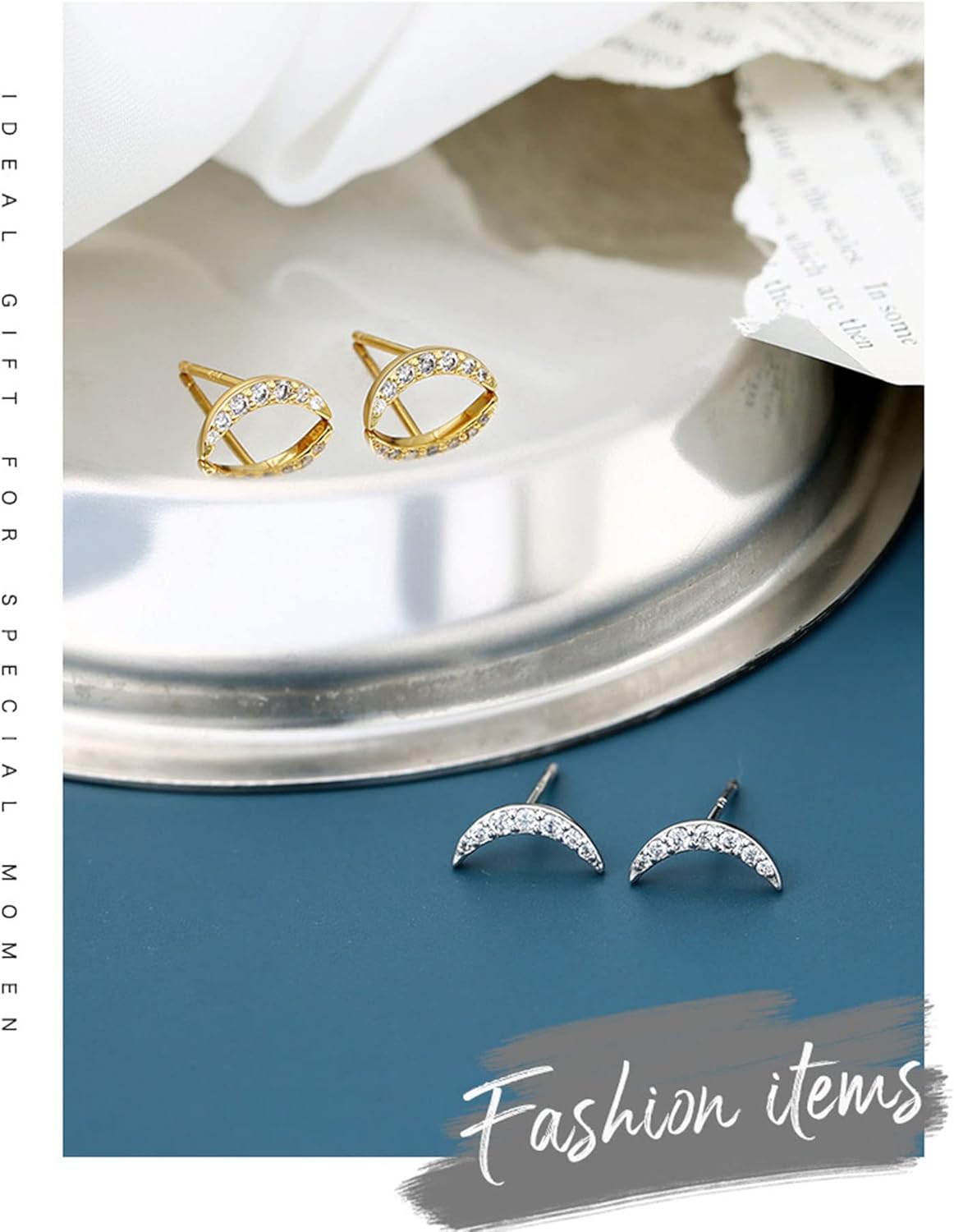 Orecchini da donna Orecchini a lobo Orecchini a lobo in argento sterling Orecchini da donna con aquilone trafitto Orecchini a lobo con zircone a forma di falce di luna