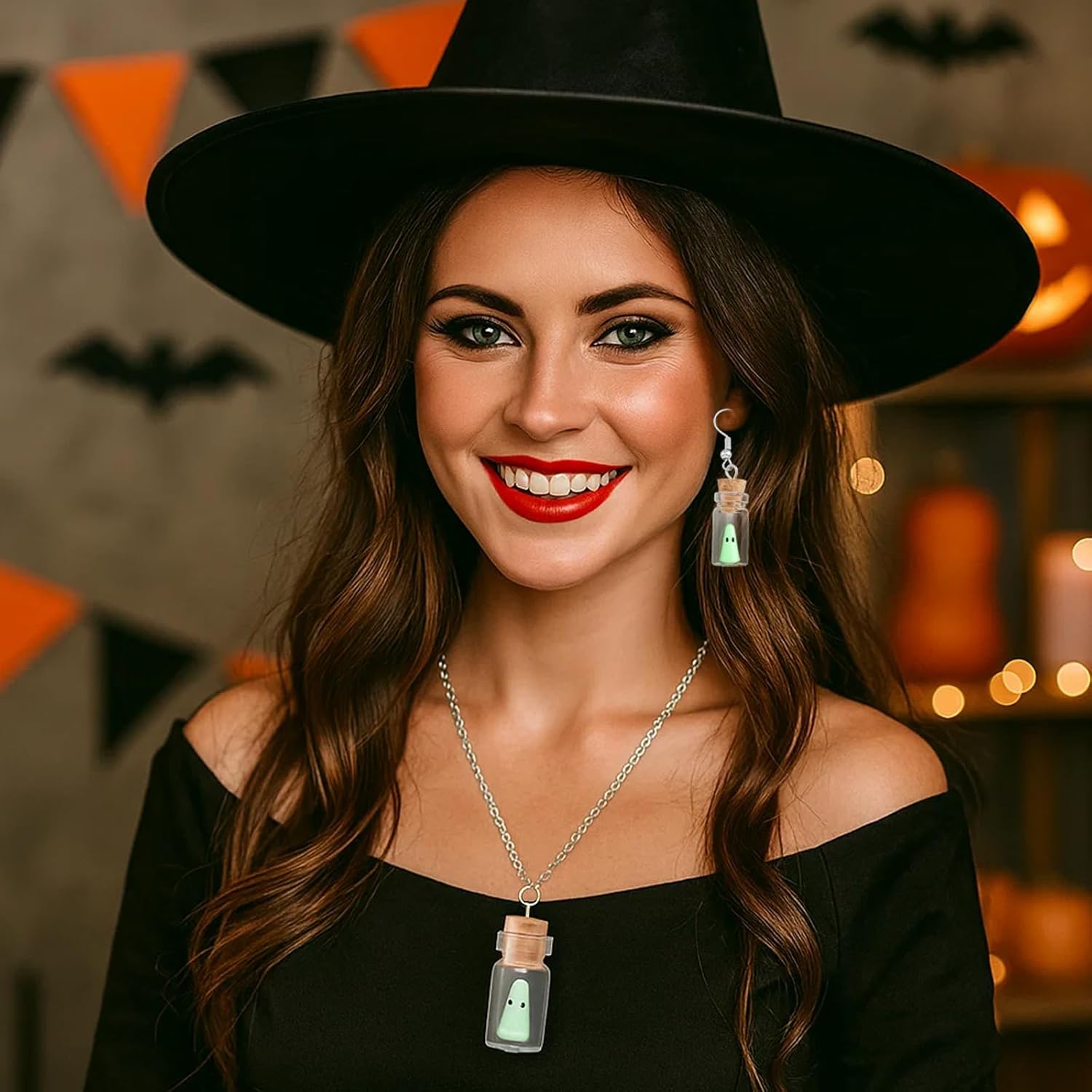 Migliora il tuo look di Halloween con questo splendido set di 3 pezzi di orecchini gotici e una collana abbinata. Gli ornamenti fantasma si illuminano al buio, aggiungendo un tocco misterioso e spettrale al tuo outfit. Realizzati in vetro di alta qualità, questi accessori sono resistenti ed eleganti, perfetti per ogni occasione di Halloween. Che tu stia partecipando a una festa o semplicemente vuoi distinguerti, questo set è un must per il tuo guardaroba di Halloween. La funzione fosforescente ti assicura di essere al centro dell'attenzione in qualsiasi evento di Halloween. Gli intricati disegni fantasma aggiungono un tocco di eleganza, rendendo questi accessori adatti sia per abiti casual che formali di Halloween. Il set è anche un ottimo regalo per amici e familiari che amano Halloween e la moda gotica. Con il suo design unico e materiali di alta qualità, questo set di orecchini e collana di Halloween è un'aggiunta perfetta alla tua collezione di accessori. Gli ornamenti fantasma bagliore nel buio lo rendono una scelta divertente ed elegante per qualsiasi celebrazione di Halloween.