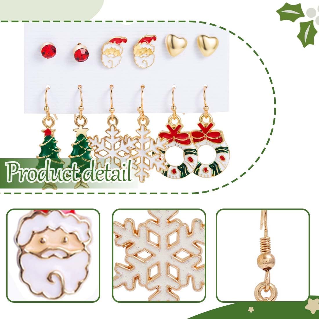 MATERIALE DI ALTA QUALITÀ: Gli orecchini sono realizzati in lega e progettati con elementi classici che non passeranno mai di moda e sono perfetti per Natale o San Valentino. Design alla moda: il set di orecchini natalizi è progettato con smalto e ha una varietà di stili tra cui scegliere, adatti a diverse occasioni. Classico e divertente: gli orecchini contenenti motivi di alberi di Natale, Babbo Natale, fiocchi di neve, ecc., hanno un design unico e aggiungono atmosfera festosa. Bomboniere perfette per le vacanze: gli orecchini natalizi da donna offrono uno stile elegante e giocoso che è un ottimo regalo per feste o vacanze. Adatto tutto l'anno: adatto a tutte le stagioni, particolarmente adatto per le feste di Natale. È un regalo premuroso per parenti e amici.