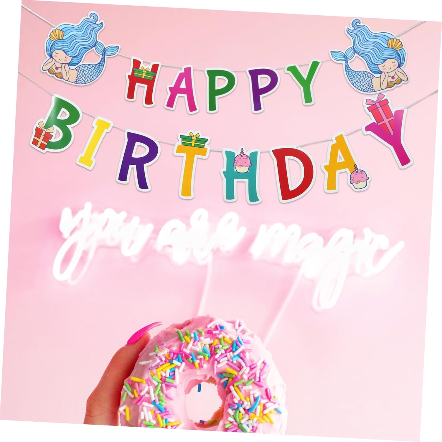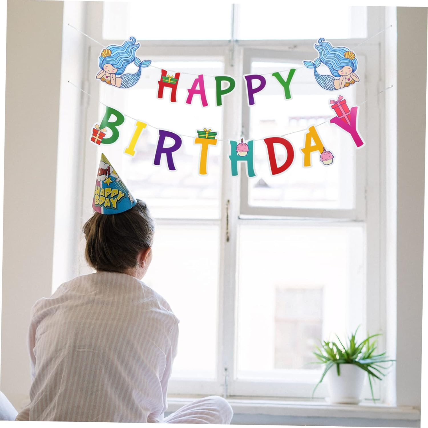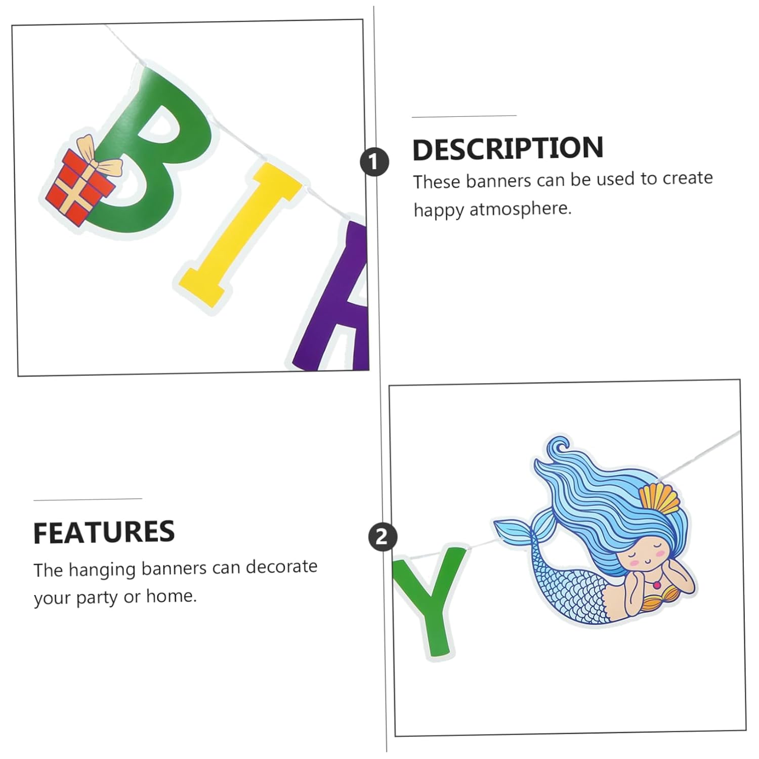 Ghirlande decorative pendenti: simpatico motivo a sirena a forma di cartone animato, bellissimo e adorabile, arredamento per feste a tema sirena. Bandierine per torta di compleanno: realizzate in materiale cartaceo di alta qualità e decorazioni sicure per le feste di compleanno. Banner di compleanno a sirena: queste bandiere sospese con pregevole fattura e dettagli squisiti, possono decorare la tua festa e lasciare un'impressione profonda su di te, arredamento marino. Banner per feste per shower: un semplice elemento per aggiungere una vista e decorazioni alla tua festa, striscioni per feste. Banner fotografico: questi banner possono essere utilizzati per creare un'atmosfera , bomboniere per feste di compleanno.