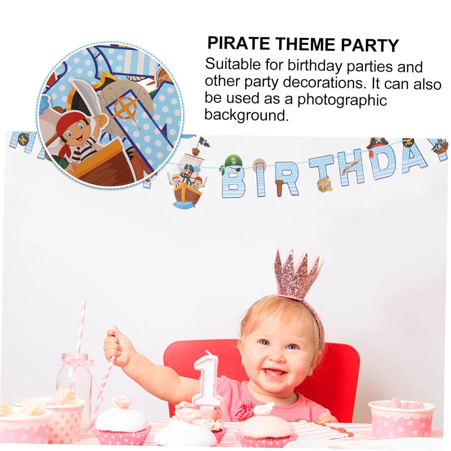 Bandiera di compleanno: crea uno sfondo divertente e divertente per la tua festa, ecc., striscione di carta con tema pirata. Accessori per foto di compleanno: materiale cartaceo di alta qualità e decorazioni leggere per bambini. Bandiere di compleanno da appendere: facili da riporre e posizionare, fantastici oggetti di scena per foto, cartello di compleanno da appendere. Banner per feste sospeso - Adatto per feste di compleanno, casa per aggiungere divertimento e colore alla festa, pirati. A tema pirata: appositamente progettato per compleanni, feste a tema pirata, decorazioni per la casa, bandiere pirata.