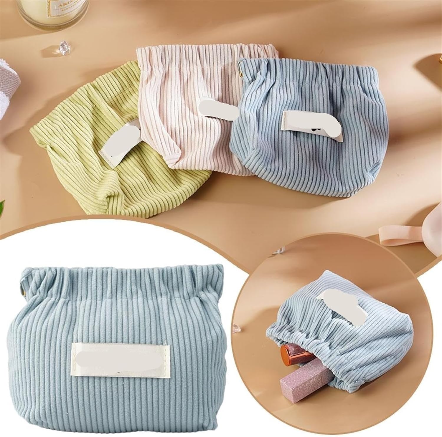 Borsa per il trucco compatta con ottima sensazione al tatto, comoda, morbida e liscia, può ospitare cuffie, cavi dati, rossetto, chiavi, monete, ecc. Ed è una borsa per il trucco da donna per tutte le stagioni con squisite esigenze di design in velluto a coste. Questa borsa organizer è dotata di un'elegante chiusura a pizzico, puoi facilmente raccogliere e riporre gli oggetti con una mano e il materiale non si deforma facilmente. Questa borsa portaoggetti è perfetta per riporre fermagli per capelli, gioielli, bastoncini di cotone, rossetto, occhiali e altri piccoli oggetti. La custodia elastica in velluto a coste è perfetta per la scrivania, l'auto, la borsa e la borsa da viaggio per mantenere tutto organizzato. Questo mini organizer in velluto a coste con chiusura a scatto è un regalo pratico per le donne. Ogni ragazza ha bisogno di un organizzatore di trucchi così sorprendente. Questa borsa organizer è molto facile da pulire, necessita solo di acqua per completare la pulizia, supporta il lavaggio in lavatrice e il lavaggio a mano, ma si consiglia il lavaggio a mano perché il lavaggio a mano può prolungarne la durata.