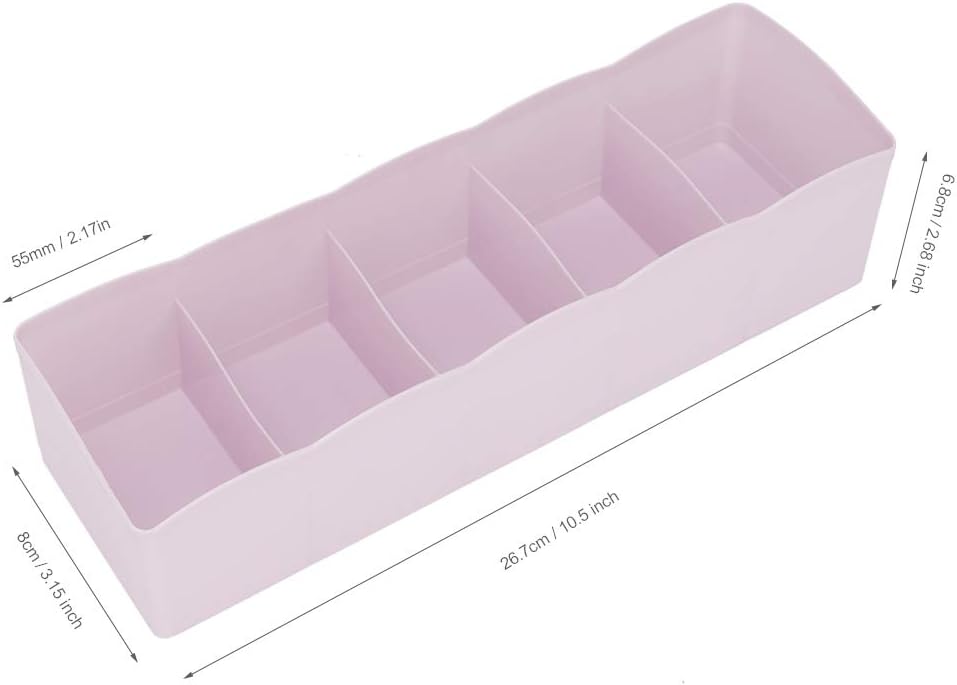 [Soluzione di archiviazione versatile] Questo organizzatore di cassetti in plastica è progettato per adattarsi perfettamente a quasi tutti i guardaroba o un armadio. Il suo design compatto e semplice lo rende una soluzione di archiviazione perfetta per una varietà di oggetti tra cui crash e sciarpe per asciugamani per reggiseni per biancheria intima. Mantieni il tuo spazio abitativo pulito e ben organizzato con questo versatile organizzatore. [Materiale di qualità premium] Realizzato in plastica ecologica di alta qualità Questo organizzatore di cassetti è resistente e affidabile. È costruito per resistere all'uso quotidiano mantenendo la sua forma e funzionalità. La costruzione robusta garantisce prestazioni di lunga durata rendendolo un investimento utile per le esigenze dell'organizzazione domestica. [Facile da pulire e mantenere] la pulizia di questo organizzatore di cassetti è un gioco da ragazzi. Usa semplicemente sapone lieto e acqua calda per mantenerlo fresco e nuovo. La superficie liscia impedisce l'accumulo di sporcizia e polvere garantendo un ambiente di conservazione igienico per le cose. La manutenzione è minima, quindi puoi concentrarti sul mantenimento del tuo spazio in ordine. [Design di salvamento spaziale] Massimizzare lo spazio del cassetto con questo organizzatore abilmente progettato. Il layout a 5 griglia consente di separare e classificare i tuoi articoli in modo efficiente. Ogni griglia misura 55 mm x 2.17in fornendo ampio spazio per oggetti di piccole e medie dimensioni. Dì addio ai cassetti ingombra e ciao a un guardaroba ben organizzato. [Multiple Color Options] Disponibile in una varietà di colori vibranti tra cui viola e giallo blu rosa Questo organizzatore di cassetti può abbinare qualsiasi stile di arredamento. Scegli la tua tonalità preferita per aggiungere un tocco di colore al tuo spazio di archiviazione. Il design attraente non solo ha scopo pratico, ma migliora anche il fascino estetico della tua casa.