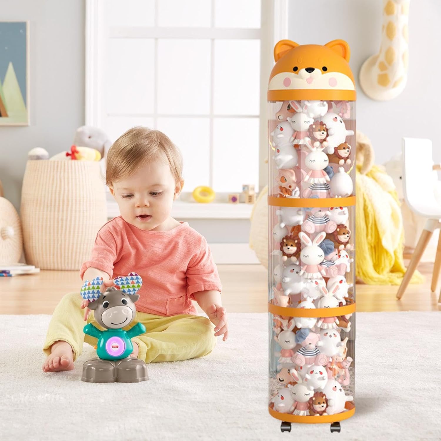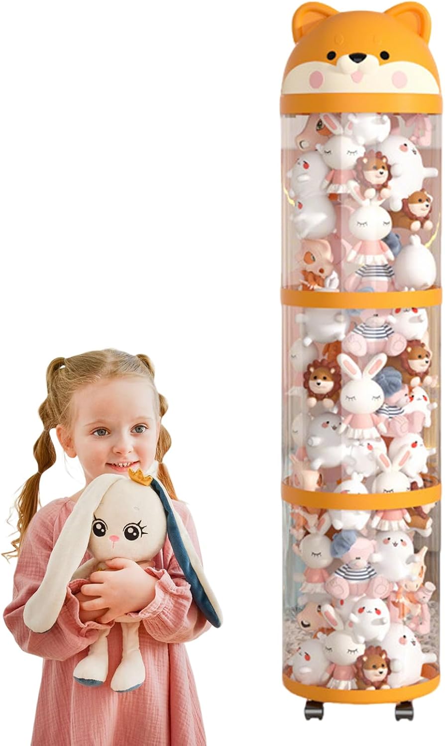 Design pratico: elevata capacità di archiviazione e dimensioni degli scomparti studiate creano un sistema di impilamento intelligente, i giocattoli di peluche salvaspazio e ben conservati per aree di gioco organizzate a lungo termine. Organizzazione durevole: la struttura stabile con materiale trasparente previene deformazioni o rotture, offre una conservazione inodore per i giocattoli di peluche e li mantiene puliti a lungo termine Comodo da riporre: il coperchio a forma di cane consente l'accesso dall'alto e dal lato, mentre il meccanismo scorrevole offre una grande apertura per semplificare notevolmente la rimozione e la conservazione dei peluche. Funzione di rotolamento facile: con ruote girevoli per una scorrevolezza silenziosa e un movimento fluido. Ideale per la cameretta dei bambini, il cestino può essere facilmente spostato o riposizionato nella stanza. Versatile sistema di archiviazione: con scomparti interni regolabili e scomparti sicuri, garantisce una tenuta stabile con un utilizzo ottimale dello spazio per tutte le esigenze di conservazione dei peluche.