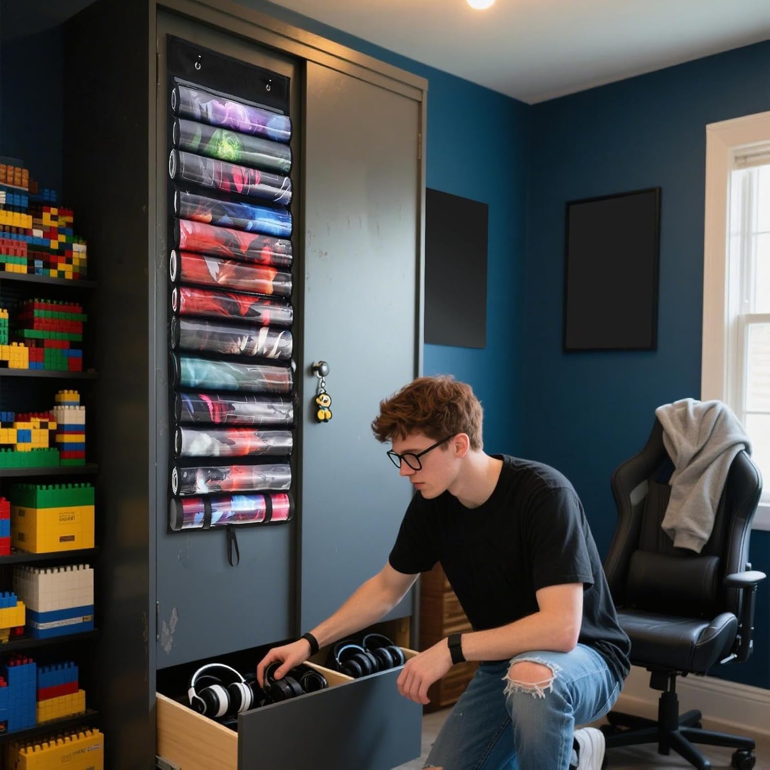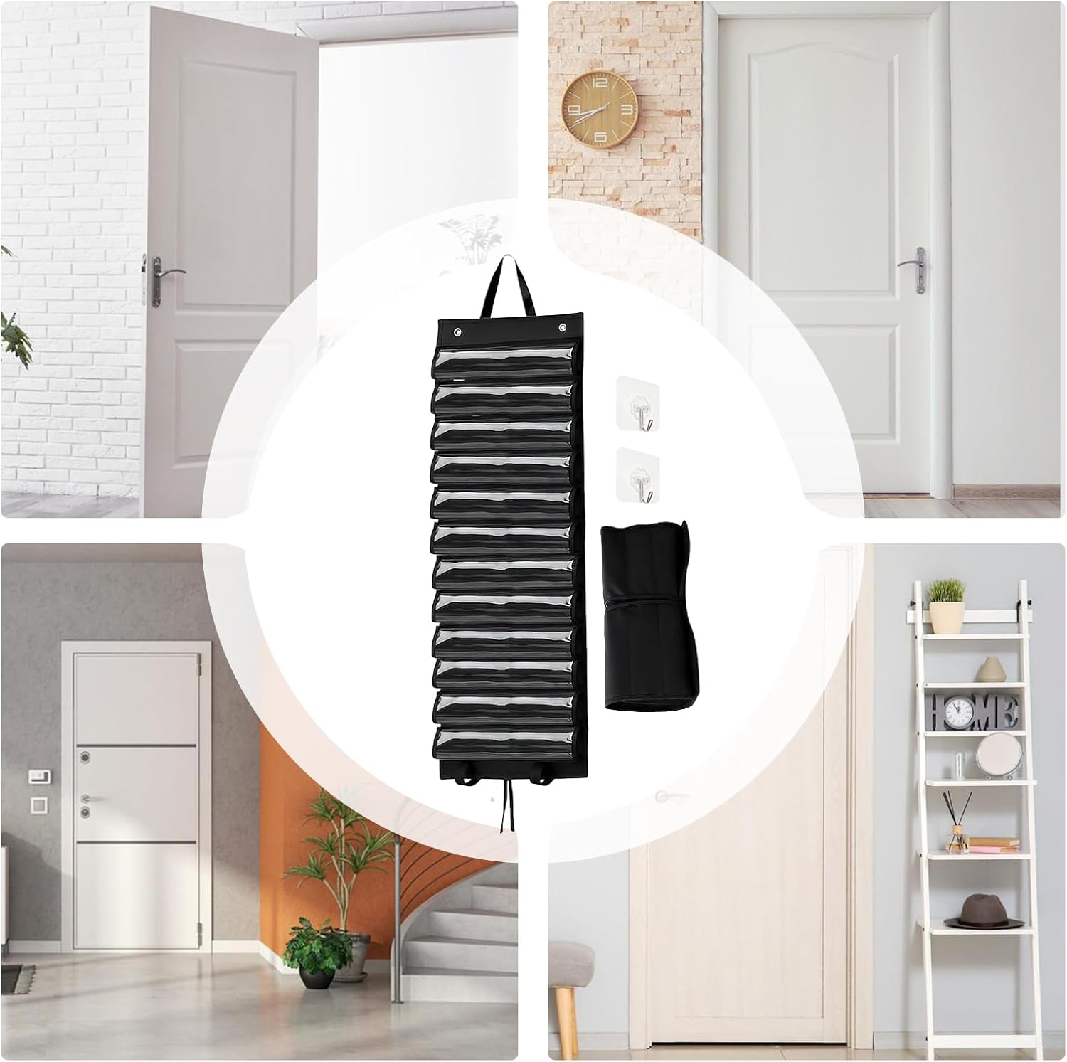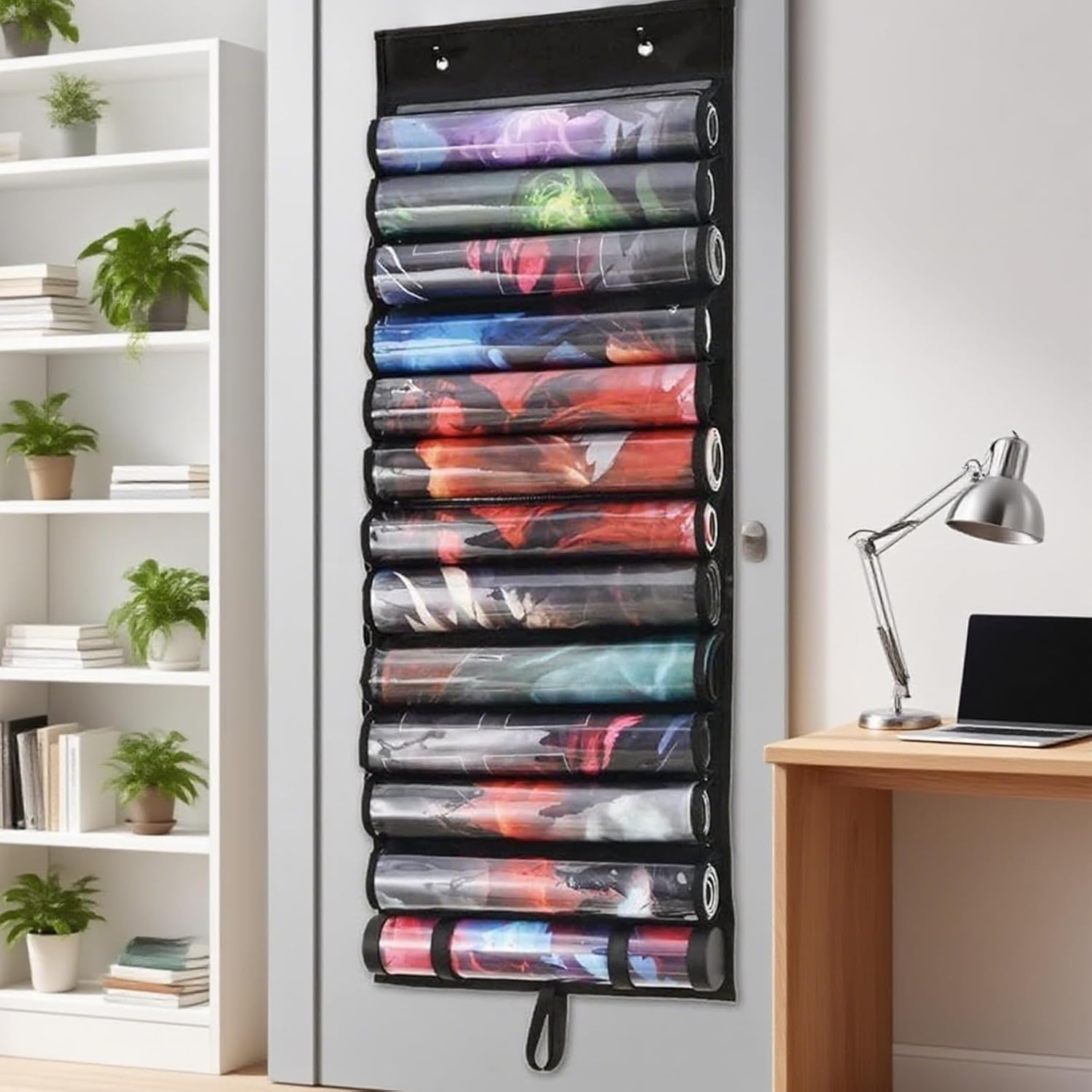 Durevolezza: materiali resistenti all'umidità come il tessuto Oxford e il rivestimento in PVC proteggono efficacemente da polvere, graffi e sporco. Mantiene la pulizia dei tappetini in modo affidabile e sostenibile. Guadagno spazio: verticale o a parete con doppio gancio per appendere ottimizza la superficie della scrivania e offre un'organizzazione visivamente accattivante per la tua area di gioco Conservazione sicura: con una base larga e rinforzata, questo supporto per tappetini da gioco organizza gli accessori da gioco in modo ordinato e previene il ribaltamento e la deformazione a lungo termine per una stabilità duratura. Ampio spazio di archiviazione: il supporto tubolare con tredici divisori può contenere in modo sicuro dodici tappetini regolari e un tappetino speciale, ideale per classificare diverse collezioni di accessori da gioco Posizionamento sicuro: i nastri adesivi regolabili eliminano i movimenti in stoccaggio, creano una chiara suddivisione dello spazio per un facile accesso agli accessori di gioco con supporto stabile
