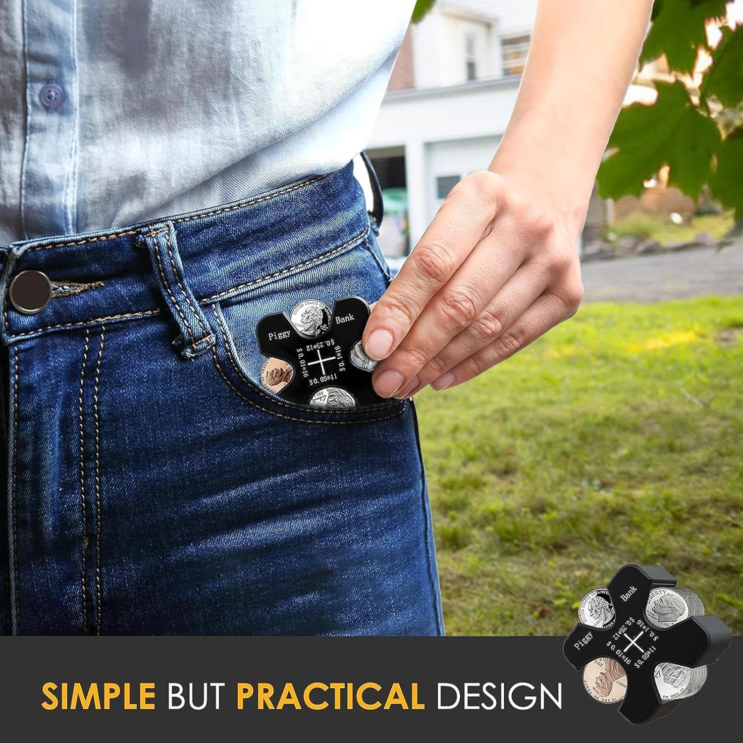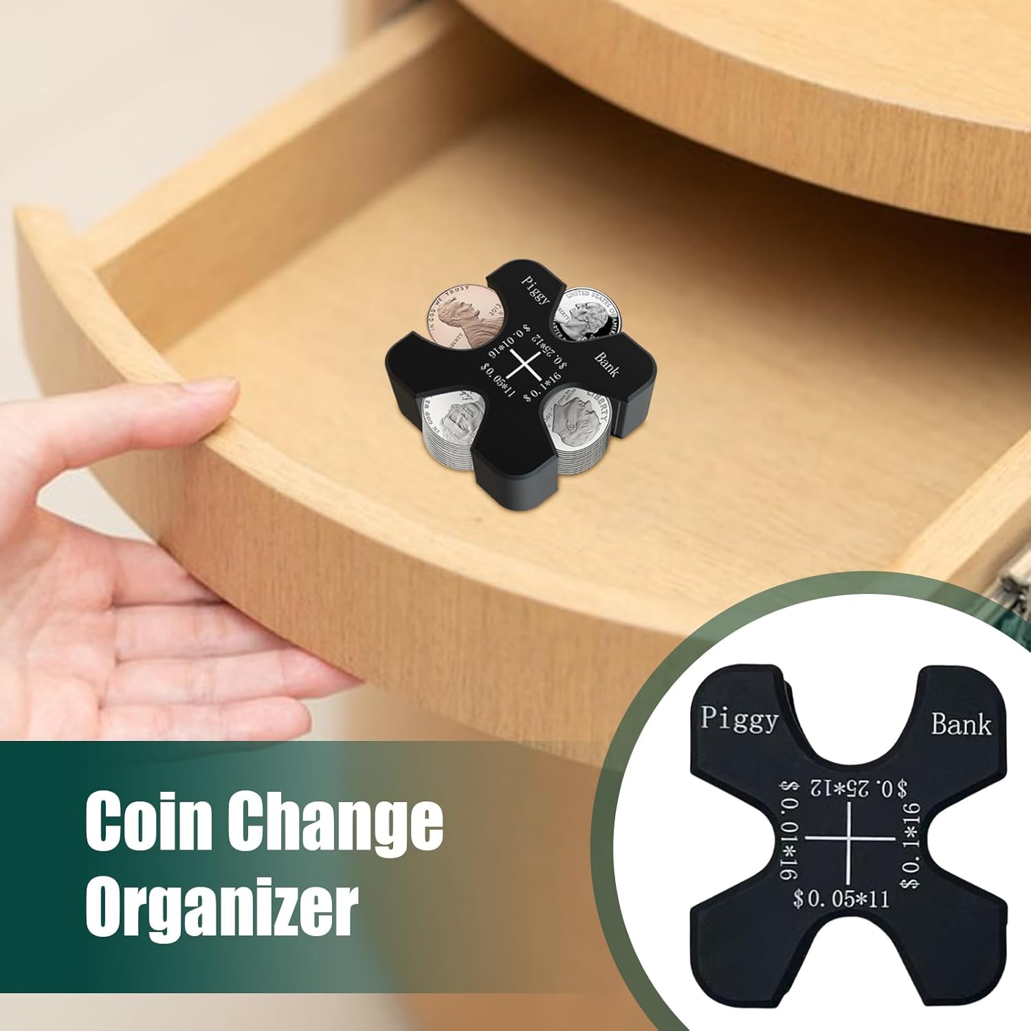 Silent Ride: realizzato in silicone, il trucco flessibile di questo portamonete garantisce un inserimento e una rimozione fluidi della moneta senza danneggiare la struttura o la forma del supporto. Il materiale soft-touch elimina i rumori durante la guida. Comodo organizer per monete: ordina in modo efficiente la tua moneta con partizioni chiaramente etichettate, rendendo facile visualizzare il tipo, il valore e la posizione delle monete. Completa le transazioni in modo sicuro e rapido con il nostro portamonete per auto, garantendo una gestione e una conservazione ottimali delle monete. Accesso intuitivo: progettato pensando alla comodità, ti consente di accedere facilmente alla tua moneta; il layout intuitivo significa senza più scavare in tasche o portabicchieri, basta guardare verso il basso e puoi prendere rapidamente la moneta di cui hai bisogno. Ampia gamma di usi: evita il disordine in auto e in casa con questo portamonete. Accedi facilmente a varie denominazioni in scenari multiuso. Evita che le monete sfuse occupino spazio nelle console e nei vani portaoggetti. Ampio spazio: con una capacità fino a 55 monete dure, il nostro portamonete per auto ti assicura di non dover mai lottare per il cambio al parcheggio o alla finestra drive-thru, rendendo più facile gestire la tua moneta all'aperto.