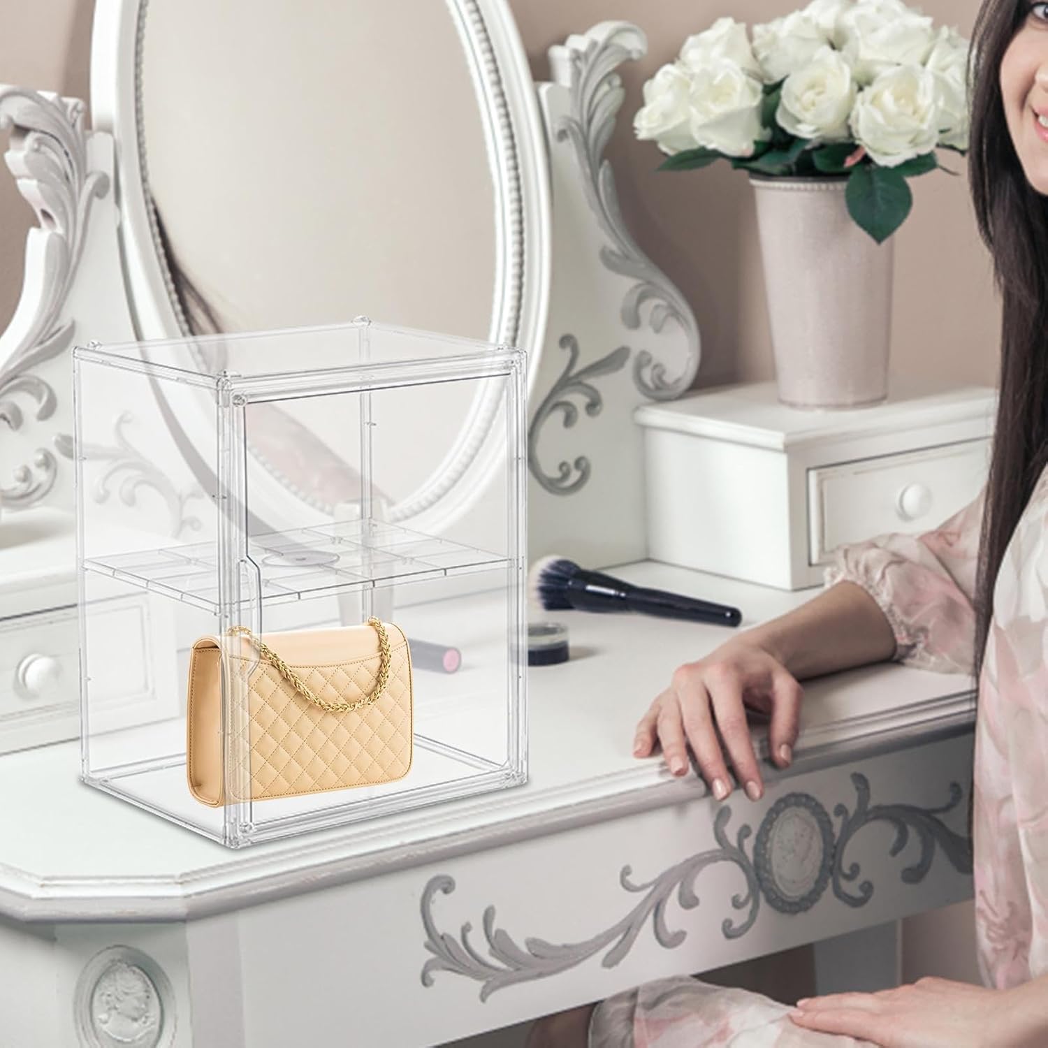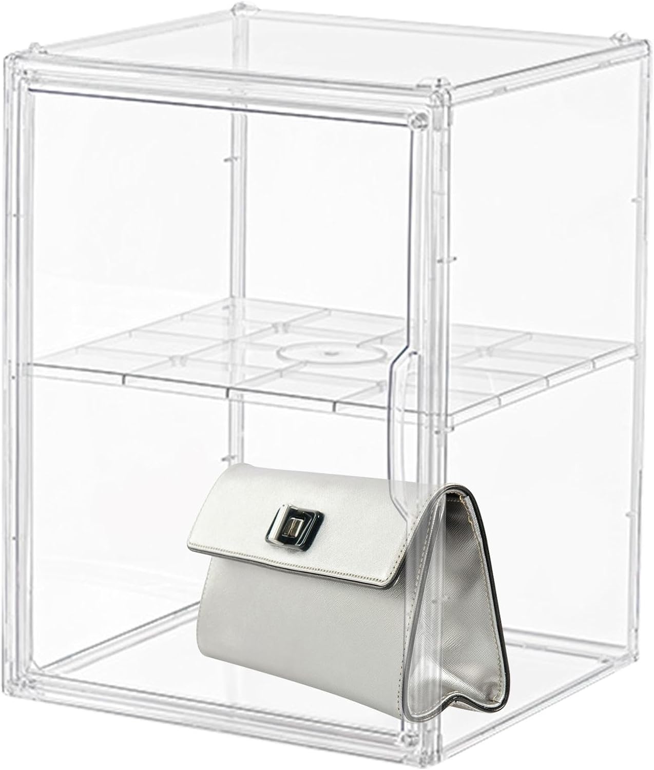Porta magnetica: la scatola portaoggetti trasparente per portafogli ha un pratico design magnetico della porta che ti consente di fare i lavori di conservazione della borsa con una mano ed è facile da trasportare. Risparmio di spazio: l'organizer trasparente per borse non occupa molto spazio, può essere impilato verticalmente per ottenere un posizionamento ragionevole senza sprecare spazio interno. Visualizza collezioni: i contenitori trasparenti per portafogli possono mostrare chiaramente i tuoi beni di lusso e le tue collezioni in modo che le tue cose preziose non vengano più conservate in luoghi invisibili. Facile da riporre: il montaggio della vetrina trasparente per portafogli è molto semplice, non sono necessari attrezzi, facile da riporre, è un funzionamento con una sola mano e ogni vetrina può essere installata in pochi minuti. Ampia applicazione: la vetrina per borse può essere utilizzata singolarmente o insieme per creare uno spazio di archiviazione impilabile adatto a te e presentare scarpe, giocattoli, libri, opere d'arte, palloni da calcio, macchine fotografiche e altro ancora.