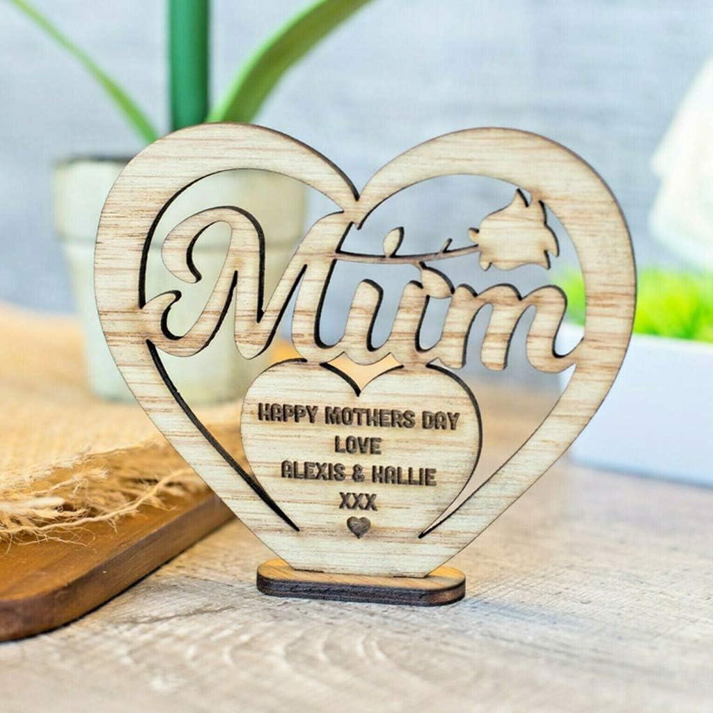 legno pregiato ed è stato lucidato con un processo di lucidatura. I bordi sono lisci e non hanno odore particolare, quindi non c'è bisogno di preoccuparsi che i bambini a casa si tagliino le mani Questo mestiere è un ornamento in legno cavo, con una base sotto, che può renderlo stabile sulla scrivania o utilizzare una bella corda per passare attraverso di esso per trasformarlo in un ornamento da appendere per la mamma. Le migliori squisite decorazioni in legno per la festa della mamma, feste di compleanno, feste di vacanza Design elegante a forma di cuore. Una cornice a forma di cuore, rose e lettere MUM incarna perfettamente il tema della festa della mamma. il colore rende questa decorazione più naturale e calda Questo mestiere è un ornamento a forma di lettera in legno cavo, con una base sottostante, che può renderlo stabile sulla scrivania, o modificarlo, e utilizzare una bella corda per passarlo attraverso per trasformarlo in un appeso o