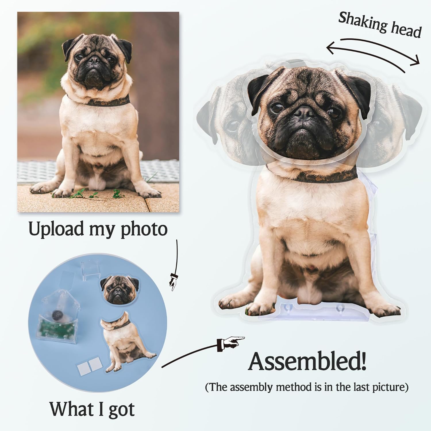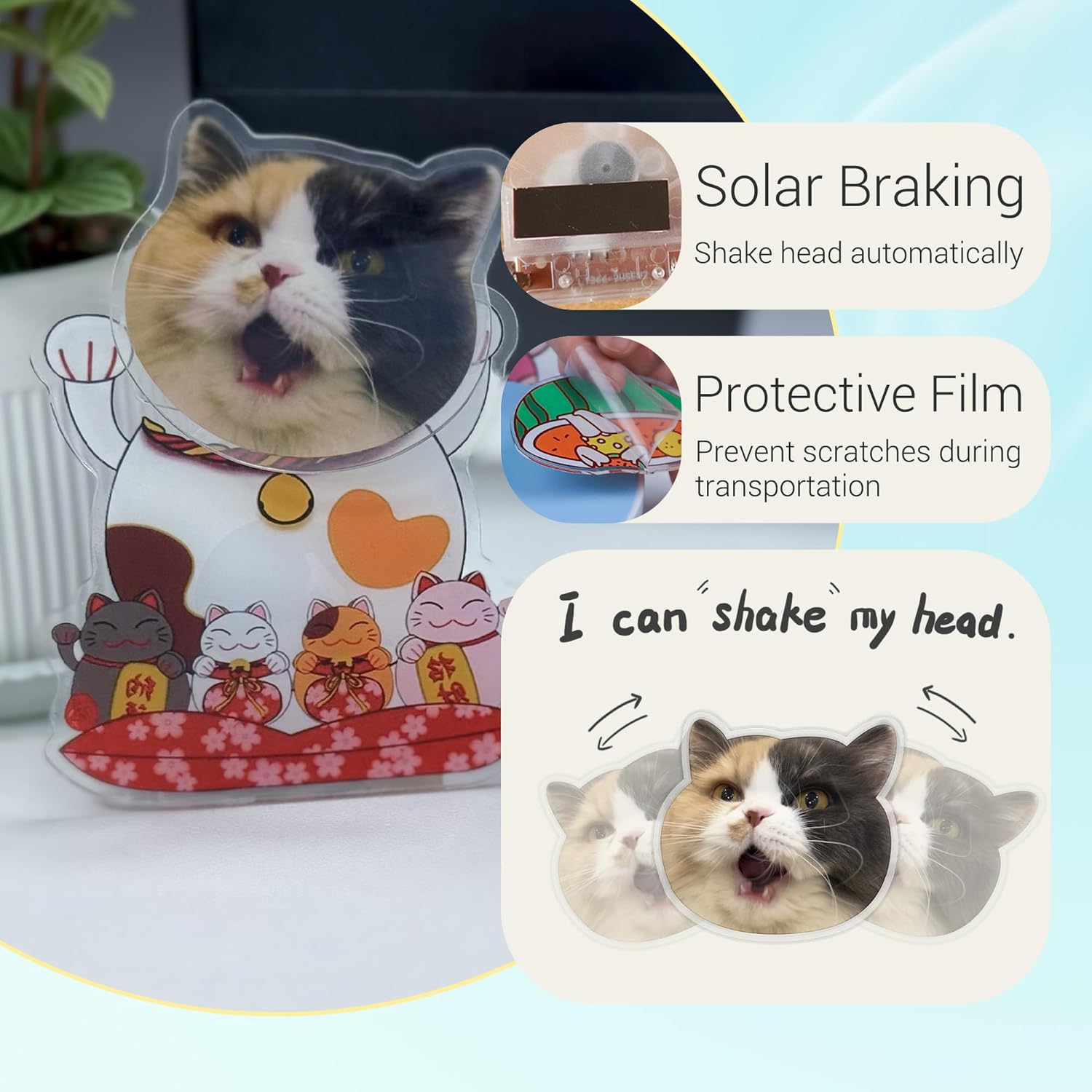 🐶Design creativo personalizzato: puoi scegliere foto di gatti, cani e animali per la personalizzazione. Tutto quello che devi fare è caricare una foto frontale dell'animale con la testa scoperta e otterrai una simpatica decorazione che fa tremare la testa. 🐱Scuotimento automatico della testa: disponibili modelli solari e a batteria. Il simpatico ornamento che scuote la testa cominciò a scuotere lentamente la testa al sole come se avesse vita. Questa divertente dinamica può calmare completamente il tuo corpo e la tua mente. 🐾Decorazioni carine: le decorazioni bobblehead sono splendidamente progettate e combinano arte e creatività, sia che ti piacciano gli stili carini, divertenti o di altro tipo. Adatto per il posizionamento in qualsiasi stanza, ad es. B. nello studio, nella camera da letto, nell'ufficio o in macchina, rendendolo il punto forte della decorazione della tua casa e aggiungendo gioia e interesse alla vita. 🐾Tecnologia professionale: realizzata in materiale acrilico, stampa UV ad alta definizione, la superficie di taglio dalla forma speciale è liscia. Lo spessore della lastra acrilica è di circa 2 mm e non è facile da rompere. La decorazione della testa tremante ha una struttura semplice, è facile da trasportare e posizionare e può mostrare la tua personalità sempre e ovunque. 🐾Regalo speciale: non importa a chi vuoi regalare la decorazione bobblehead, che si tratti di un compleanno o di una vacanza, questa è un'ottima idea regalo. Questo non è solo un interessante ornamento decorativo, ma porta anche buon umore alla tua famiglia.