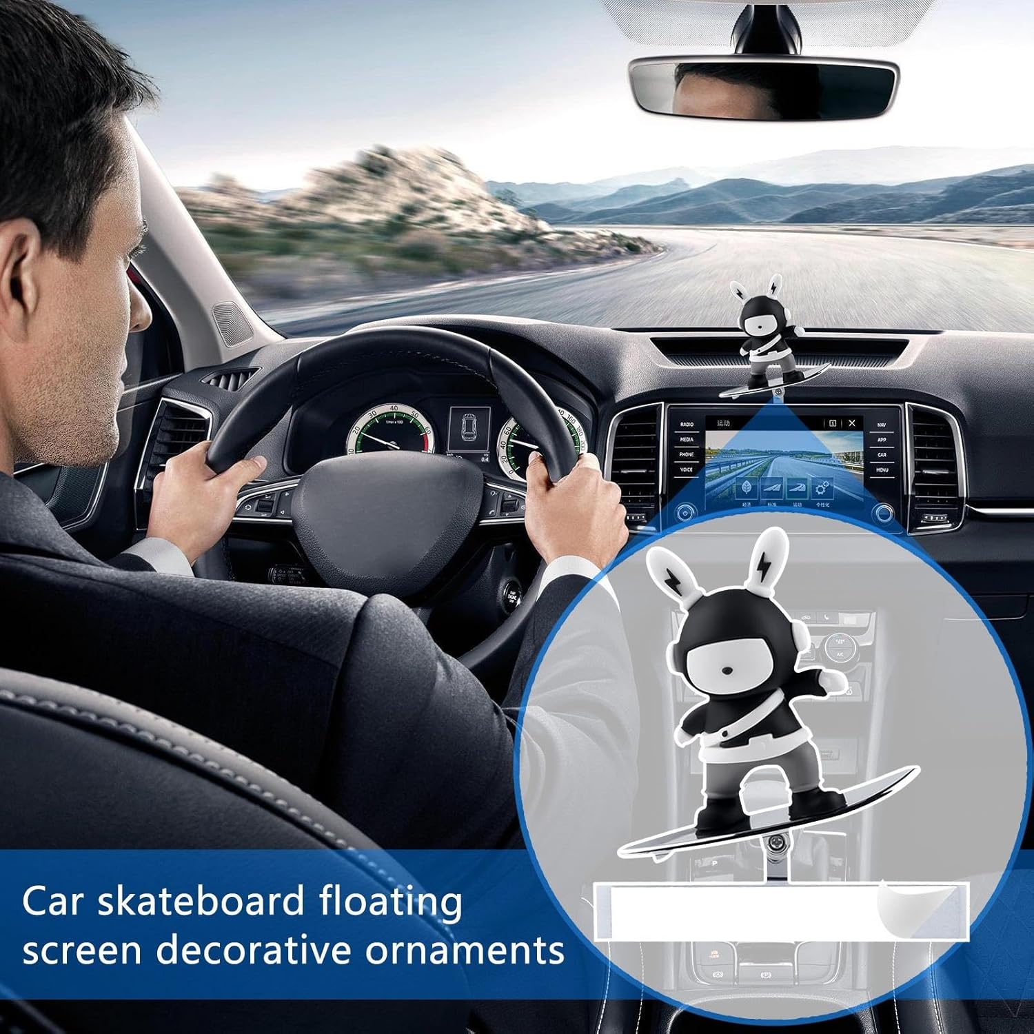 Afferra l'attenzione: aggiungi vitalità alla tua auto con questo ornamento a forma di coniglio che attira l'attenzione. La sua immagine creativa e fresca darà alla tua auto un look rinfrescante che non passerà mai inosservato! Antiaffaticamento visivo: inclinare e far scorrere l'ornamento per auto da skateboard sul cruscotto per un movimento fluido e silenzioso, riducendo l'affaticamento visivo durante lunghi viaggi. Migliora la tua guida: trasforma ogni viaggio in un'avventura piena di divertimento con i nostri ornamenti per auto da skateboard, iniettando energia ed eccitazione nei tuoi spostamenti, rendendo la guida un piacere e migliorando l'intrattenimento in auto. Trasforma la tua guida: migliora la tua esperienza di guida con i nostri stravaganti ornamenti per auto da skateboard. Dai alla tua auto un tocco di moda unico abbinando il suo aspetto a un paesaggio meraviglioso, facendoti compagnia nei viaggi da soli. ♫ Materiale di prima qualità: la perfetta miscela di silicone e lega di alluminio rende questo ornamento per auto da skateboard l'epitome di stile e qualità. Goditi resistenza alle alte temperature, non scolorisce, nessun odore e nessuna deformazione per un look elegante e duraturo.