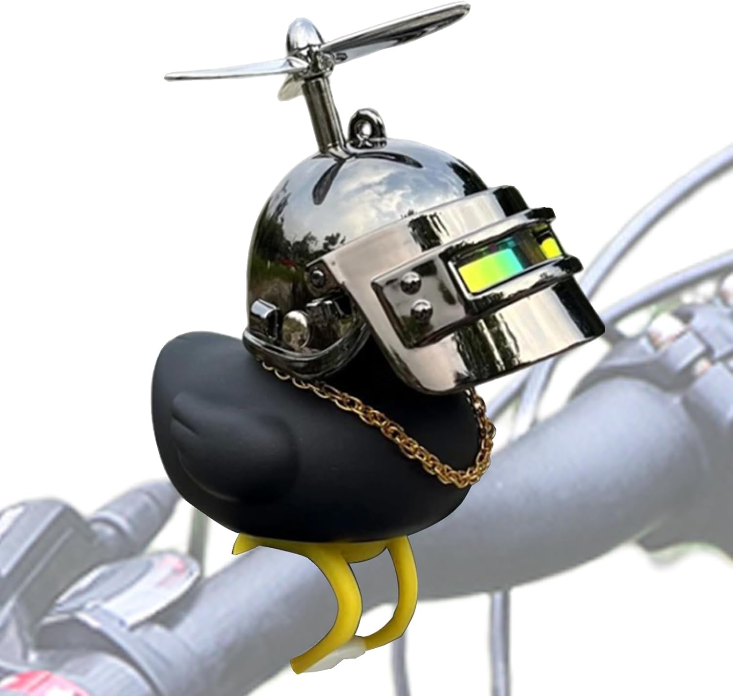 Eccezionale potenziatore di corsa: ravviva la tua moto con la nostra simpatica anatra da manubrio, completa di elica per cappello e suoni di clacson esilaranti quando viene premuto. Questa decorazione divertente e stravagante renderà sicuramente la tua corsa piacevole e divertente. Anatra antistress: migliora la tua corsa con l'anatra sul manubrio della moto, premi per ascoltare i suoi divertenti ciarlatani, rendendo i tuoi viaggi più divertenti e senza stress. Silicone sicuro: sperimenta un tocco super piacevole con la nostra anatra flessibile e robusta per manubrio; realizzata in silicone sicuro, è morbida, liscia e innocua per la pelle. Montaggio senza problemi: migliora lo stile della tua moto con questa attraente anatra per manubrio. Si attacca facilmente al manubrio con nastro biadesivo incluso, senza richiedere strumenti complessi o assistenza. Multi scena: Dai vita alla tua moto con la nostra affascinante anatra da manubrio perfetta per qualsiasi scappatella. Portalo con te all'aperto quando viaggi, campeggio o escursioni. Oltre alle moto, puoi attaccarlo a cruscotti dell'auto, biciclette, tavoli o culle, aggiungendo un tocco adorabile a qualsiasi configurazione.