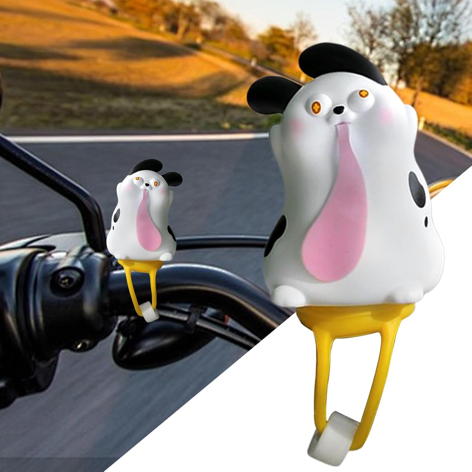 Divertente accessorio per pendolarismo: aggiungi divertimento vivace alle tue passeggiate con simpatici ornamenti a forma di animale per manubrio della bicicletta, realizzati per alleviare la noia dei viaggi ed elevare il piacere di spostarsi o esplorare all'aperto attraverso dettagli giocosi e attraenti Fissaggio ornamentale per risparmiare tempo: fornisce un modo senza soluzione di continuità per migliorare rapidamente l'aspetto della tua moto, attraverso l'installazione senza attrezzi, adattabile alle dimensioni del manico compatibili e fissato in soli tre semplici passaggi Stile che attira l'attenzione: un design colorato combinato con il movimento del flusso d'aria migliora la presenza su strada, incoraggiando il coinvolgimento sociale e mostrando il tuo approccio creativo alla personalizzazione della tua esperienza in bicicletta Creatore di momenti di sorpresa: con il suo design calmante ed elegante, questo ornamento per manubrio della bici è una scelta eccellente per regalare in ogni occasione, aggiungendo un tocco personale ed evocando momenti memorabili di felicità Tocco estetico distintivo: design unico con animali con varie pose portano un'estetica raffinata al manubrio della bicicletta, utilizzando un approccio creativo di decostruzione per servire come accessorio decorativo ideale per i ciclisti