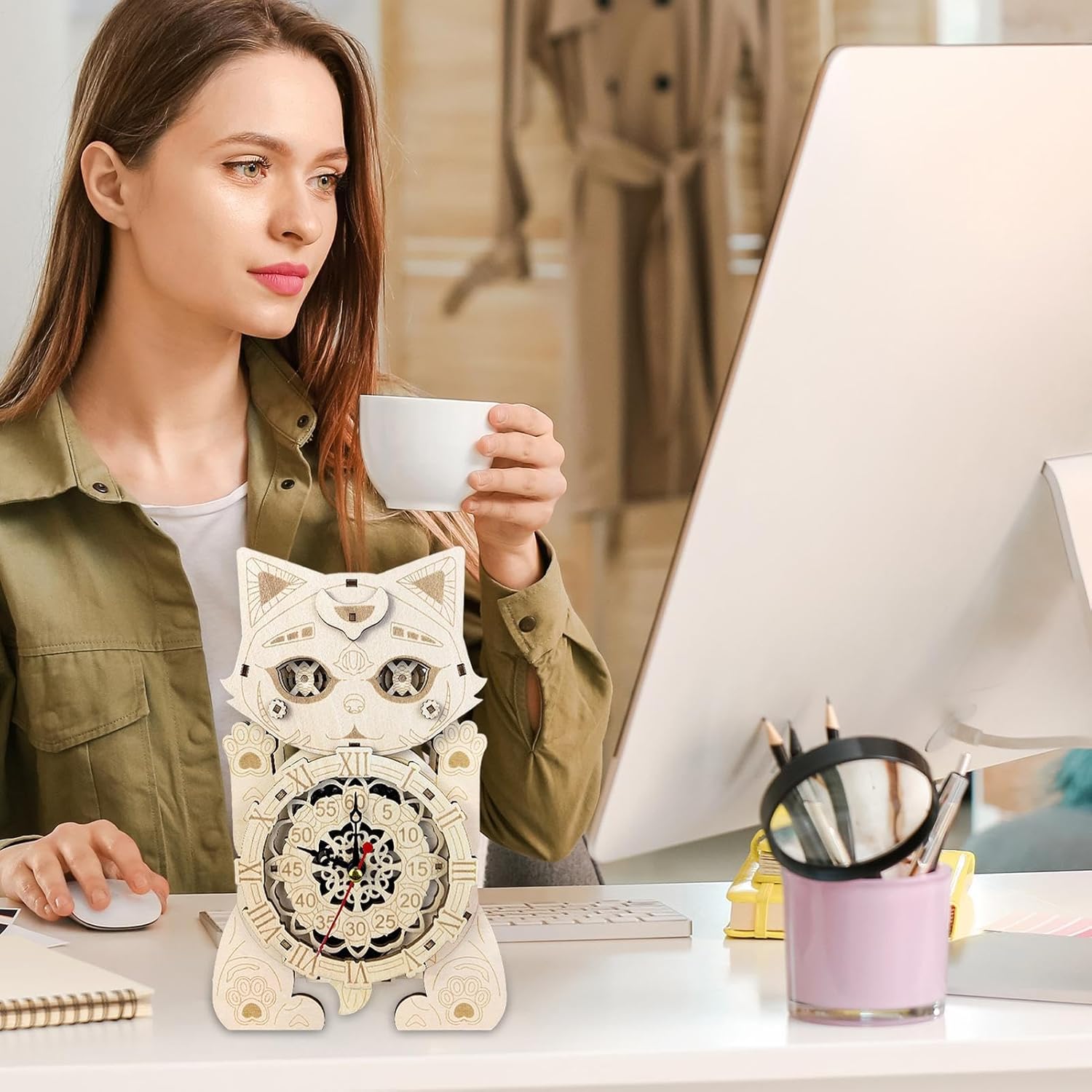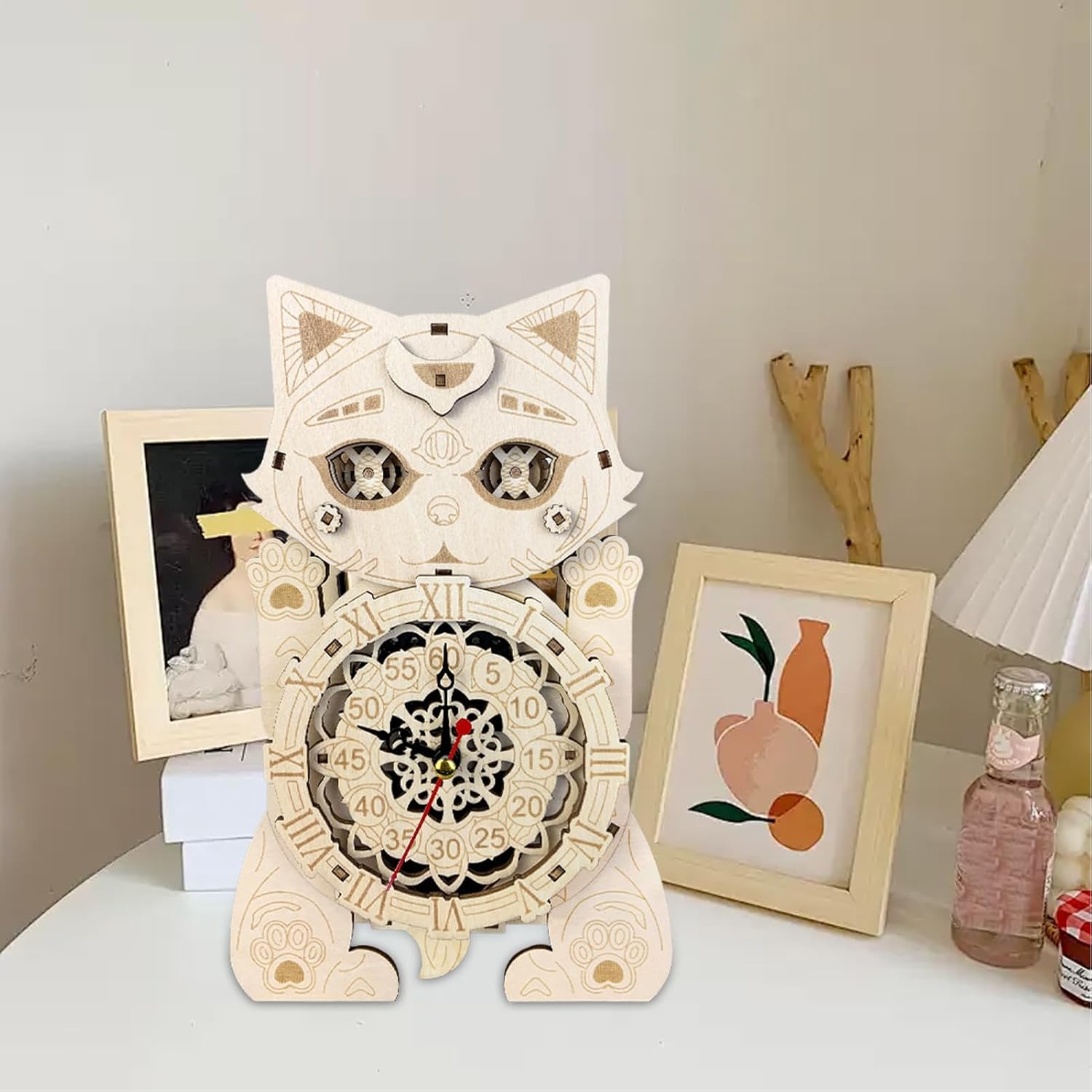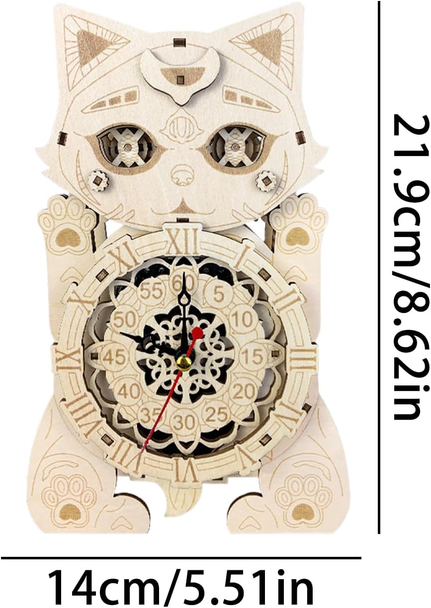 Forte e stretto quando raccolto: apprezza l'arte ancestrale donandola ai popoli amati come un simbolico orologio per gatti puzzle 3D. Metti insieme ogni pezzo saldamente per creare un'aggiunta distinta e di grande impatto al tuo arredamento. Goditi il tuo tempo libero: goditi la sensazione di realizzazione e orgoglio per le tue capacità dopo aver completato il modello di orologio con orologio a forma di gatto 3D. Migliora le tue abilità artigianali e crea un bellissimo ornamento che ti farà sentire soddisfatto e realizzato. Dai valore al tuo tempo dedicato alla creazione con questo progetto impegnativo e gratificante. Fantasioso e creativo: dona un po' di fascino alle tue pareti con il nostro modello di orologio con gatto puzzle 3D. Il design unico del gatto aggiunge un elemento divertente a qualsiasi stanza, rendendolo un pezzo creativo e accattivante. Costruzione stabile: questo orologio puzzle 3D per gatti resistente agli insetti è dotato di materiale in legno sicuro, liscio e robusto per durare e non facilmente deformabile. Ampiamente usato: il modello di orologio puzzle 3D per gatti aggiunge calore a qualsiasi stanza. Il suo design stravagante si abbina perfettamente ad ambienti, soggiorni, bar e persino librerie. Un must per chi vuole migliorare se stesso e il proprio ambiente