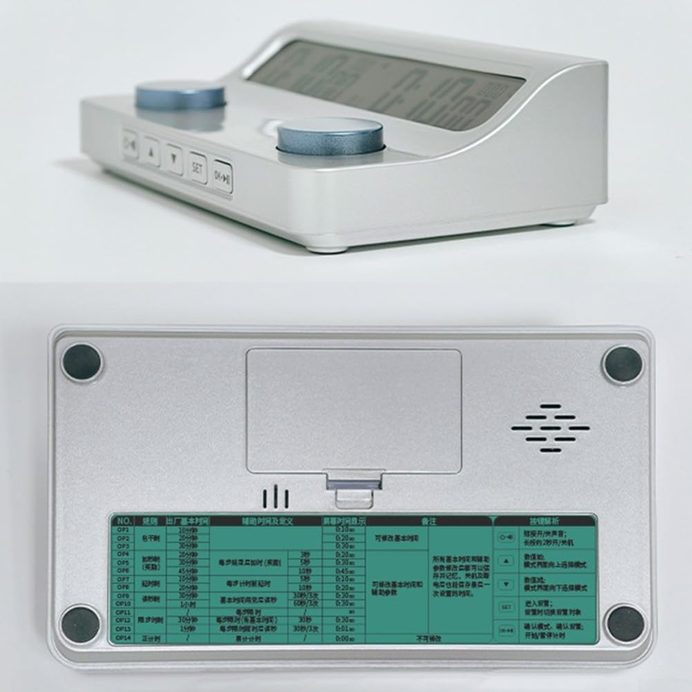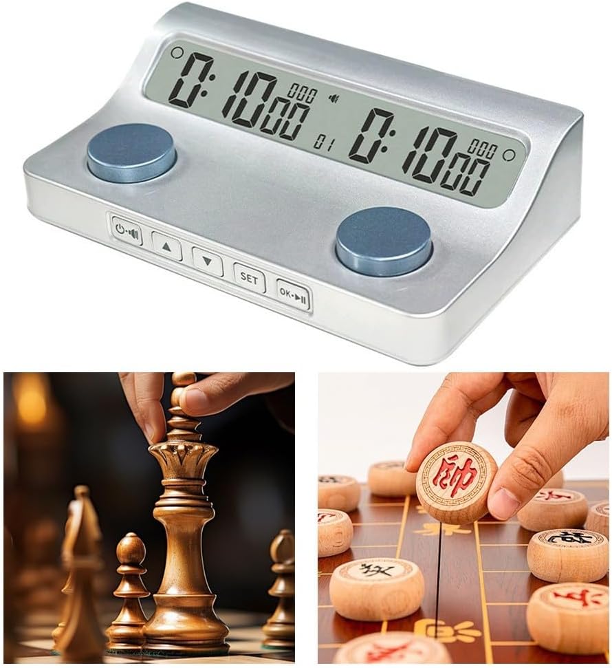 [Compatibile con giochi di scacchi] Progettato per scacchi, Go e altri giochi da tavolo, questo orologio garantisce un gameplay fluido con le sue precise caratteristiche di temporizzazione. [Prompt audio facile da usare] Il prompt audio "drop" notifica ai giocatori il conto alla rovescia, migliorando l'esperienza di gioco. [IMPOSTAZIONI DI TEMPO ESTENSIVO] Con un tempo massimo di 959 minuti e 59 secondi per ogni giocatore, puoi adattare la durata del gioco alle tue preferenze. [FUNZIONI REGOLABILI] Le caratteristiche includono limite di tempo per passo, tempi, conteggio dei passi, opzioni di disattivazione dell'audio e una funzione di spegnimento automatico per comodità. Design elegante: compatto a circa 17 x 10 cm e rifinito in nero, questo orologio è elegante e funzionale per qualsiasi ambiente di gioco.