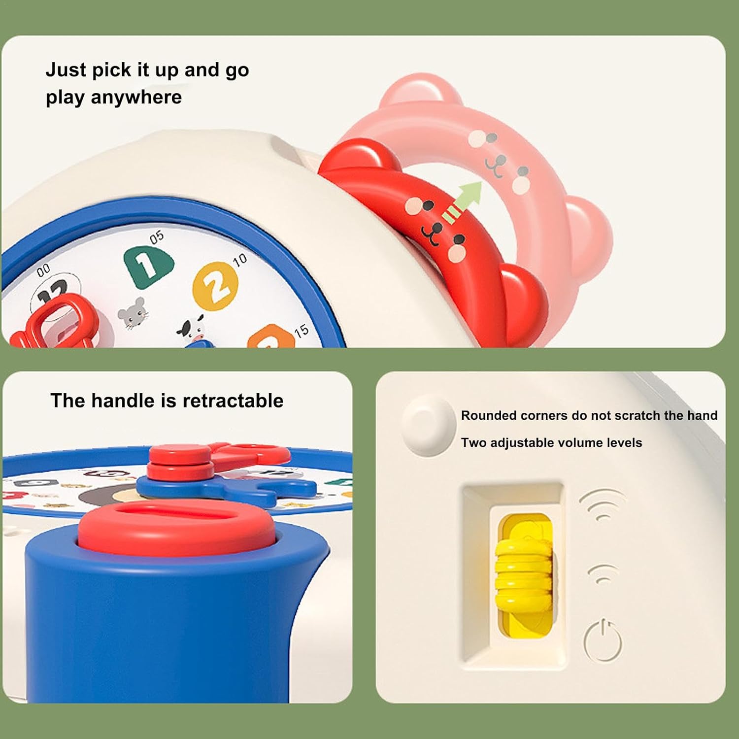 Padronanza precoce: nutrire l'apprendimento e lo sviluppo cognitivo del vostro bambino con il nostro orologio di apprendimento. Impara a leggere l'orologio facilmente e sviluppa abilità di gestione del tempo che li aiuteranno nella loro routine quotidiana. Divertimento multilingue: passa senza problemi tra le modalità cinese e inglese per migliorare le tue abilità linguistiche attraverso un apprendimento allegro e basato sul gioco, promuovendo la comunicazione bilingue senza sforzo. Attraente e interattivo: dotato di un feedback acustico e di una tecnologia di rilevamento tattile, questo orologio migliora l'interattività e aumenta l'entusiasmo di apprendimento di. Adoreranno interagire con questo orologio e approfondire le loro conoscenze. Sicurezza assicurata: garantire la sicurezza durante l'utilizzo di materiali ecologici e innocui. L'orologio di apprendimento è progettato con una finitura liscia e arrotondata, creando un ambiente di apprendimento sicuro e coinvolgente. Regalo illuminante: nutrire le giovani menti con questo orologio di apprendimento, creando un'esperienza emozionante ed educativa per loro. Ispirate la loro immaginazione e fate un regalo premuroso per eventi importanti come il giorno dei , i compleanni e i festival.