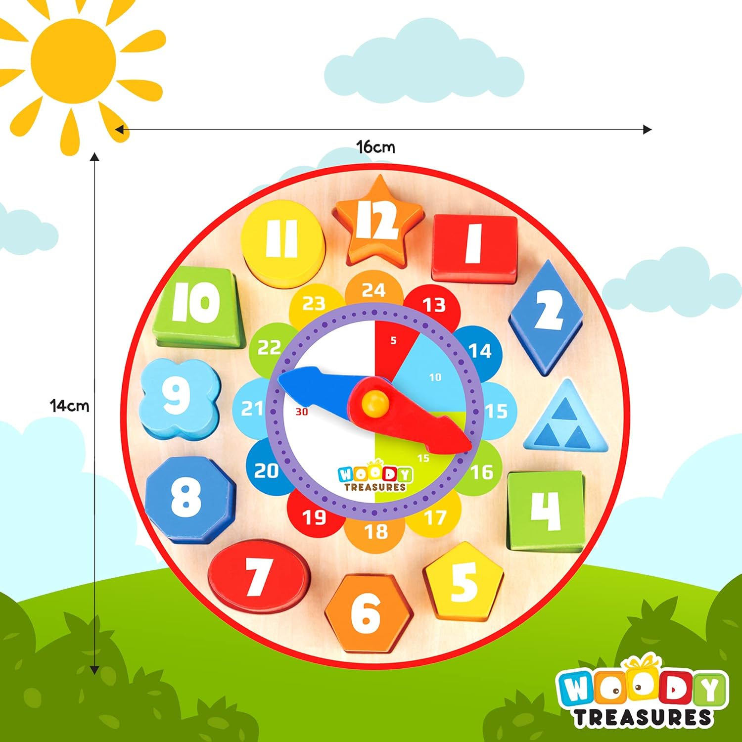 ✔ Scelta perfetta per i più piccoli: se stai cercando un nuovo giocattolo che catturi l'attenzione di tuo figlio o desideri assicurarti che lo sviluppo cognitivo di tuo figlio inizi il più rapidamente possibile, l'orologio didattico in legno Woody Treasures è esattamente ciò di cui hai bisogno ✔ Design sicuro e durevole: questo giocattolo di smistamento è realizzato in legno naturale di alta qualità e altamente resistente da artigiani professionisti che prestano molta attenzione ai dettagli. Il materiale resiste alla manipolazione energica dei bambini ed è allo stesso tempo privo di schegge e atossico! ✔ Educativo e divertente: saper leggere l'ora è un'abilità essenziale che può essere rivisitata in modo divertente e interattivo. Questo giocattolo in legno per ragazze e ragazzi di 2 anni assicurerà che il tuo bambino si diverta mentre impara a leggere e interpretare correttamente la lezione ✔ Sviluppo delle abilità: questo giocattolo educativo per bambini sviluppa naturalmente la coordinazione occhio-mano, la destrezza e le capacità motorie mentre tiene occupati i più piccoli con colori vivaci e forme diverse ✔ Bellissimo regalo per ogni occasione: ordina questo giocattolo in legno per bambini come regalo perfetto per il tuo piccolo, nipote, nipote e puoi essere certo che lo adorerai assolutamente. Che sia Natale, compleanno, onomastico o qualsiasi altra occasione speciale, questo orologio in legno è un must!