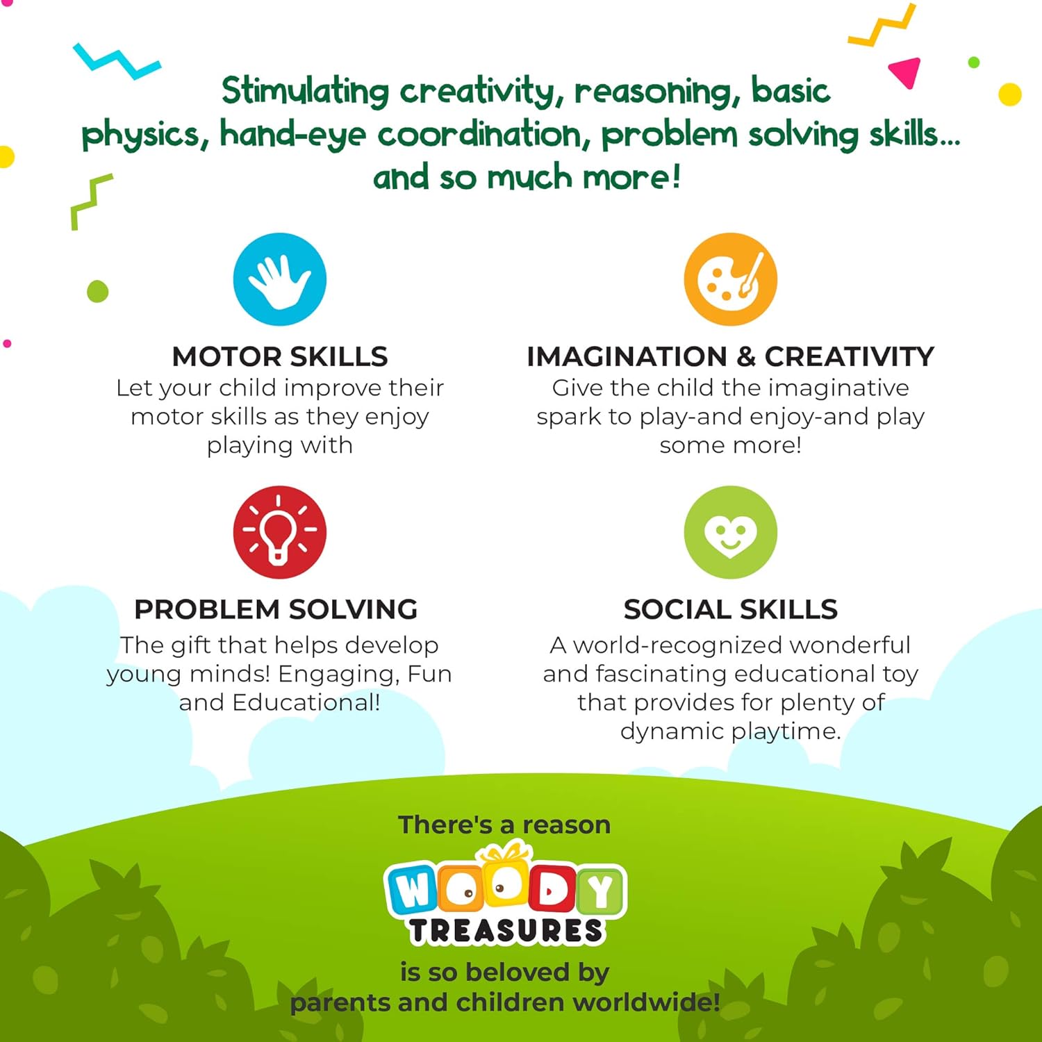 | Lernziel | Farberkennung, Geschicklichkeit, Hand-Auge Koordination, Kreatives Denken, Motorische Fähigkeiten |